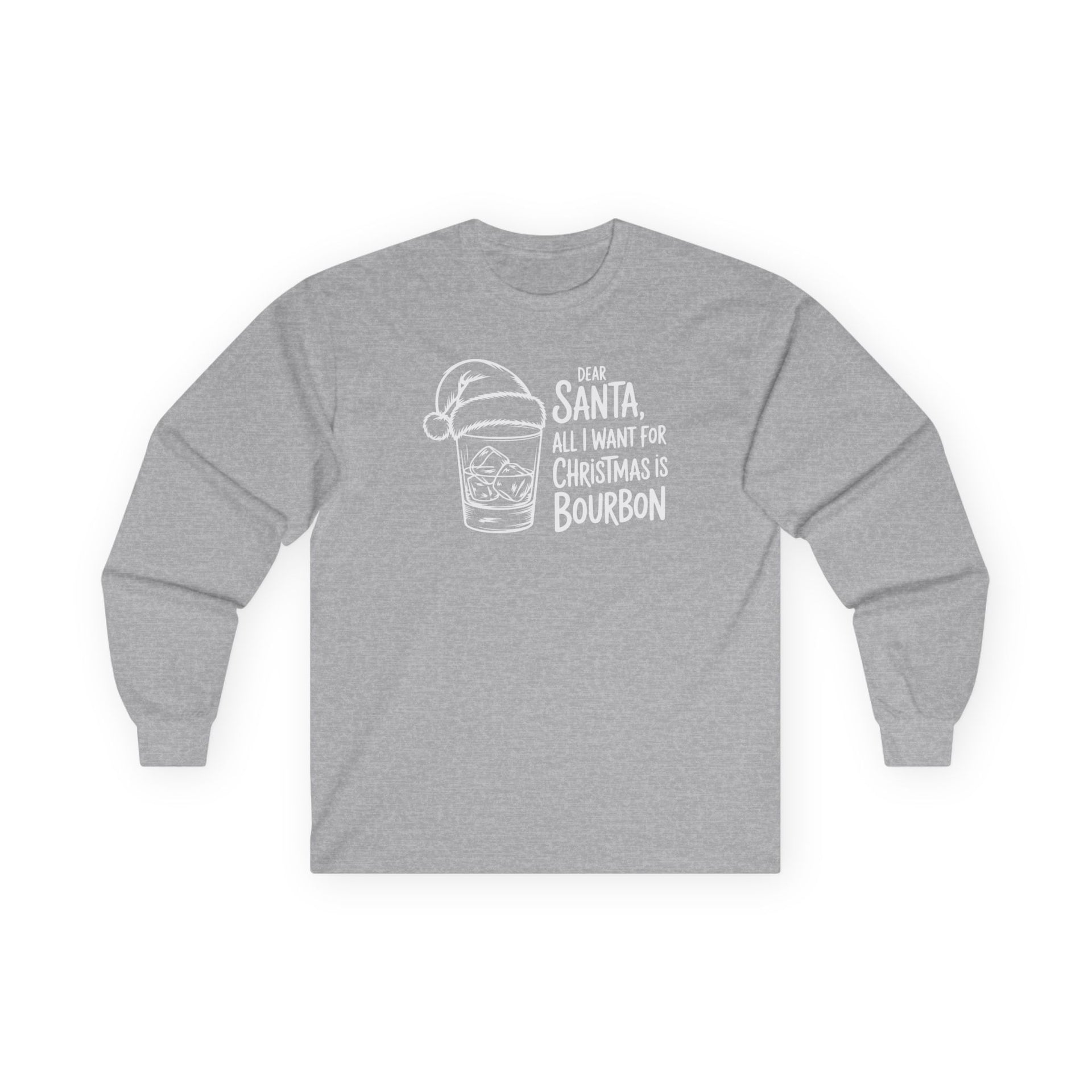 Dear Santa, All I Want for Christmas Is Bourbon – Funny Holiday Long Sleeve Tee