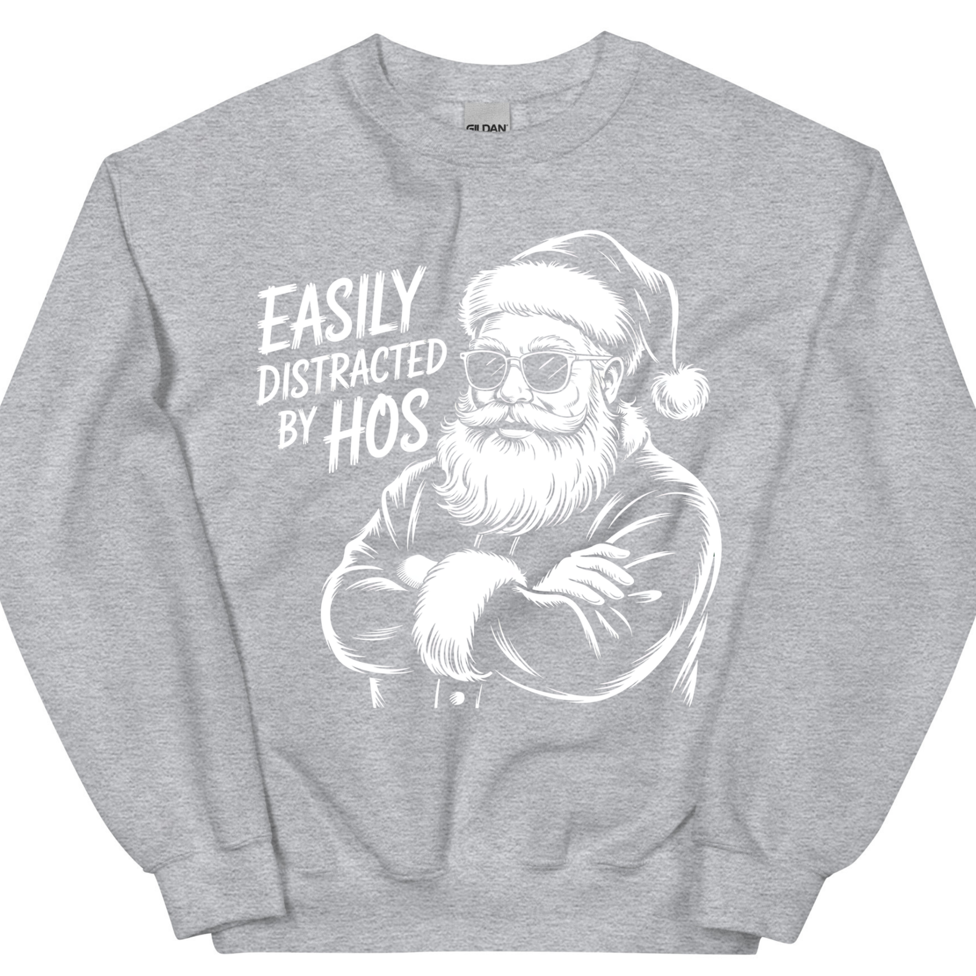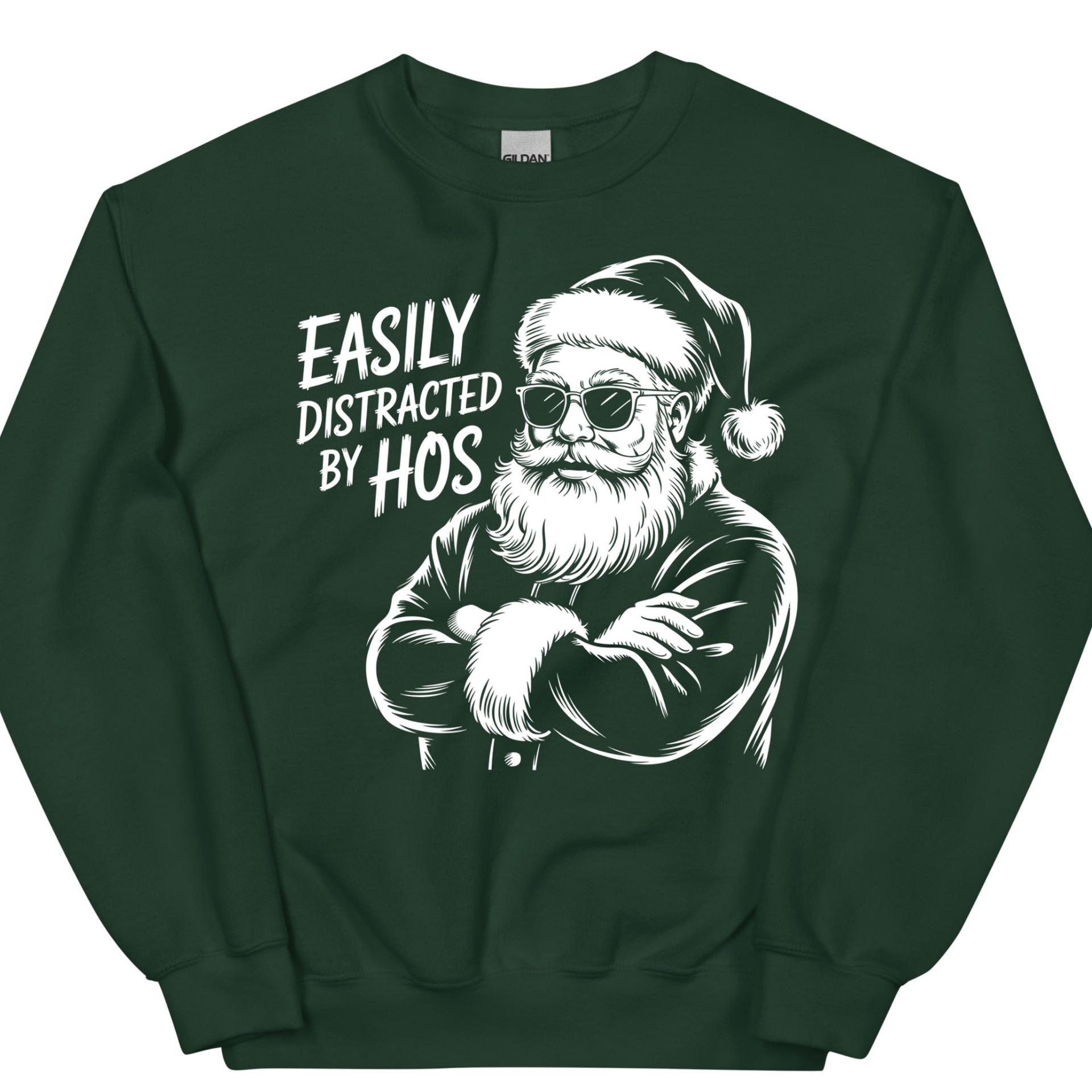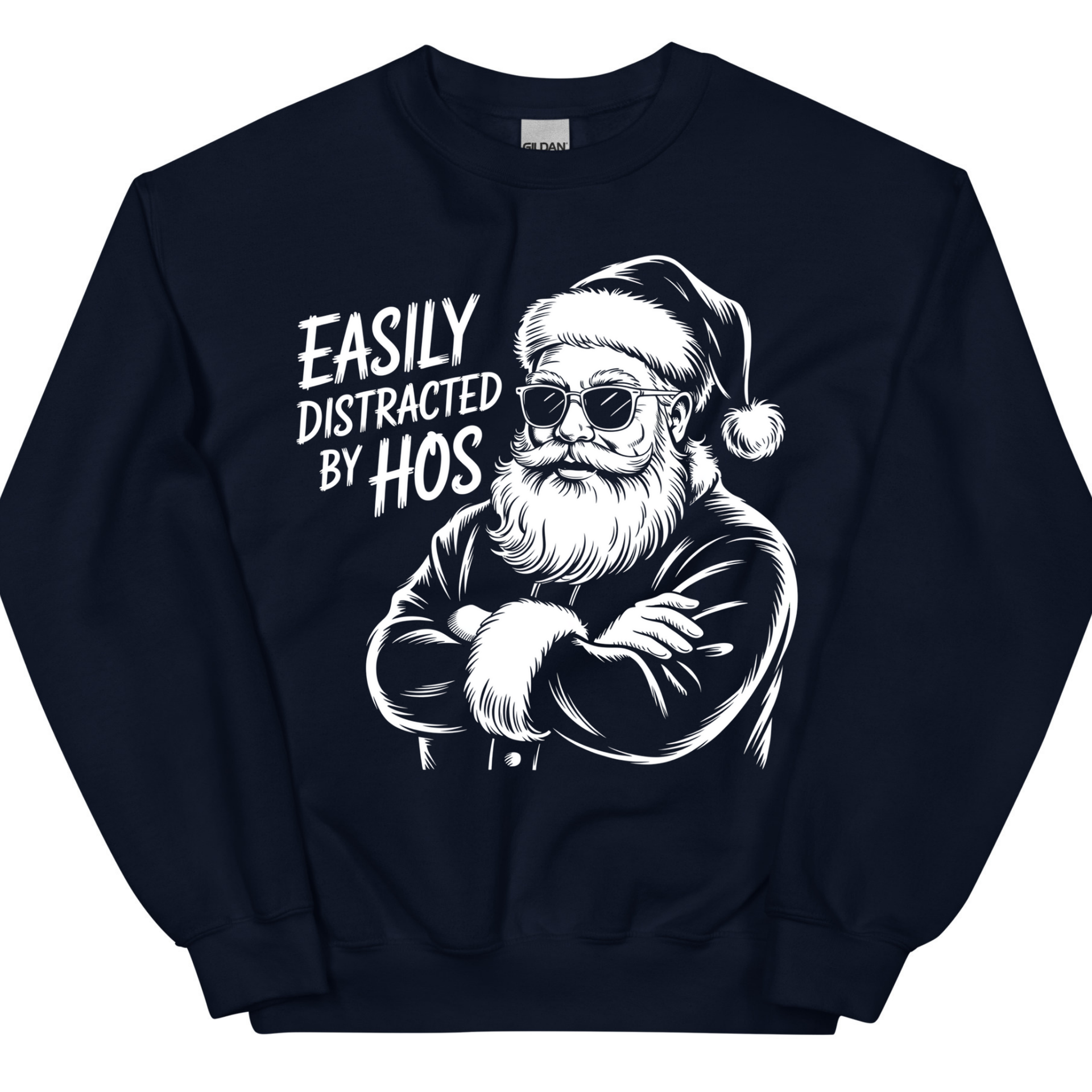 Easily Distracted By Hos – Funny Santa Christmas Sweatshirt