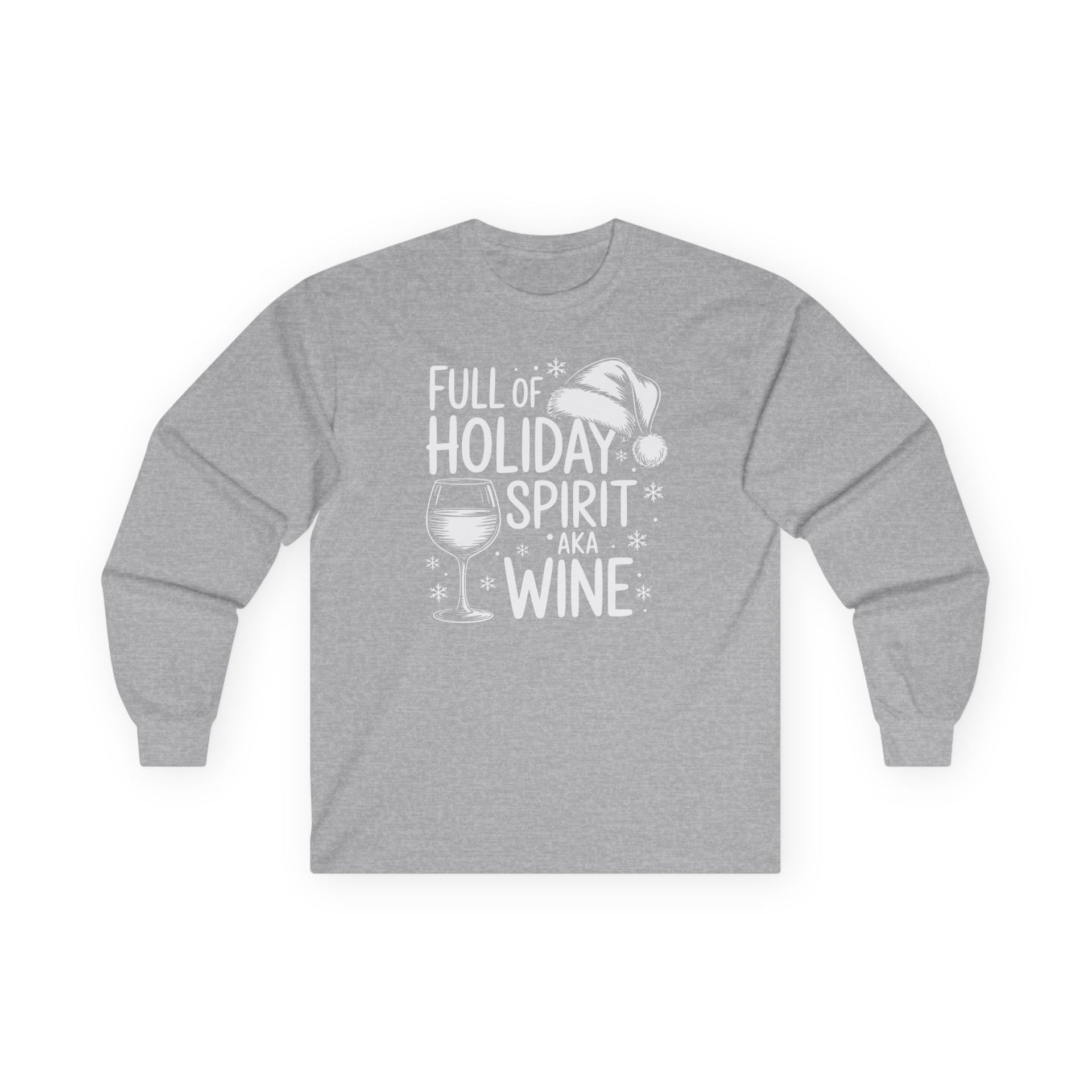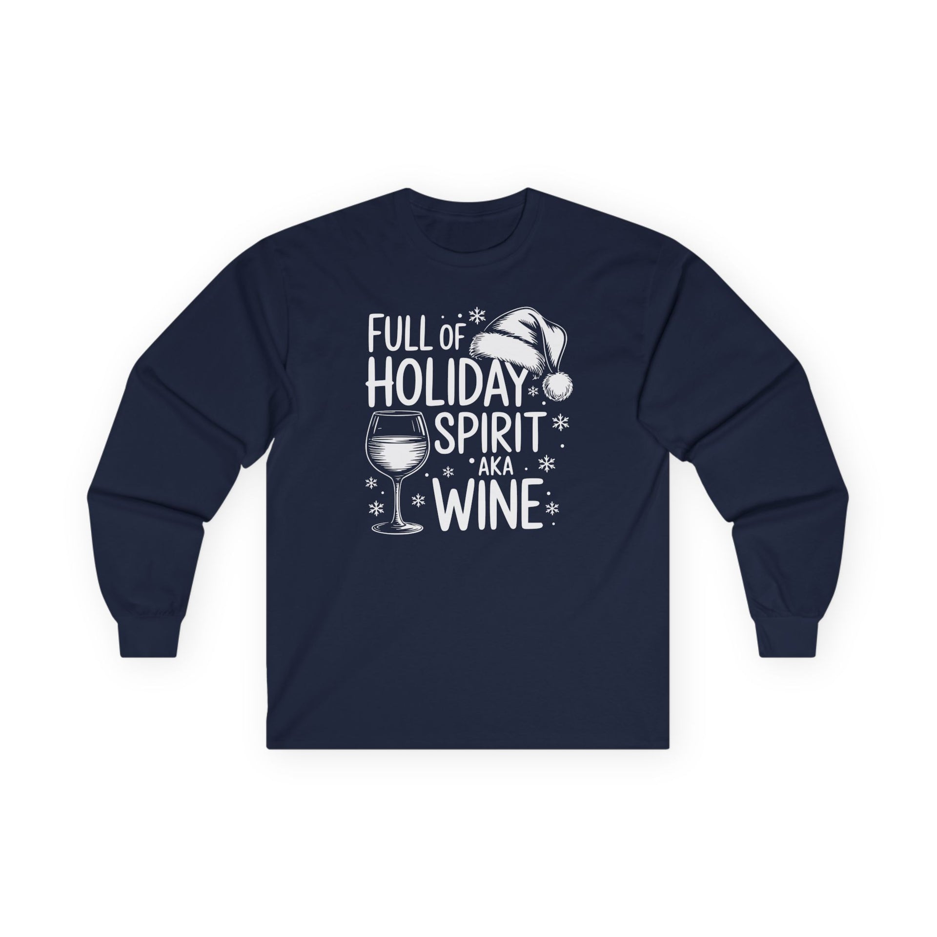 Full of Holiday Spirit AKA Wine – Funny Christmas Wine Lover Long Sleeve Tee