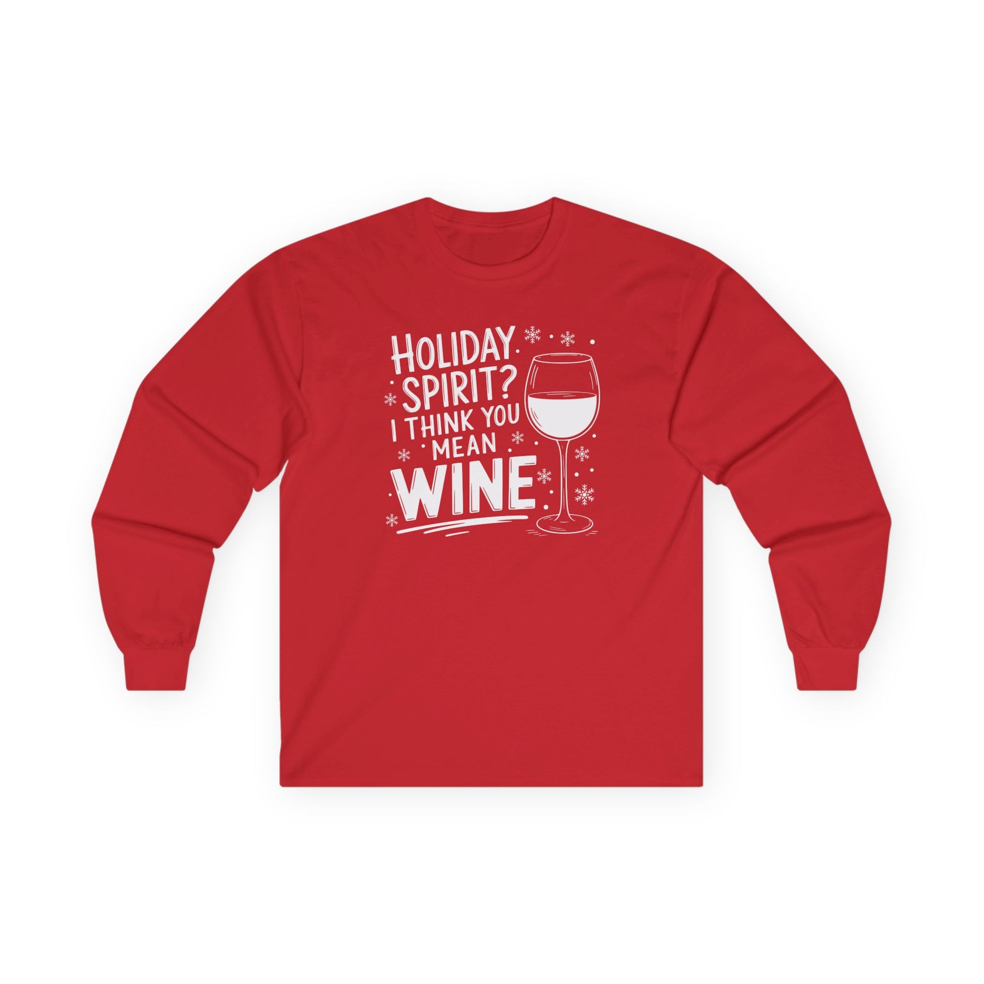 If your idea of “holiday spirit” comes in a glass instead of a sleigh, this “Holiday Spirit? I Think You Mean Wine” long sleeve tee is your new seasonal go-to. Featuring playful festive lettering and a cute wine-themed holiday design, this tee brings humor, personality, and cheerful energy to all your December plans.
