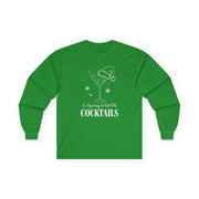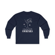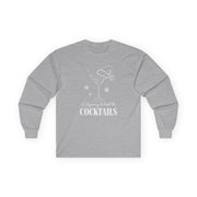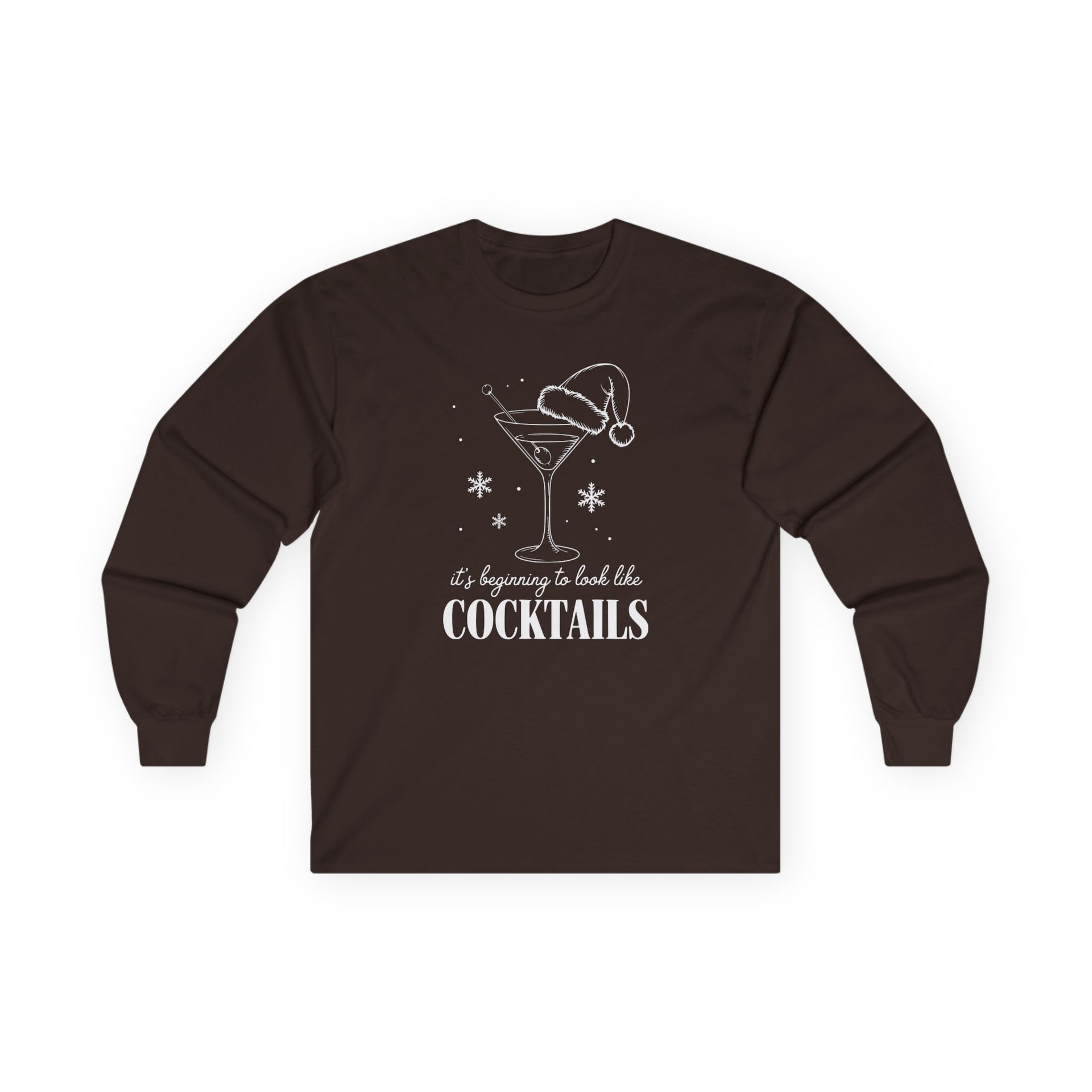 Celebrate the holidays with a splash of humor in this “It’s Beginning to Look a Lot Like Cocktails” long sleeve tee. With its playful festive lettering and cheerful drink-themed design, this shirt is made for anyone whose holiday spirit comes poured, shaken, or stirred.