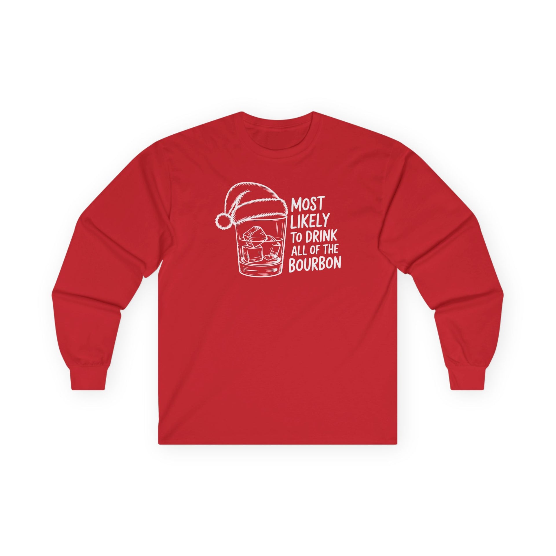 Most Likely to Drink All of the Bourbon – Funny Christmas Long Sleeve Tee