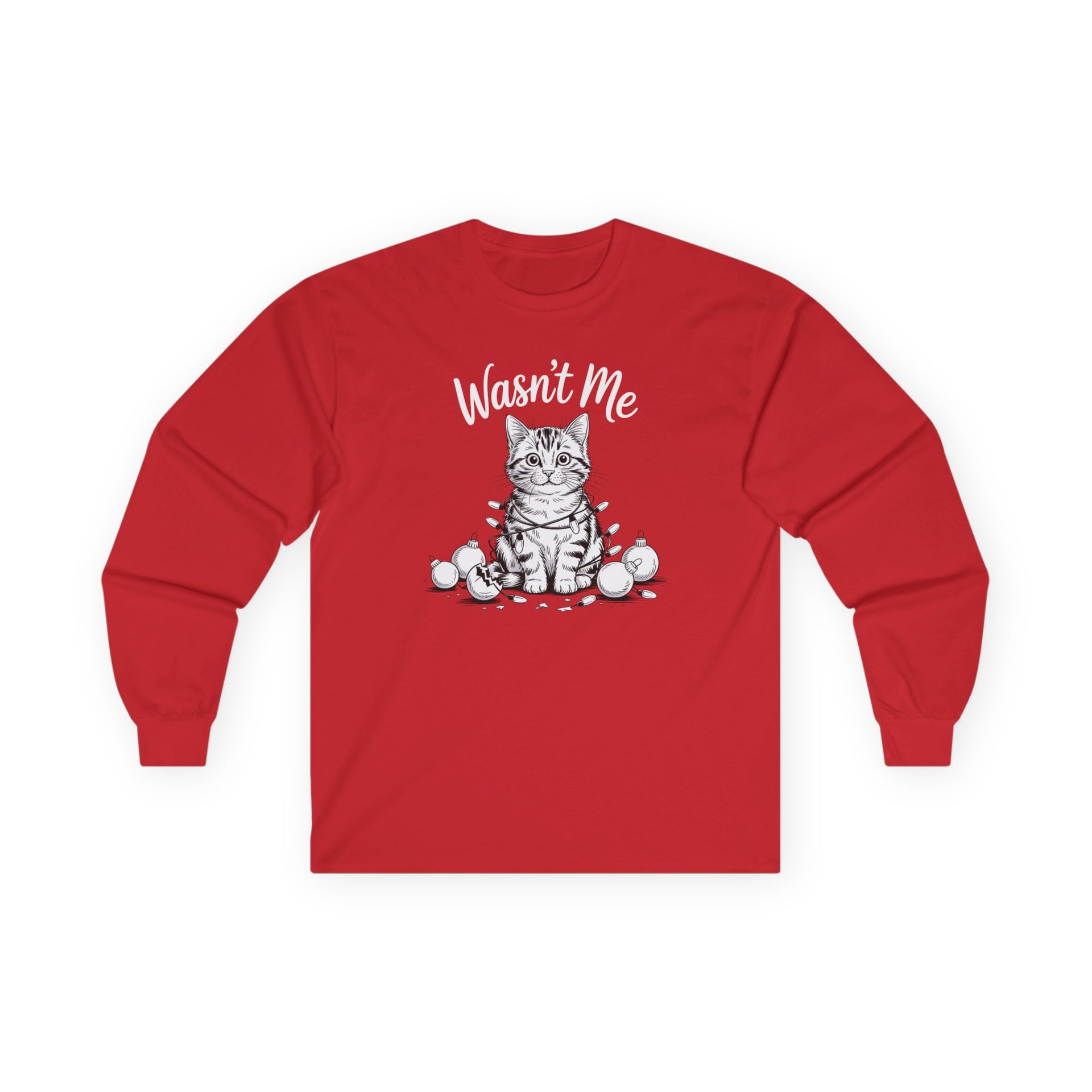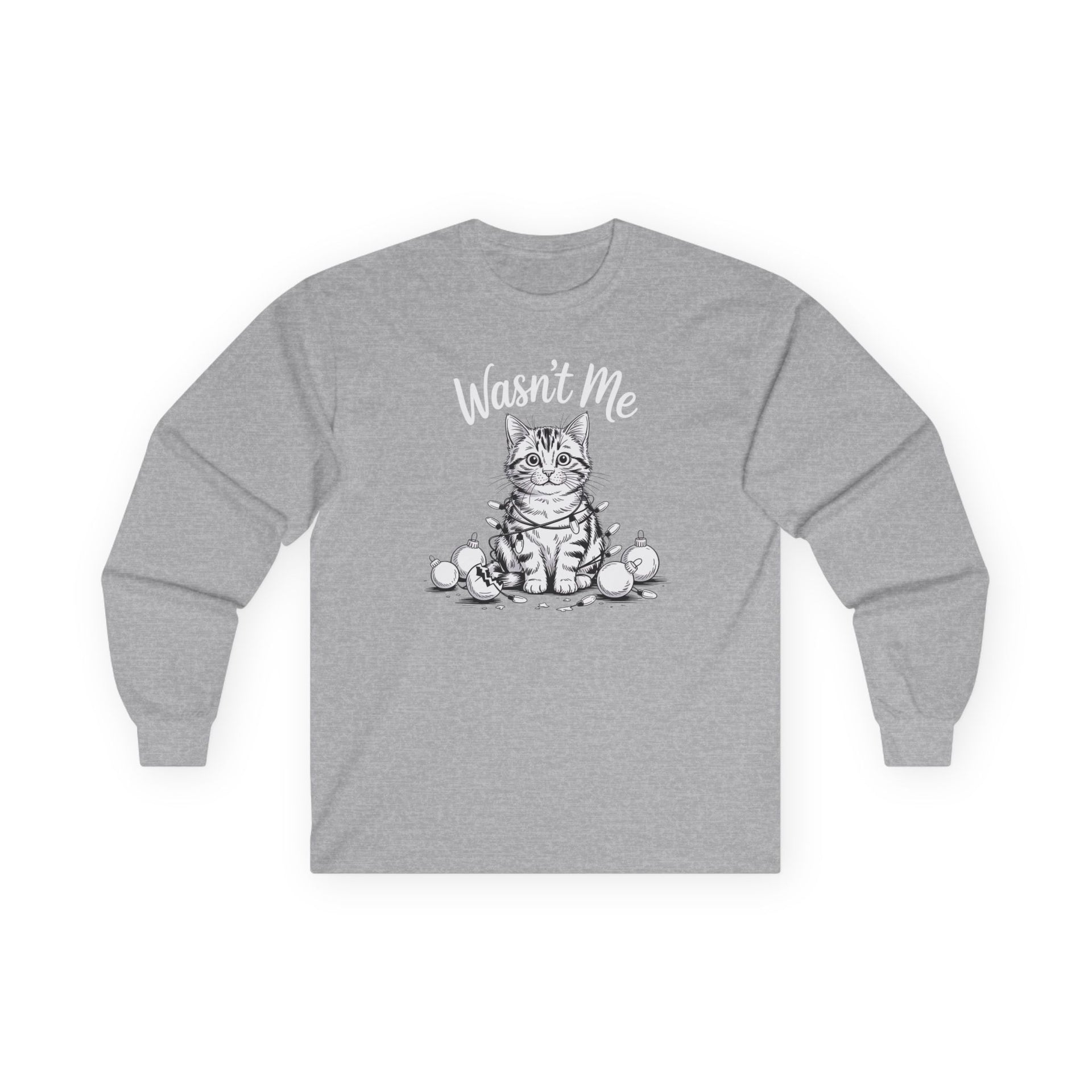 Wasn’t Me – Cute Christmas Cat Long Sleeve Tee