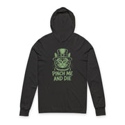 St. Patrick's Day is all fun and games until a stranger decides to pinch you. Channel your inner feline hostility with this hilariously antisocial design. Featuring the internet's favorite angry cat and a crystal-clear "Cease and Desist" warning, this lightweight hooded tee is perfect for anyone who values their personal space over holiday traditions. It is the ultimate armor for the introvert at the pub.