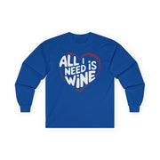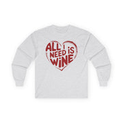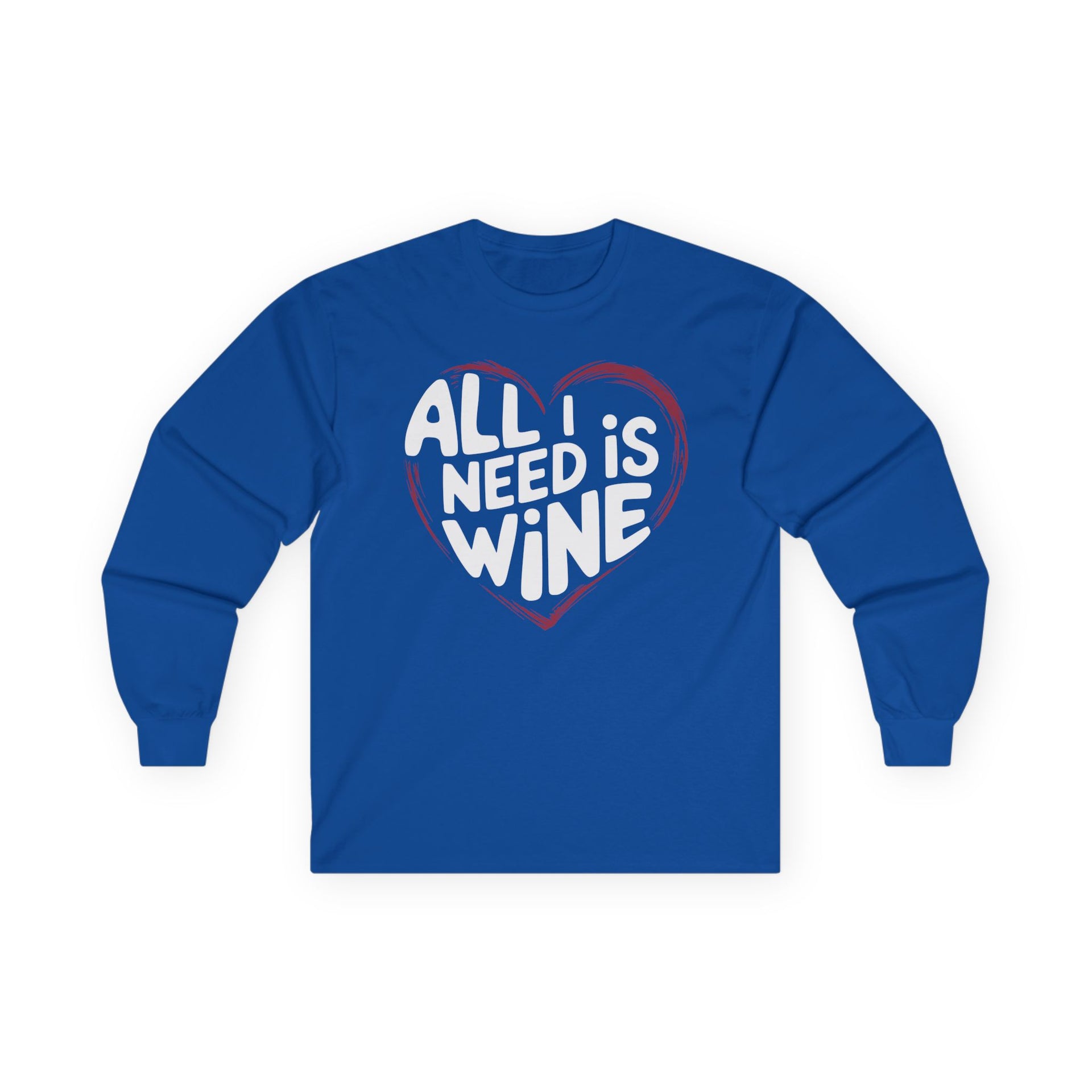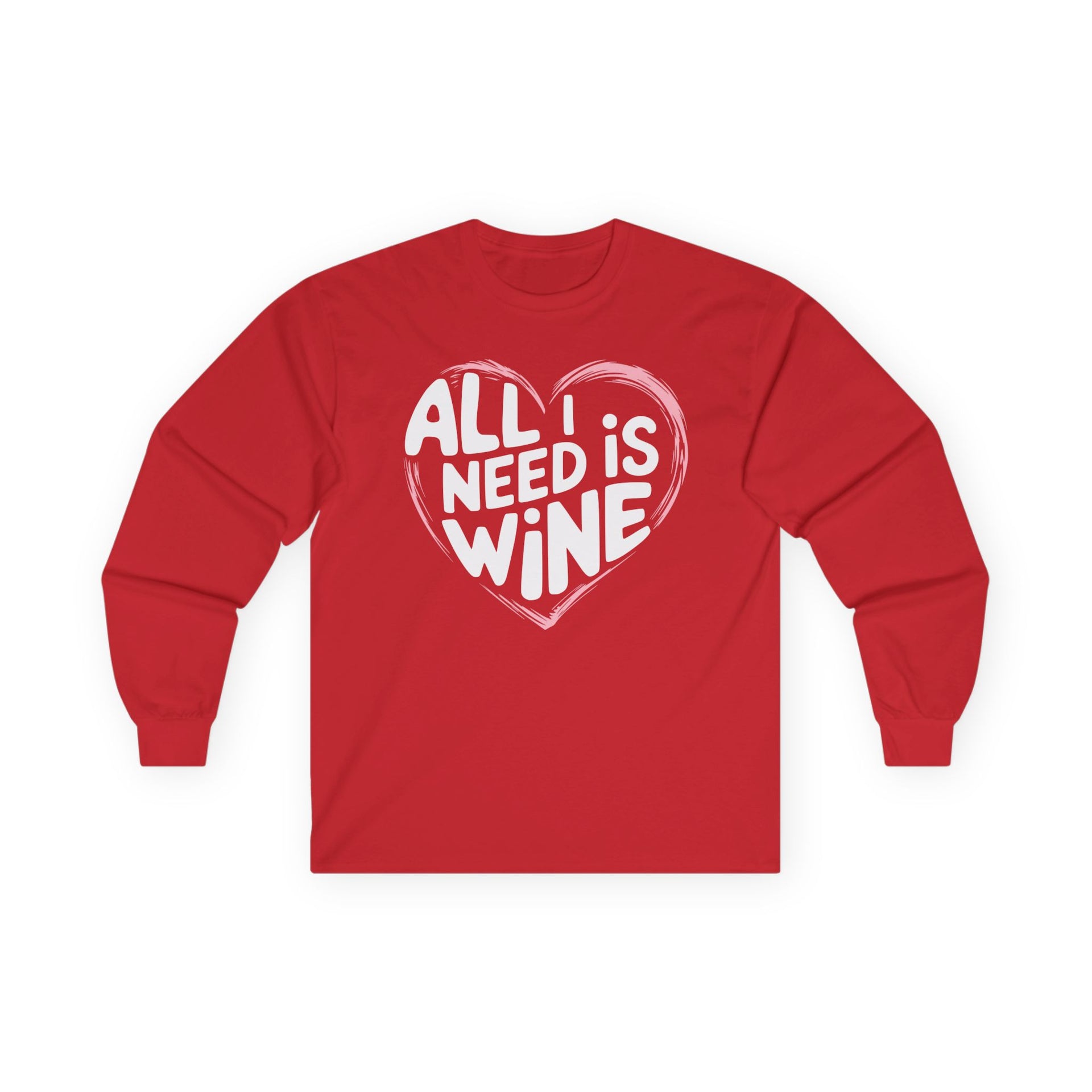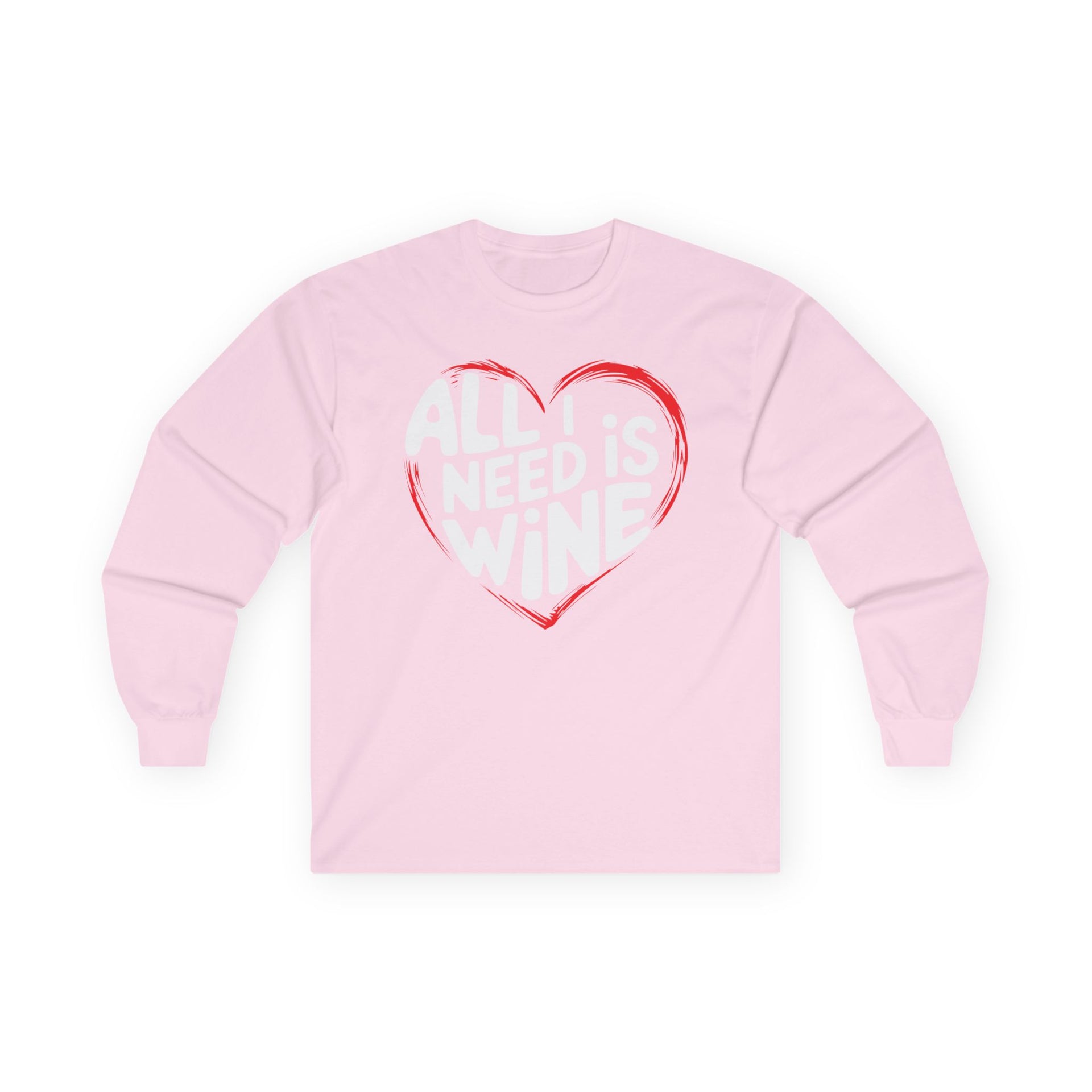 All I Need Is Wine Funny Valentine’s Long-Sleeve Shirt - Romantic Wine Lover Tee with Heart Design, Perfect Gift for Her