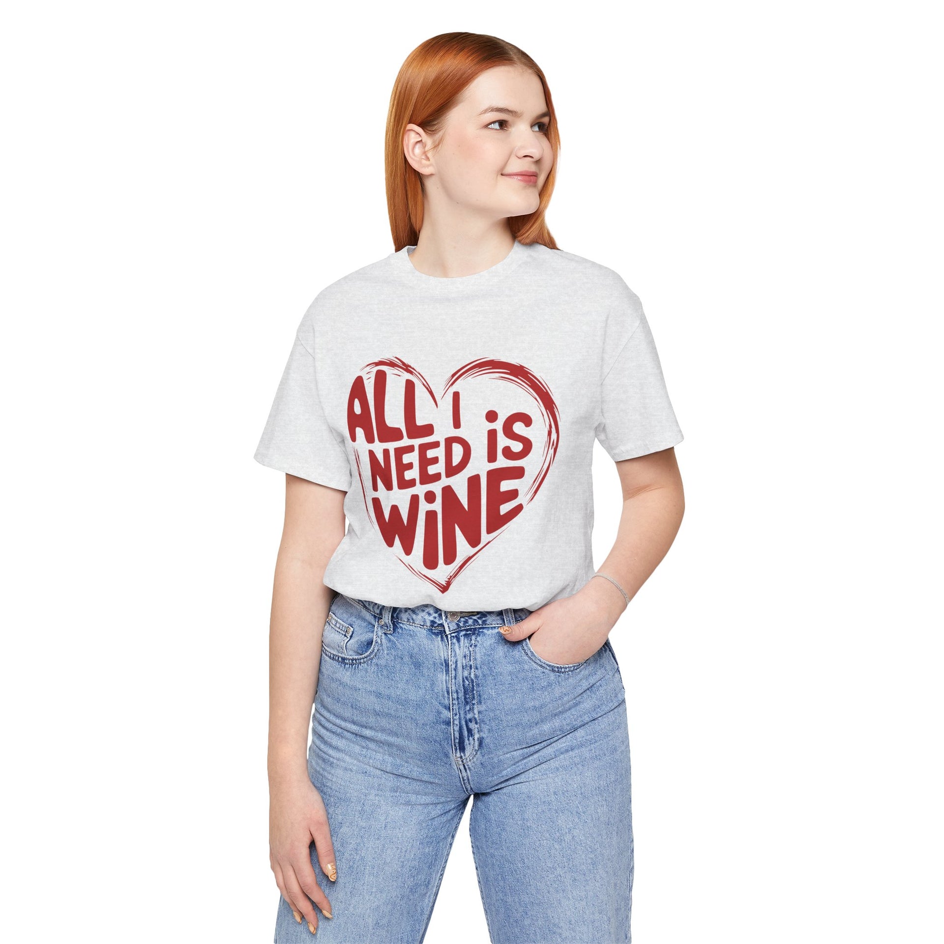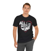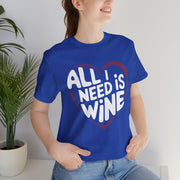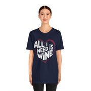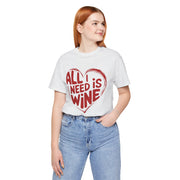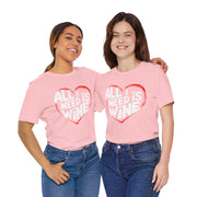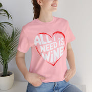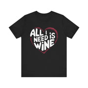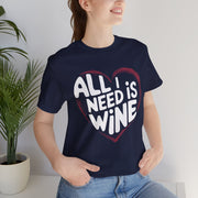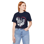 All I Need Is Wine Funny Valentine’s T-Shirt - Romantic Wine Lover Tee with Heart Design, Perfect Gift for Her