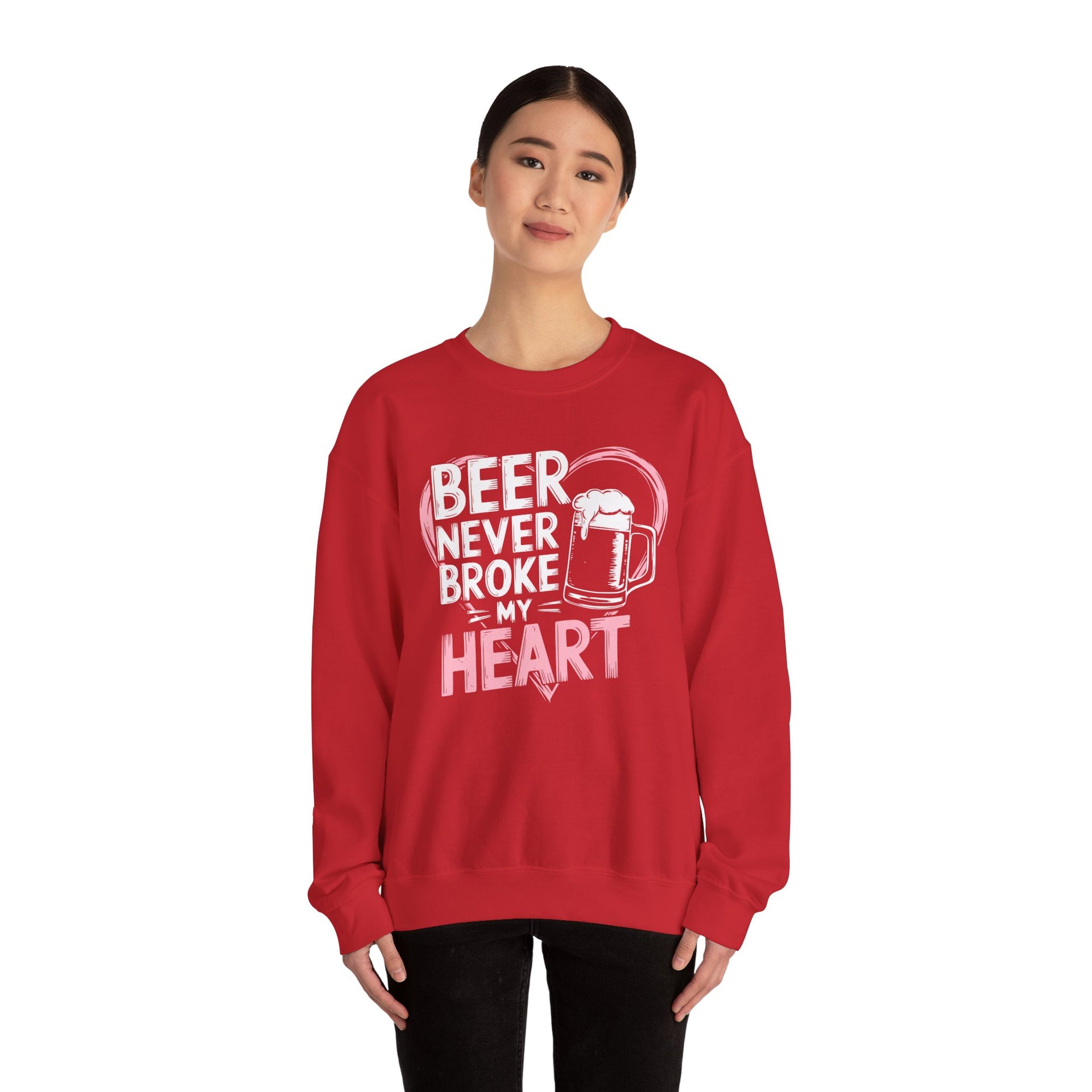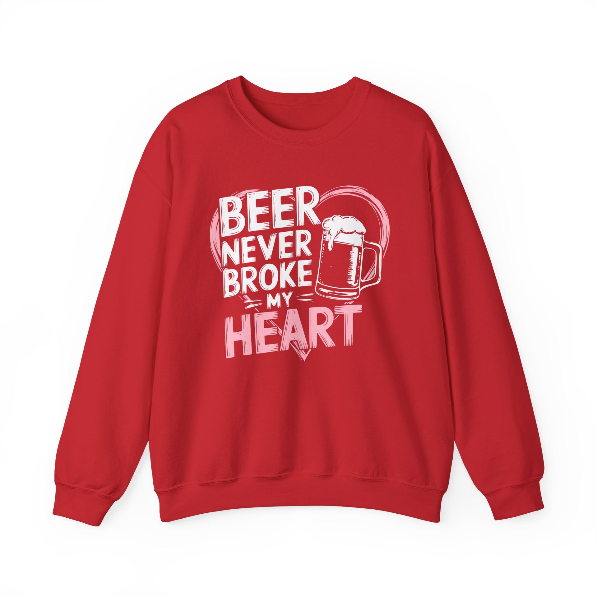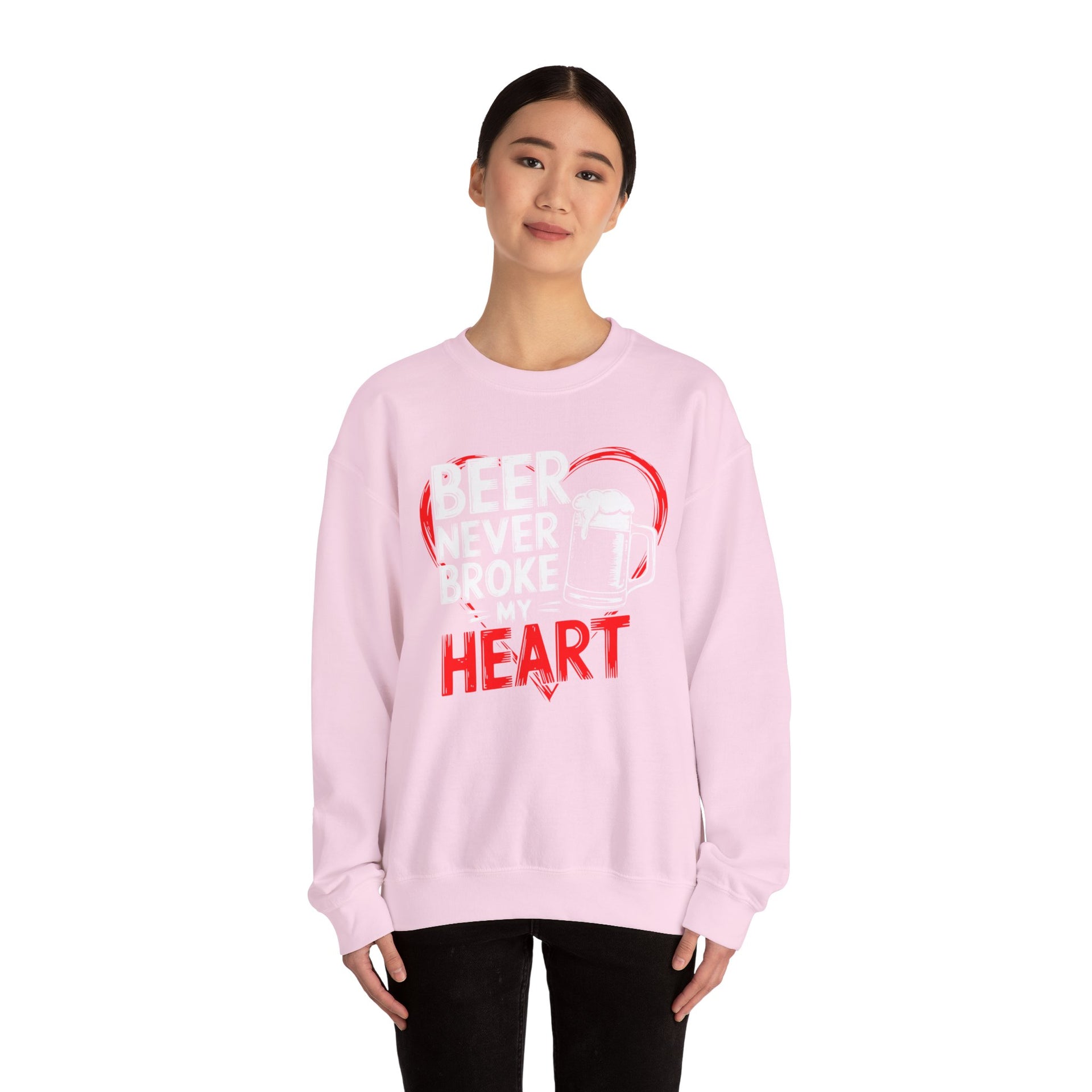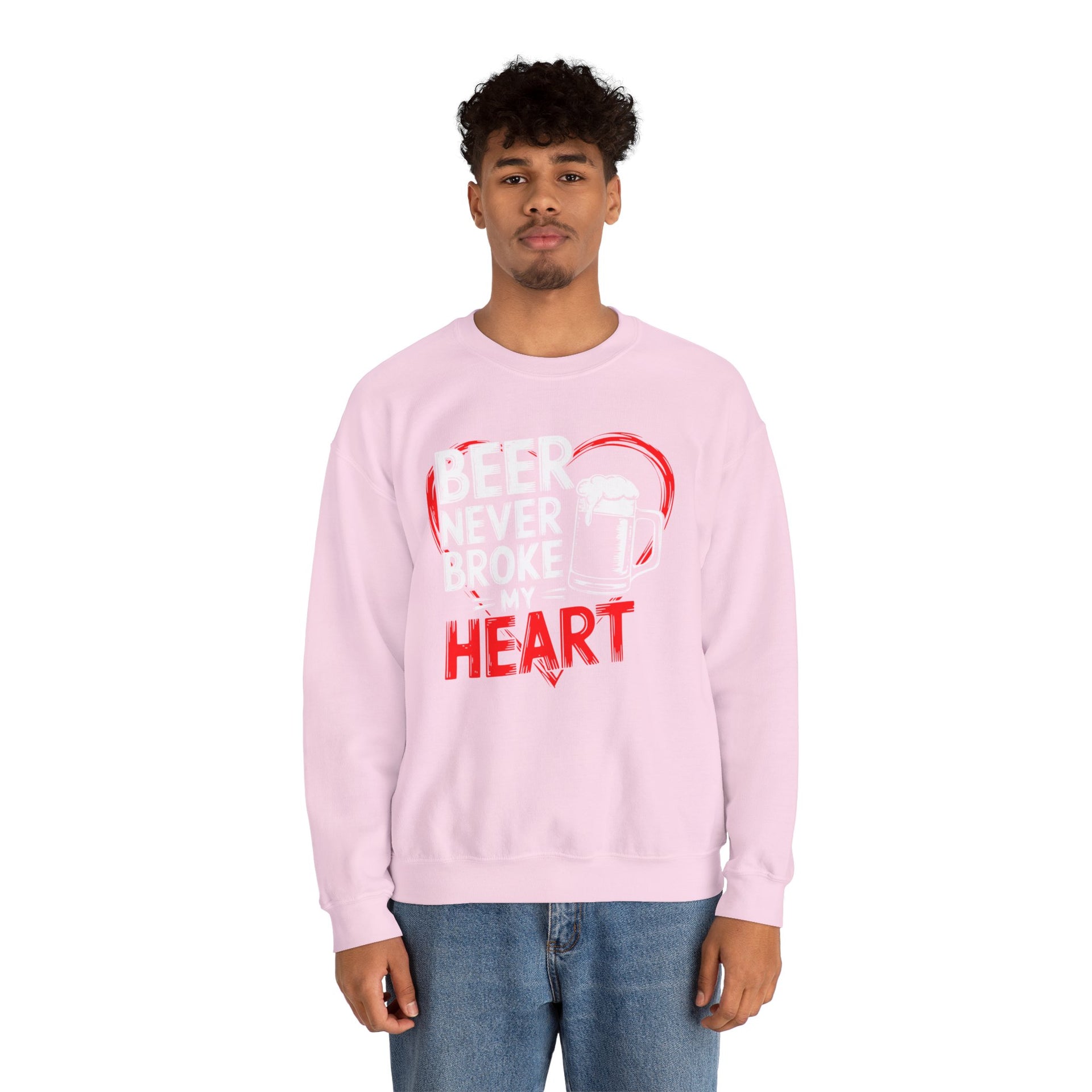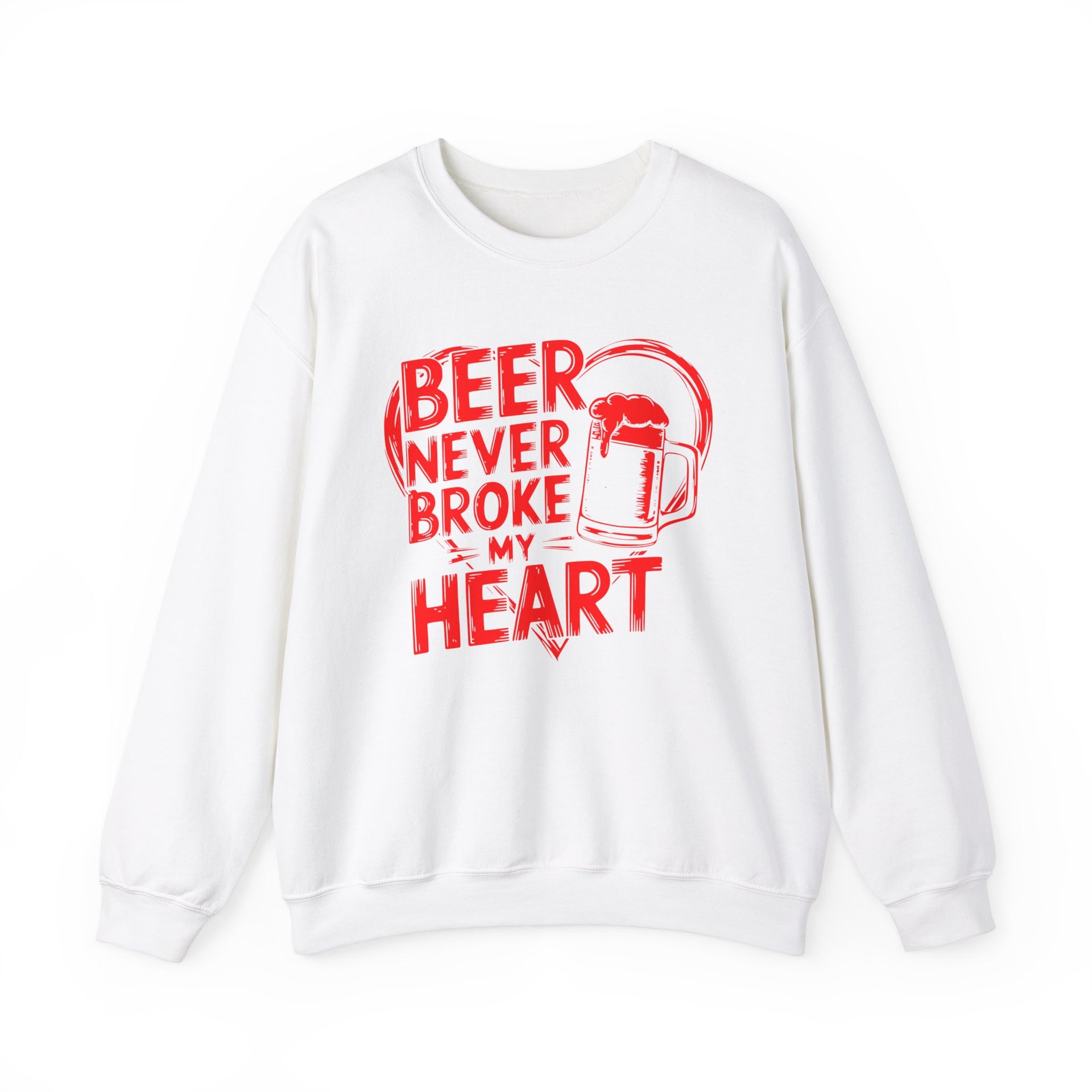 Beer Never Broke My Heart Funny Sweatshirt - Beer Lover Valentine’s Day Pullover, Perfect Gift for Him or Her