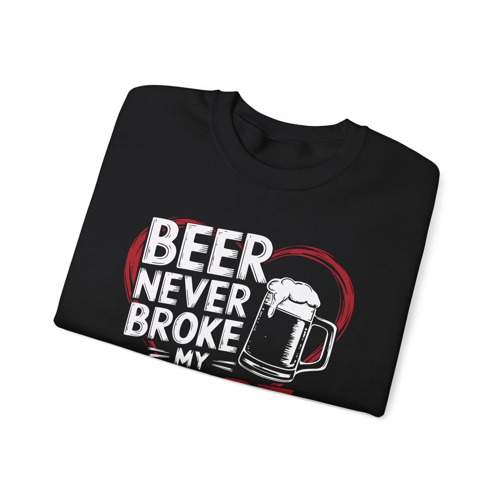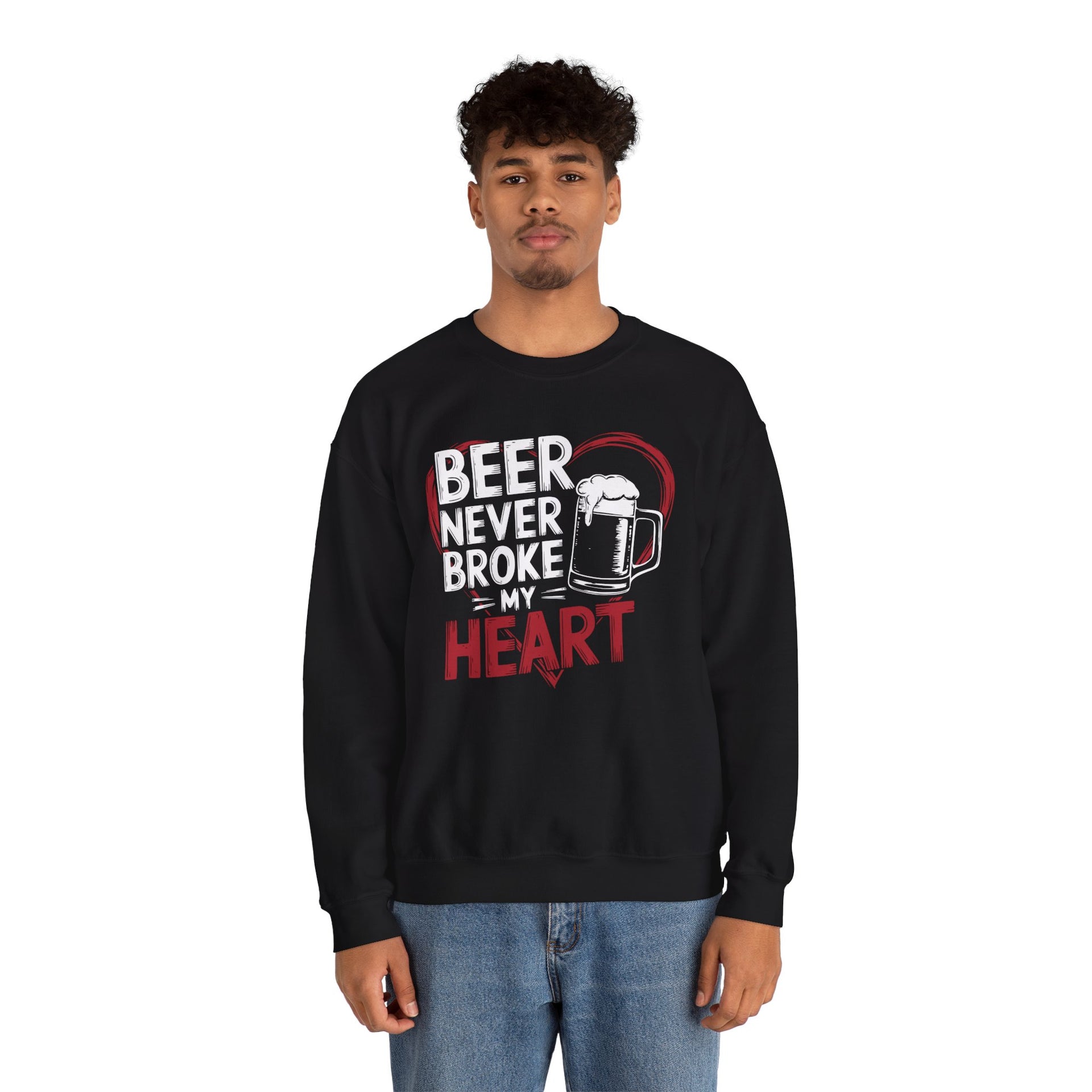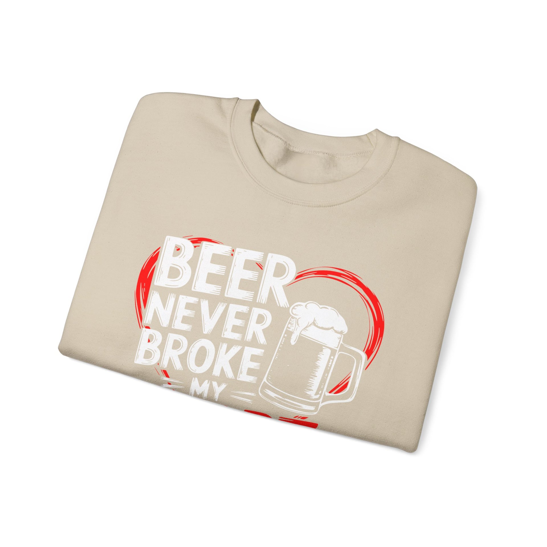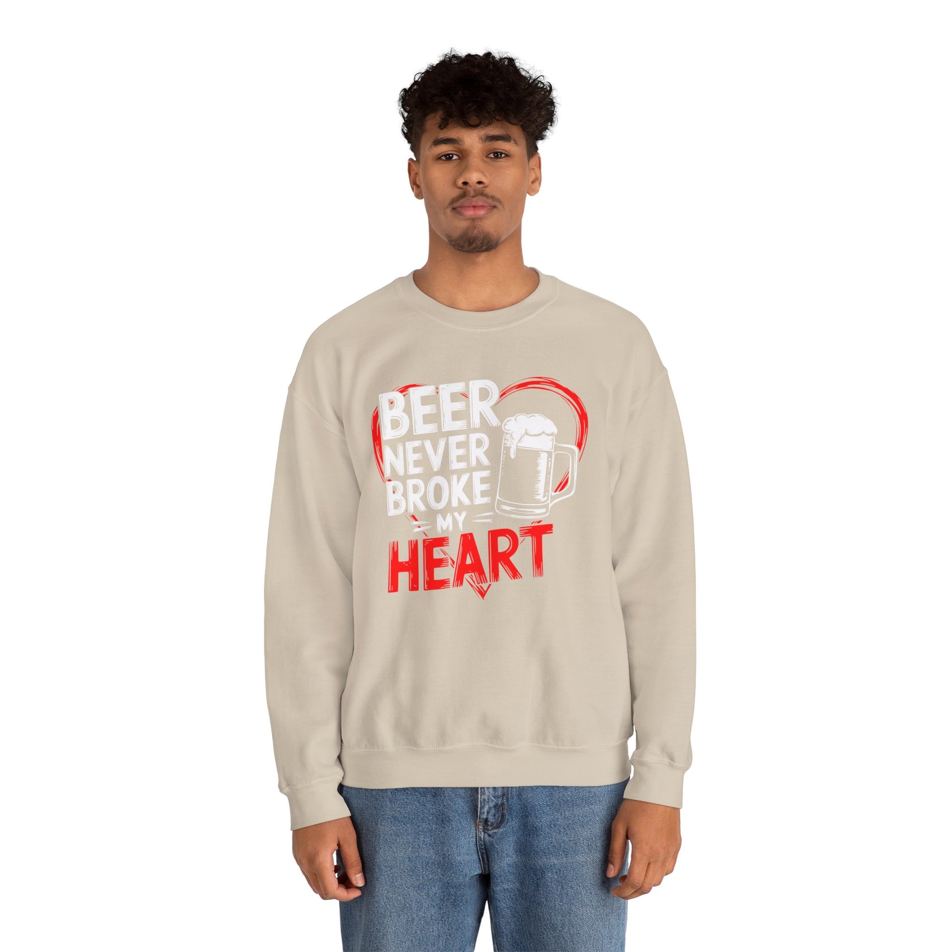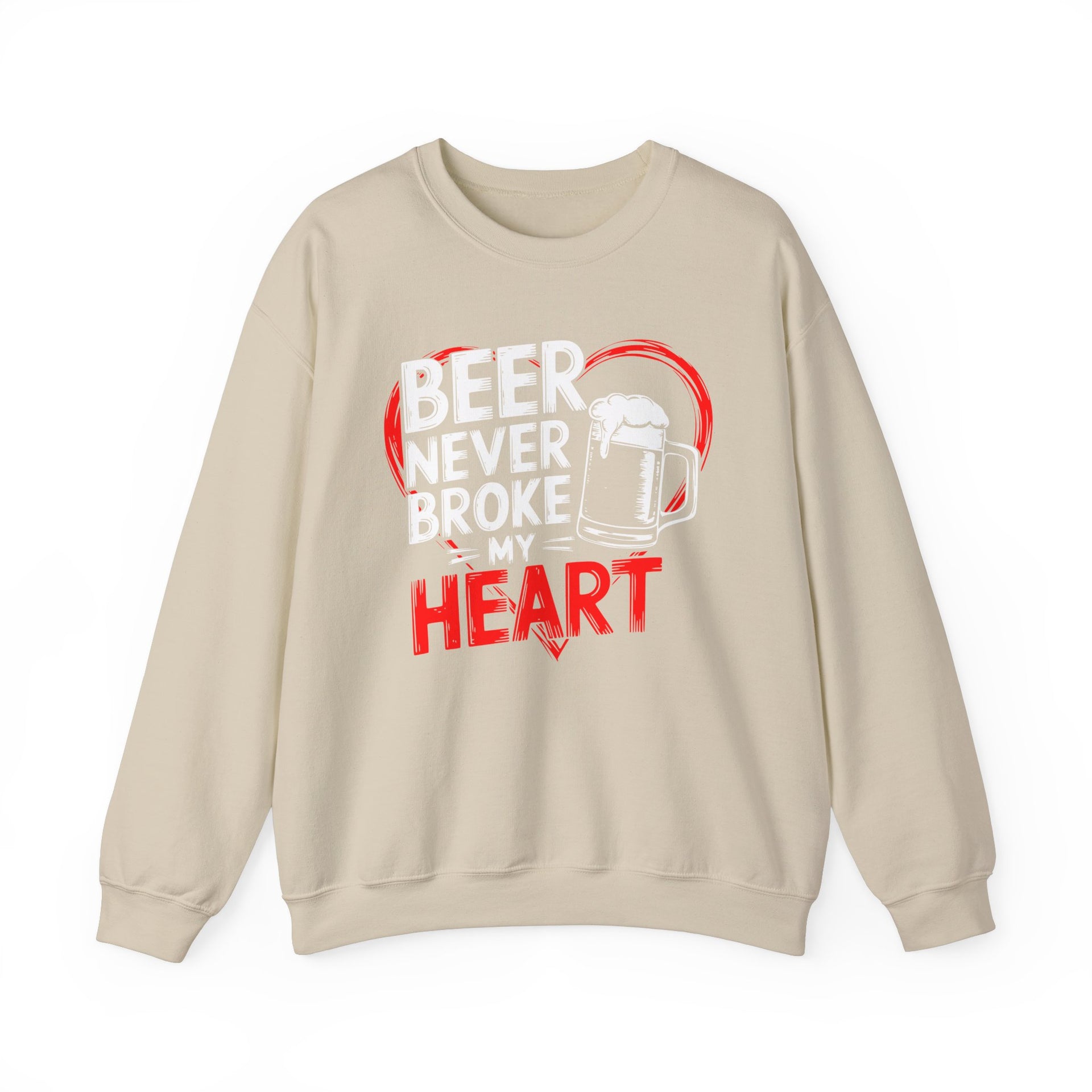 Beer Never Broke My Heart Funny Sweatshirt - Beer Lover Valentine’s Day Pullover, Perfect Gift for Him or Her