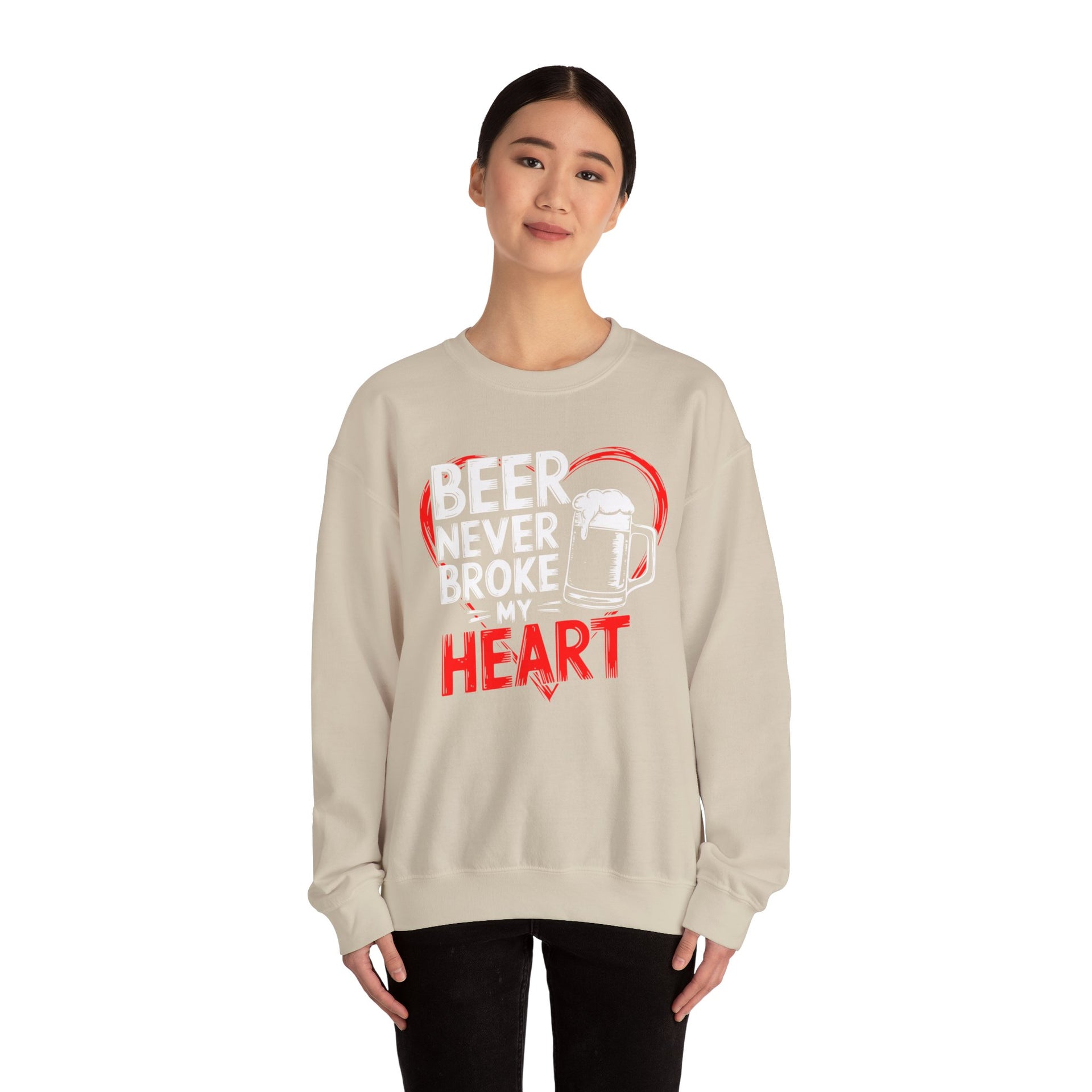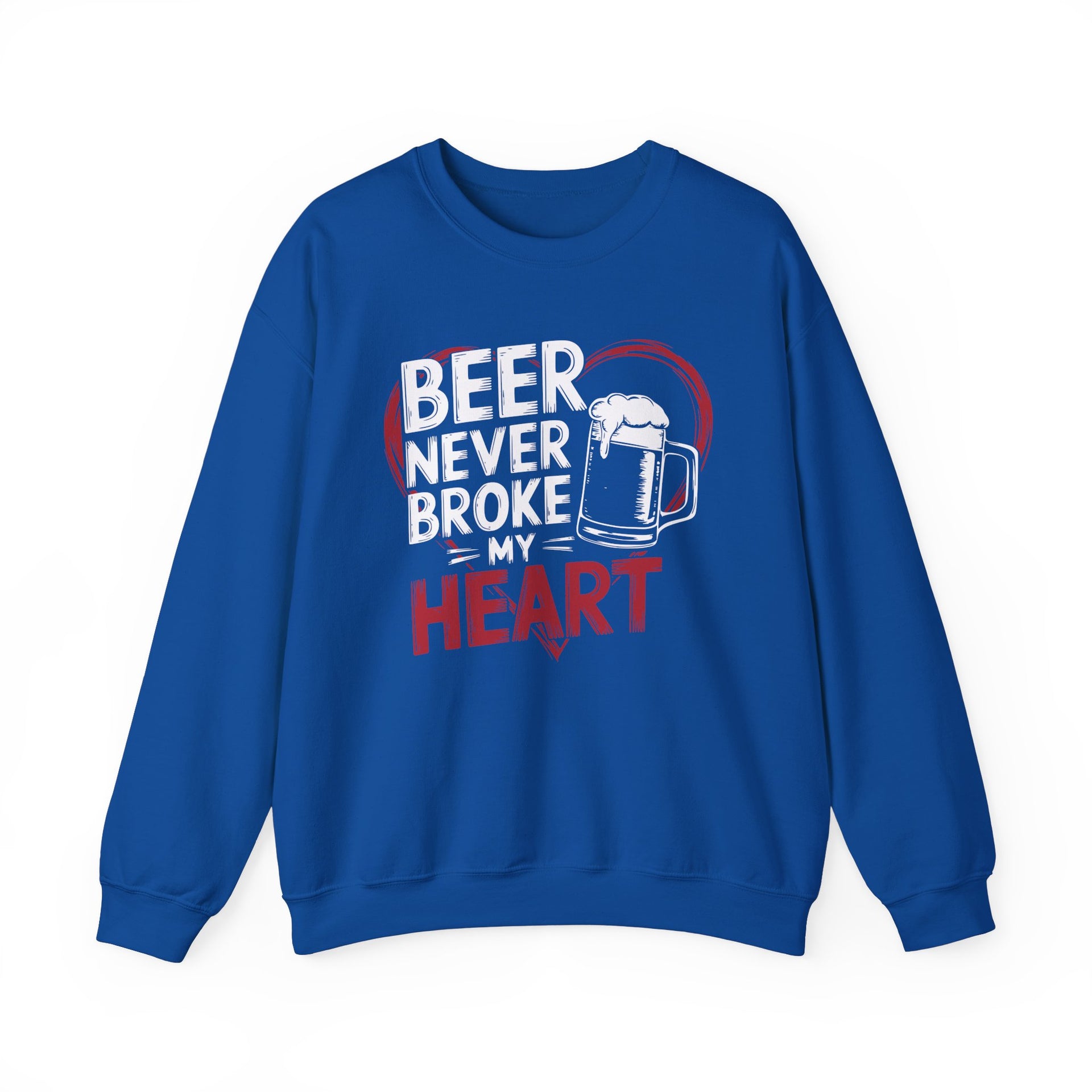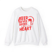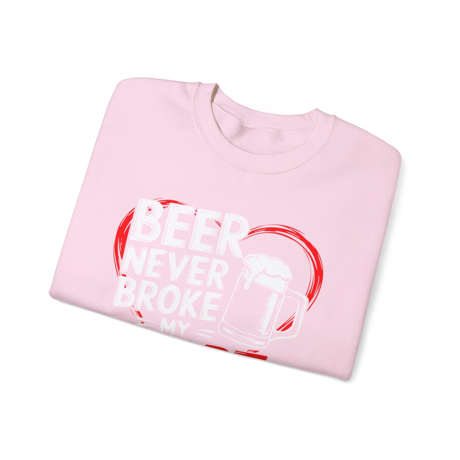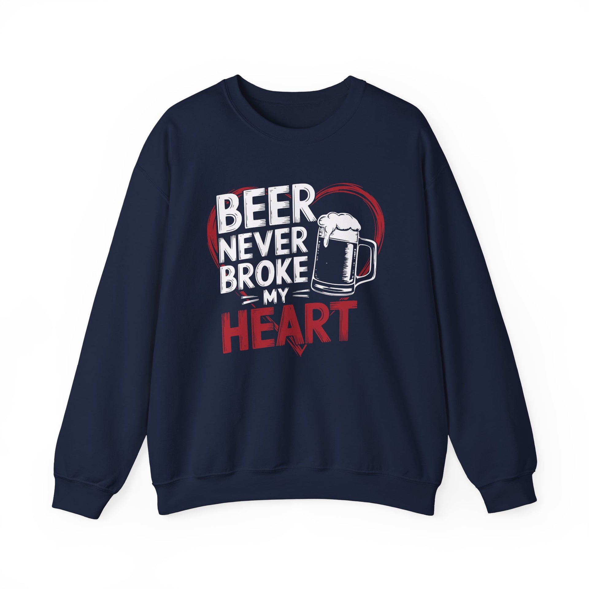 Beer Never Broke My Heart Funny Sweatshirt - Beer Lover Valentine’s Day Pullover, Perfect Gift for Him or Her
