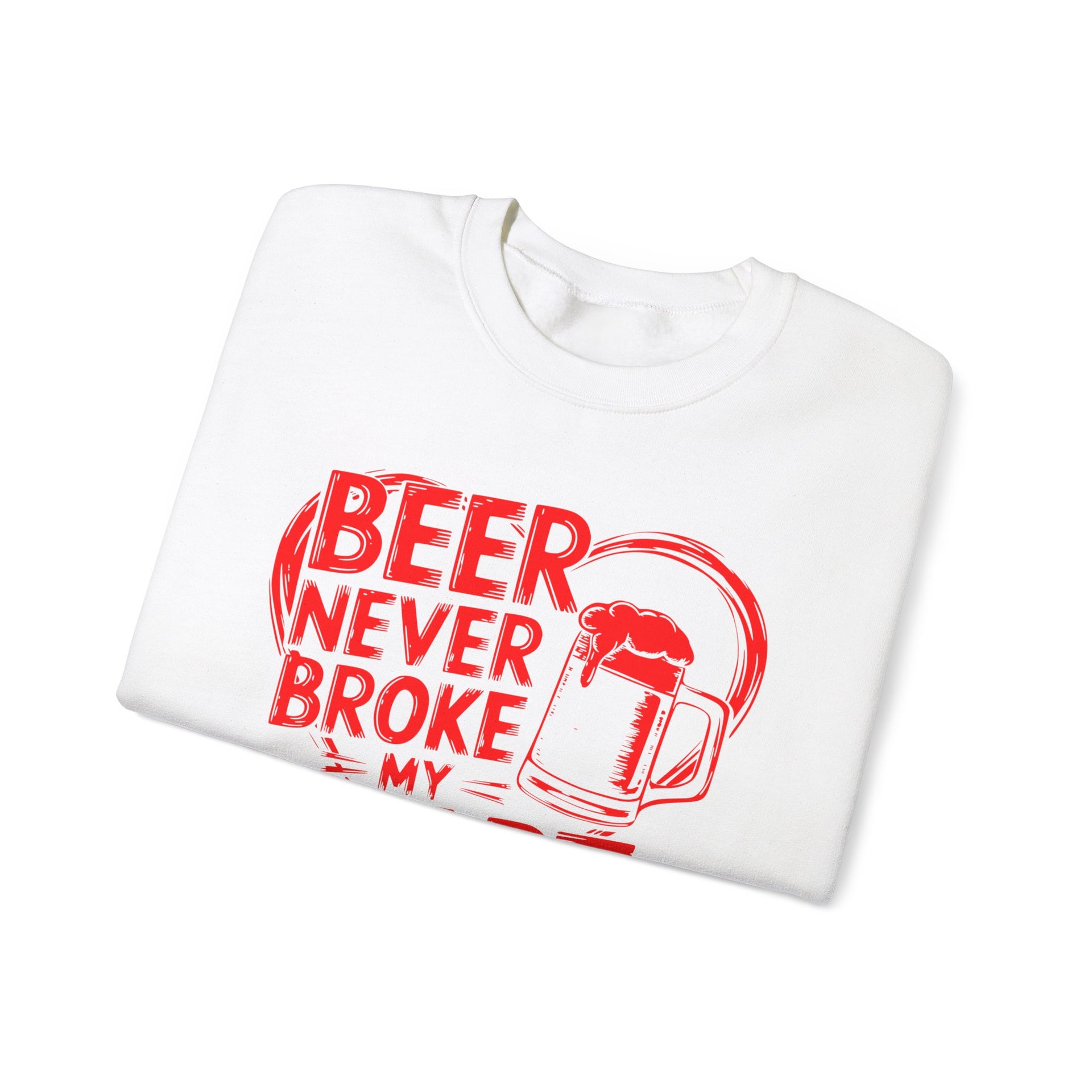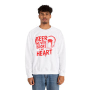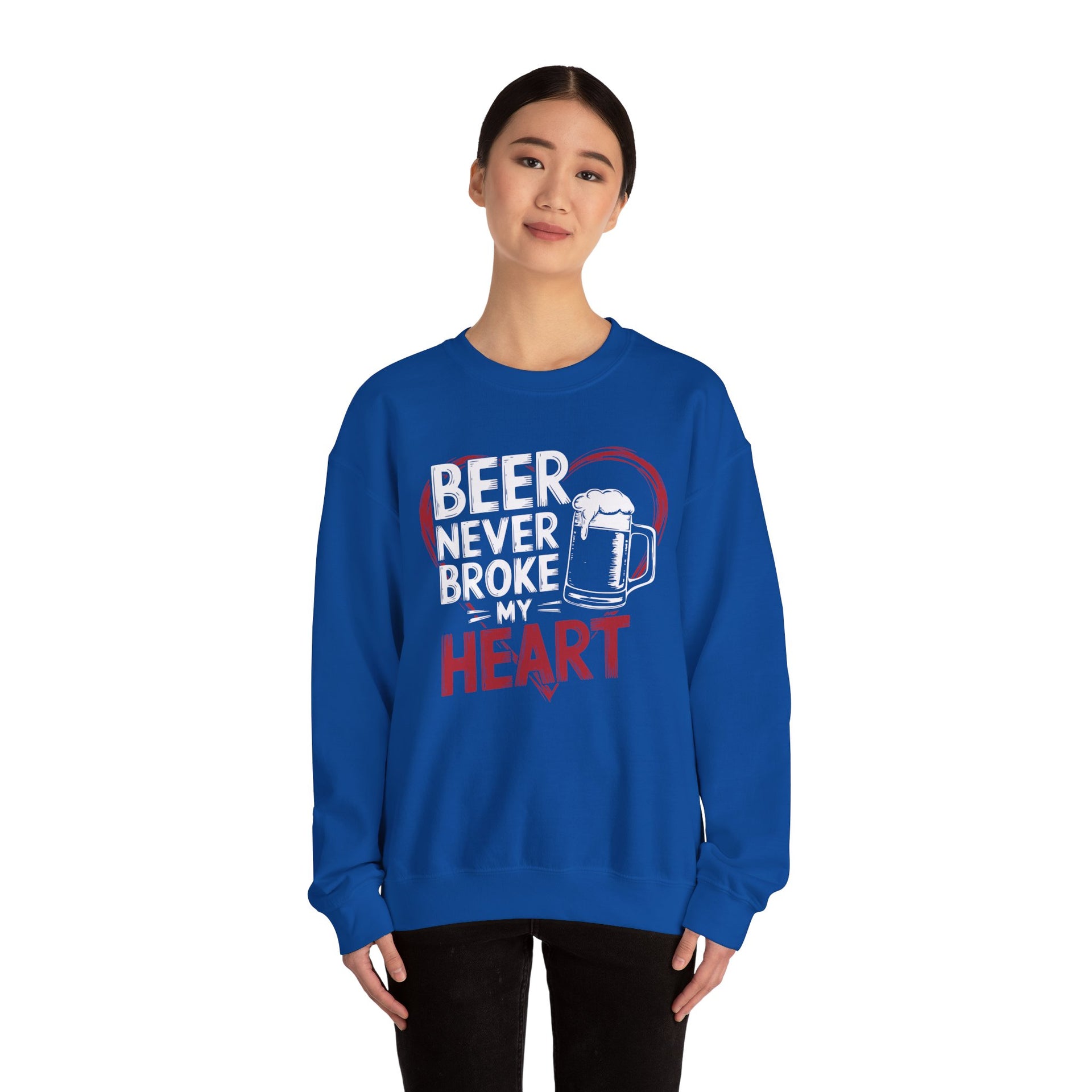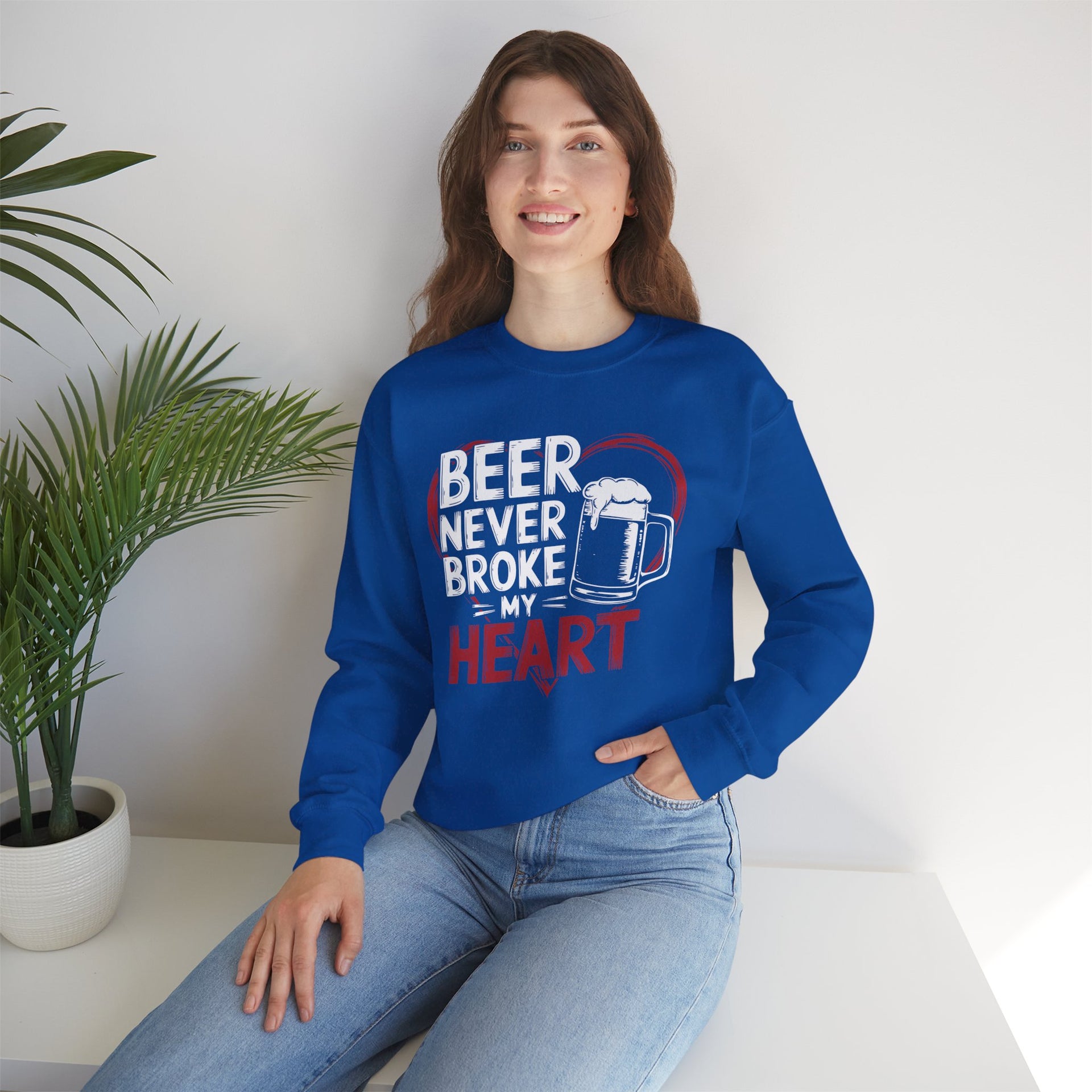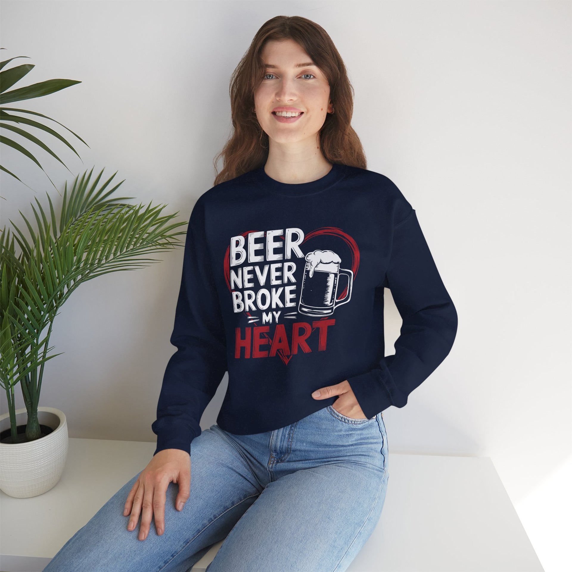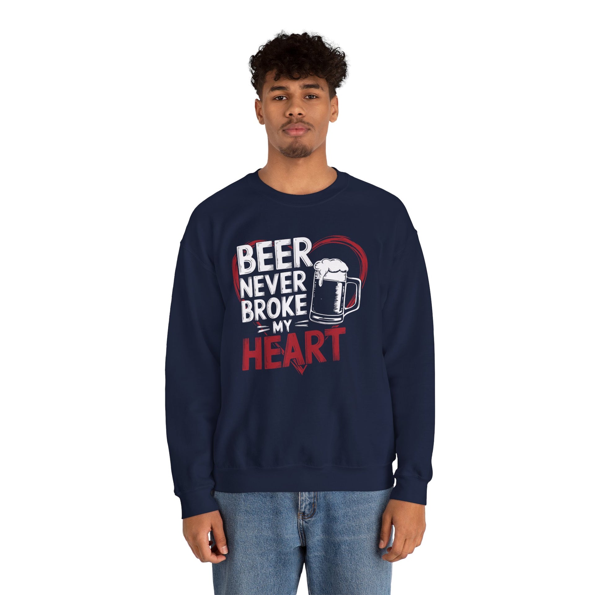 Beer Never Broke My Heart Funny Sweatshirt - Beer Lover Valentine’s Day Pullover, Perfect Gift for Him or Her