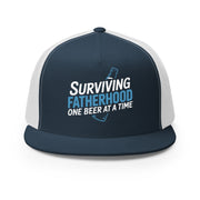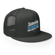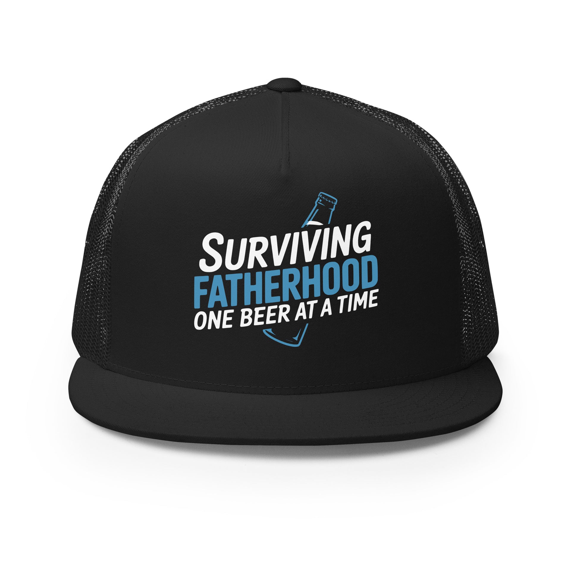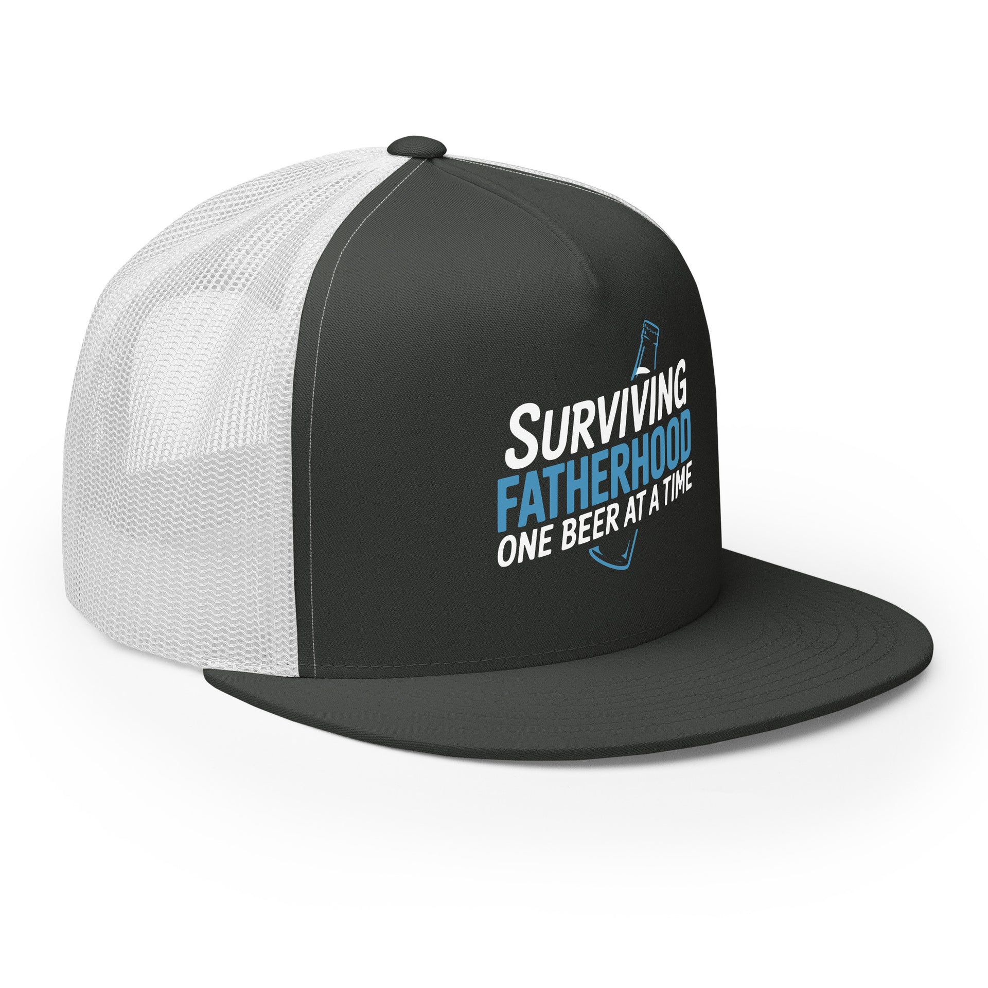 Flat Bill Dad Hat – Surviving Fatherhood One Beer at a Time – Funny Trucker Hat for Men – Father’s Day Gift – Beer Lover Hat – Outdoor Adventure
