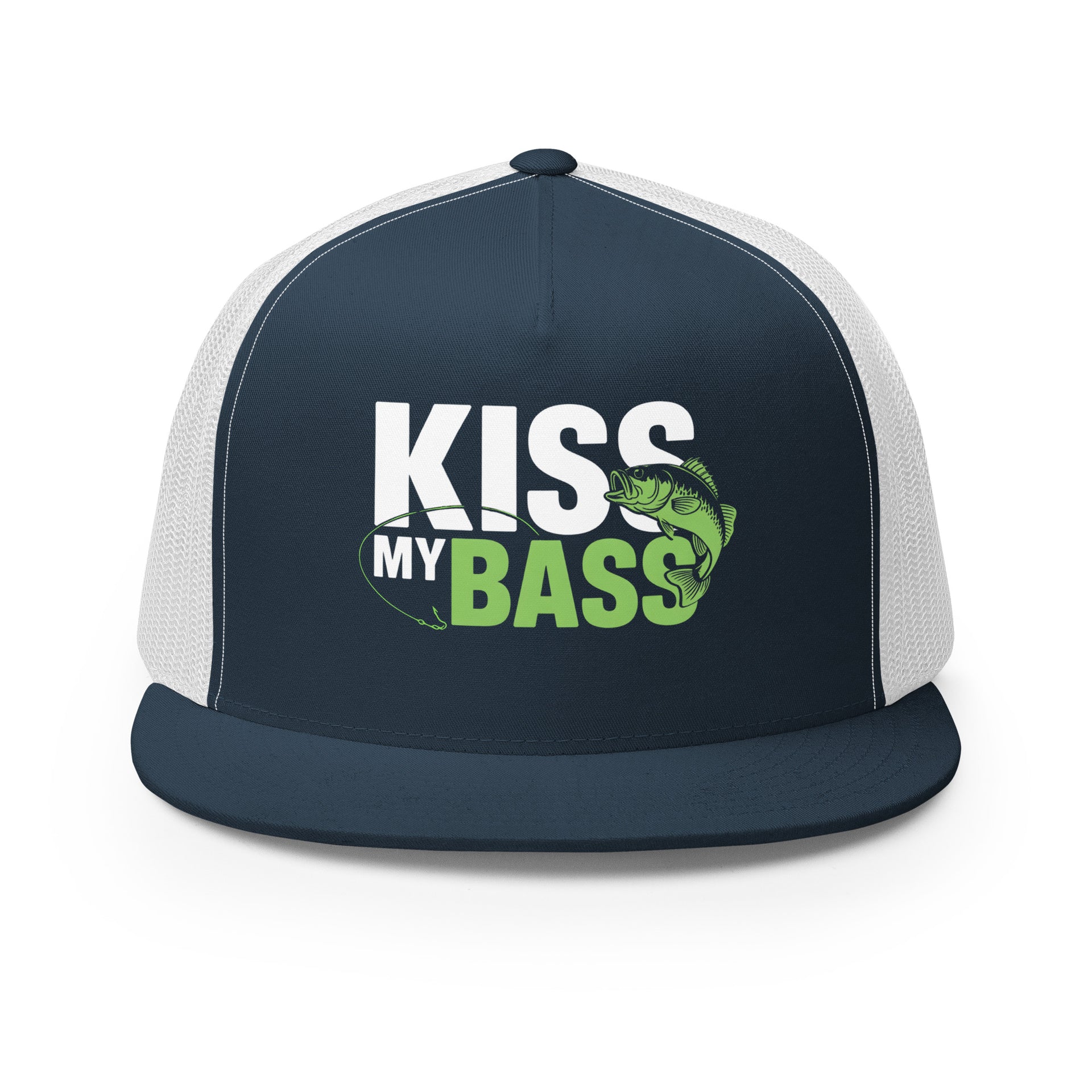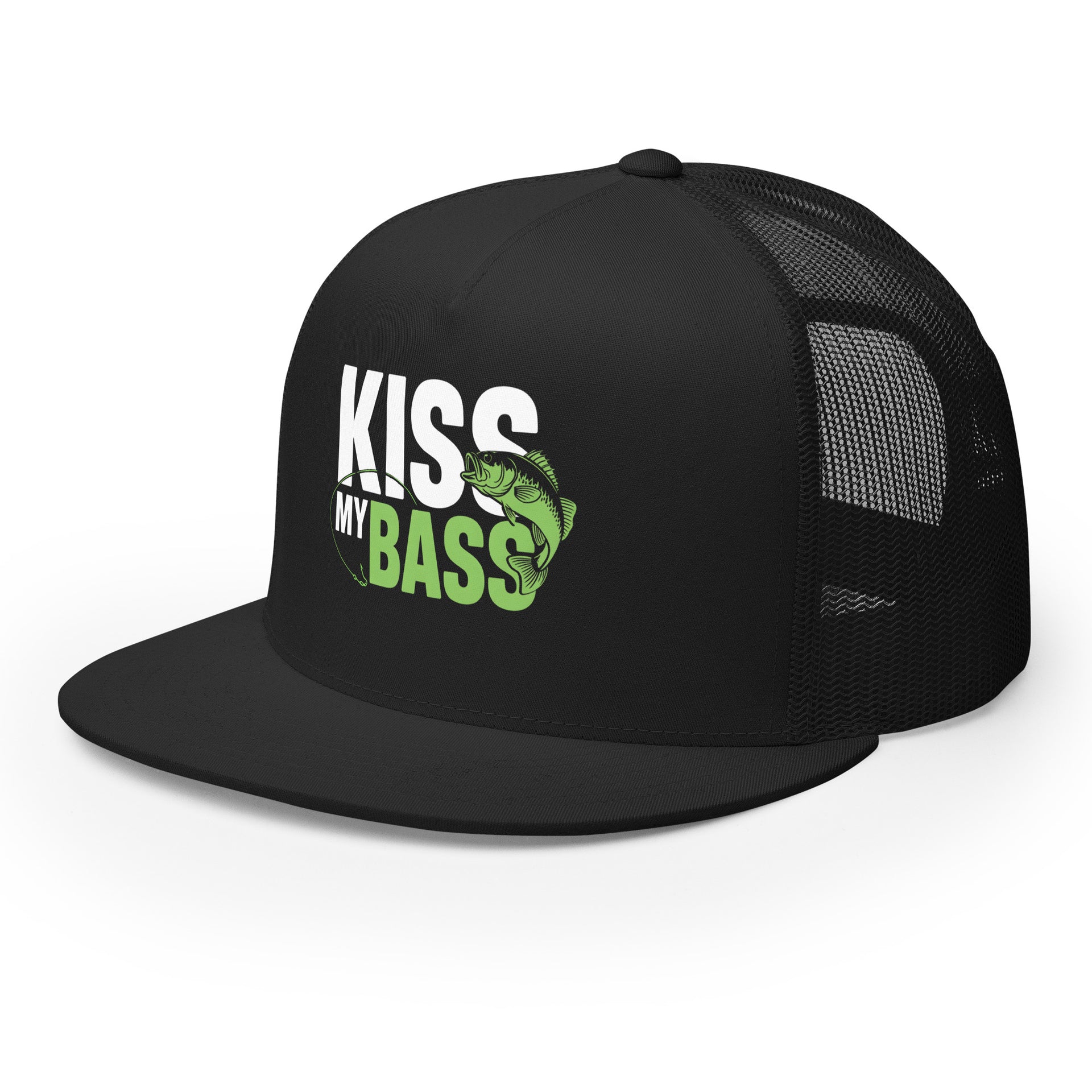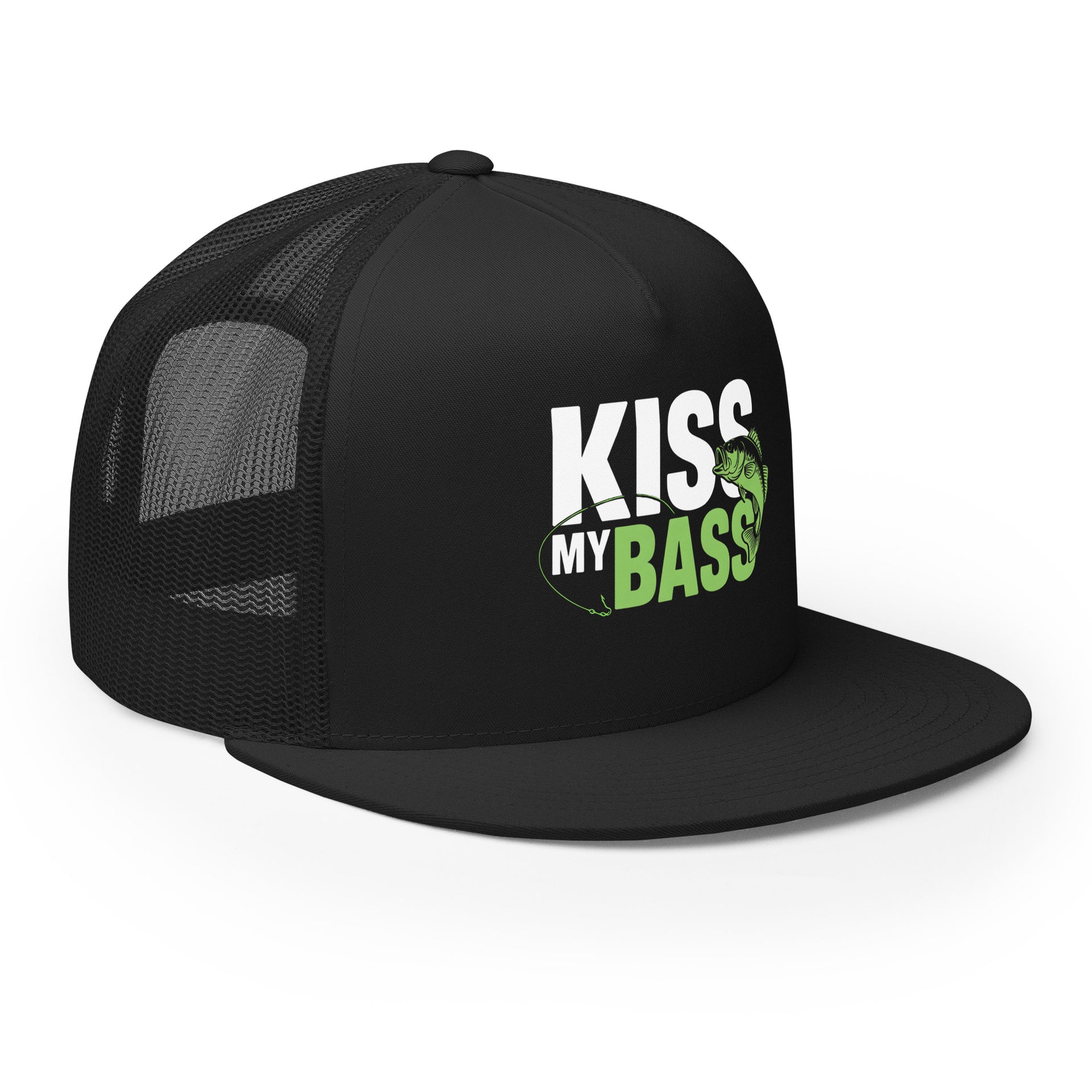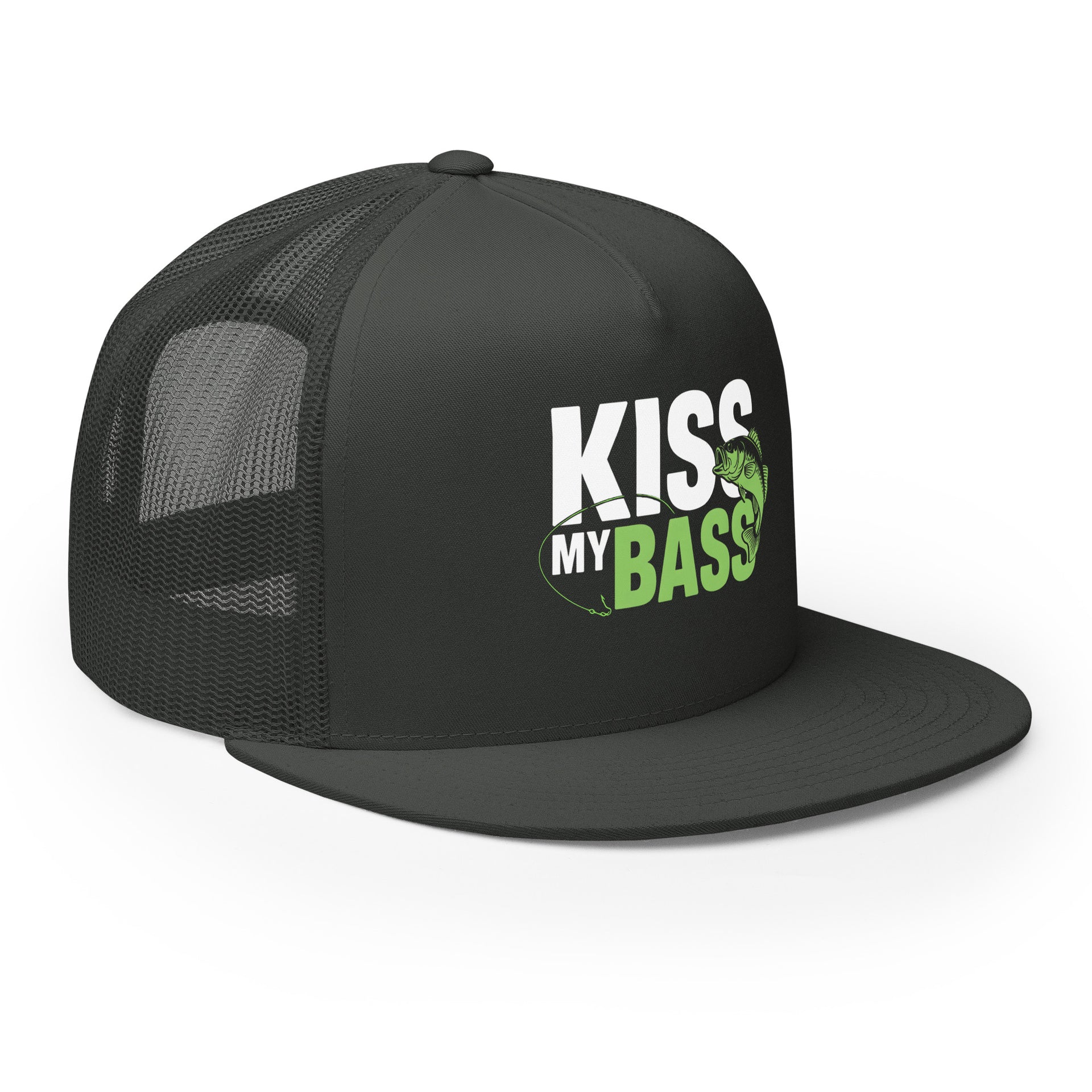 Flat Bill Fishing Hat – Kiss My Bass – Funny Trucker Hat for Men – Lake Life Hat – Fishing Gift for Dad – Outdoor Adventure Hat