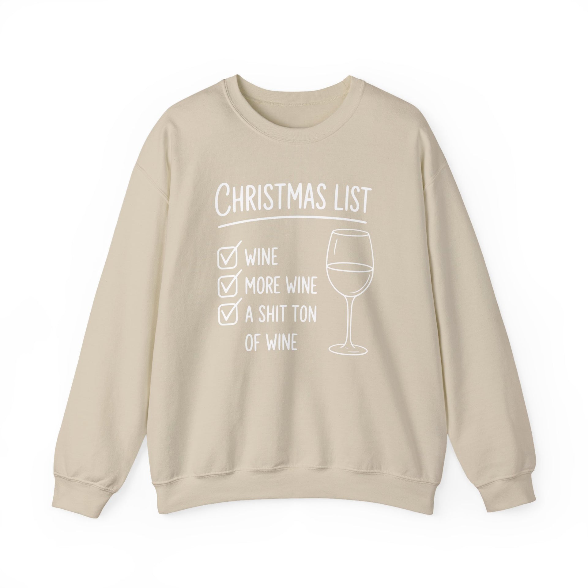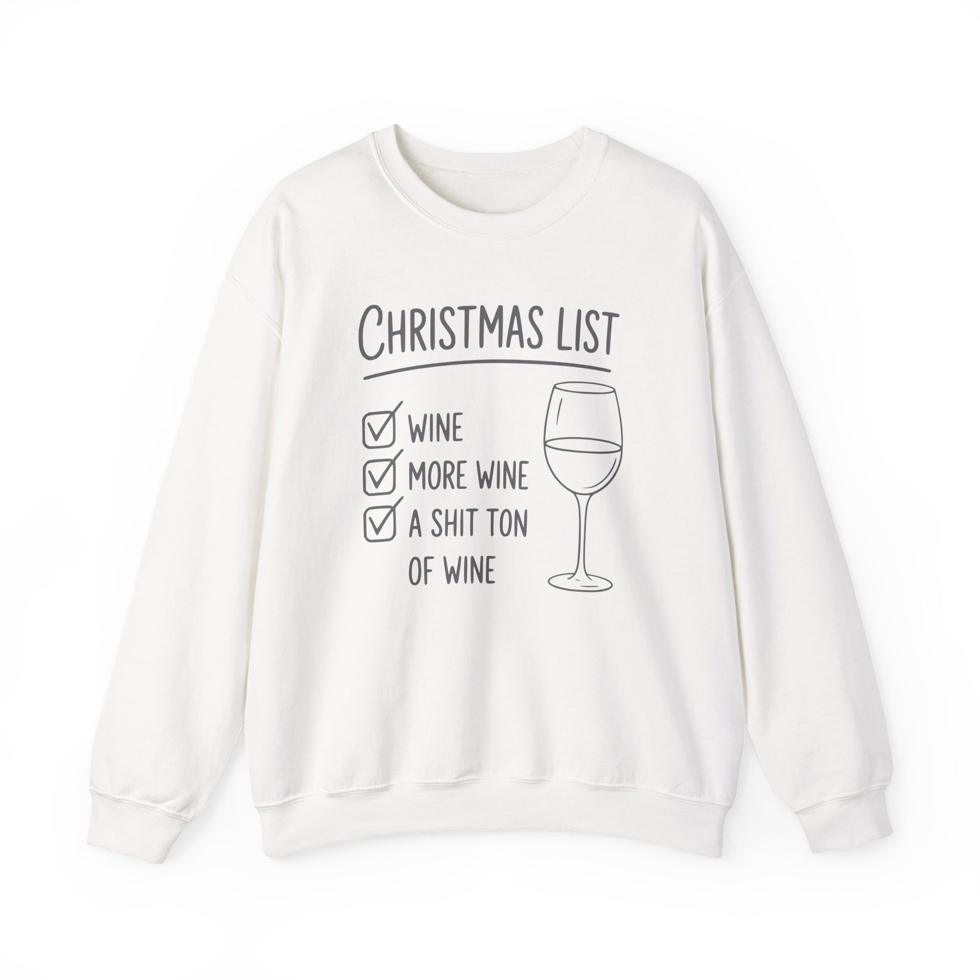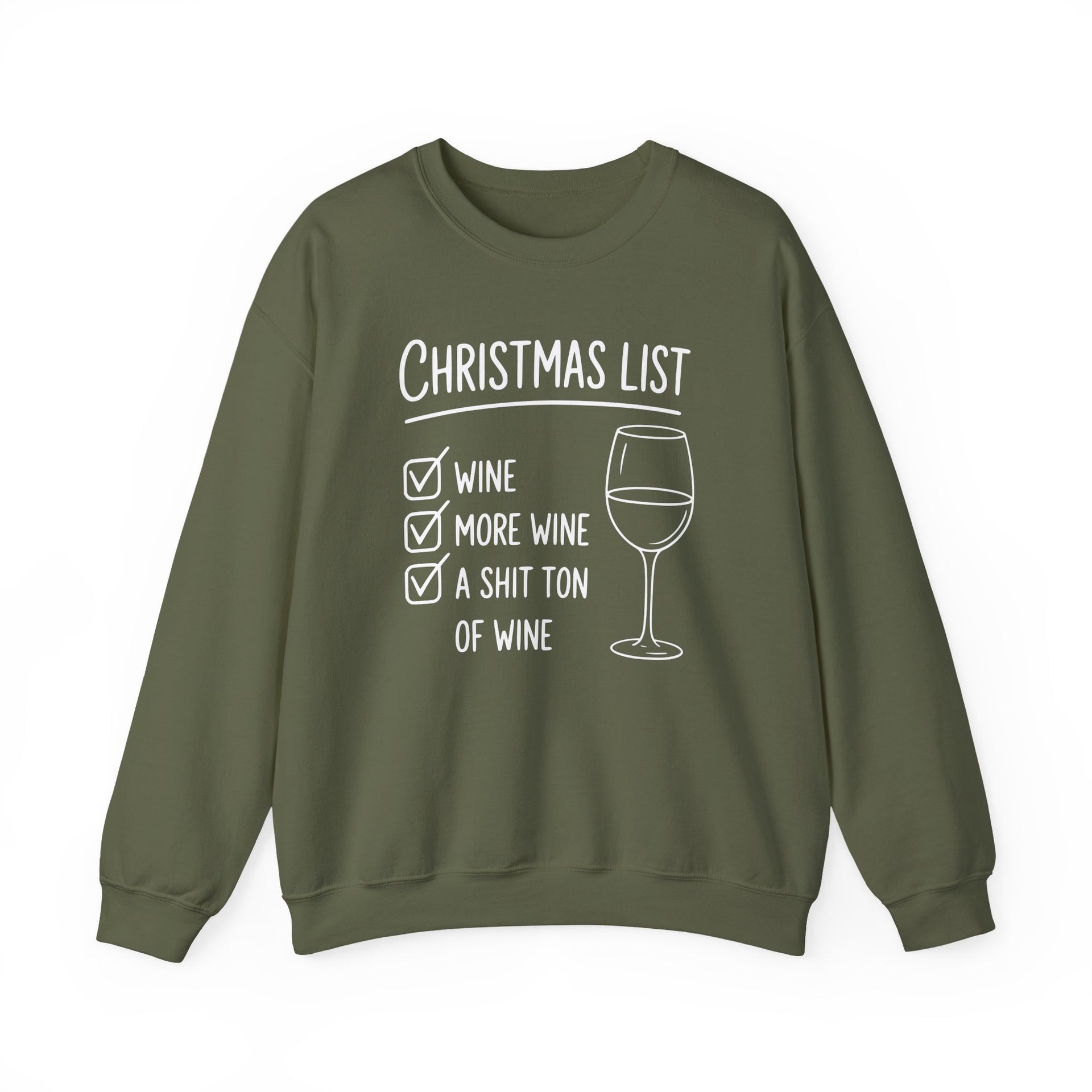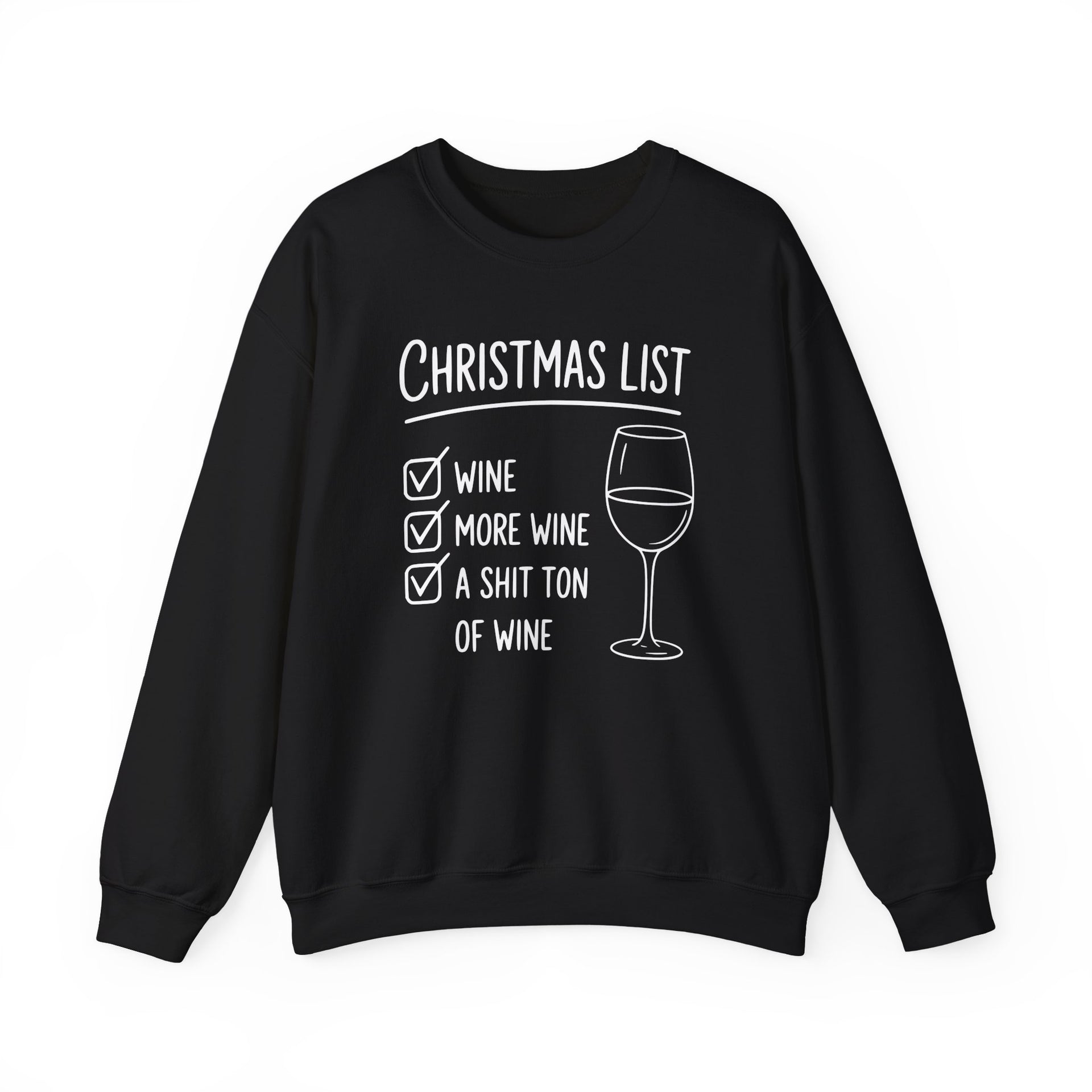 Funny Christmas Sweatshirt – Christmas List – Holiday Wine Lover Sweater