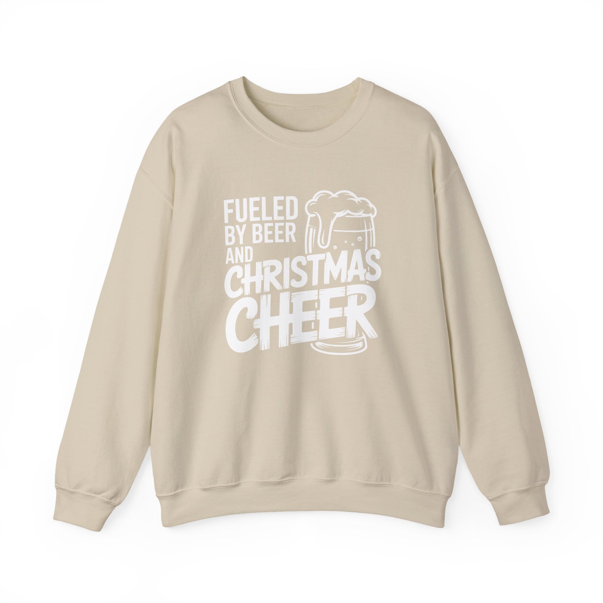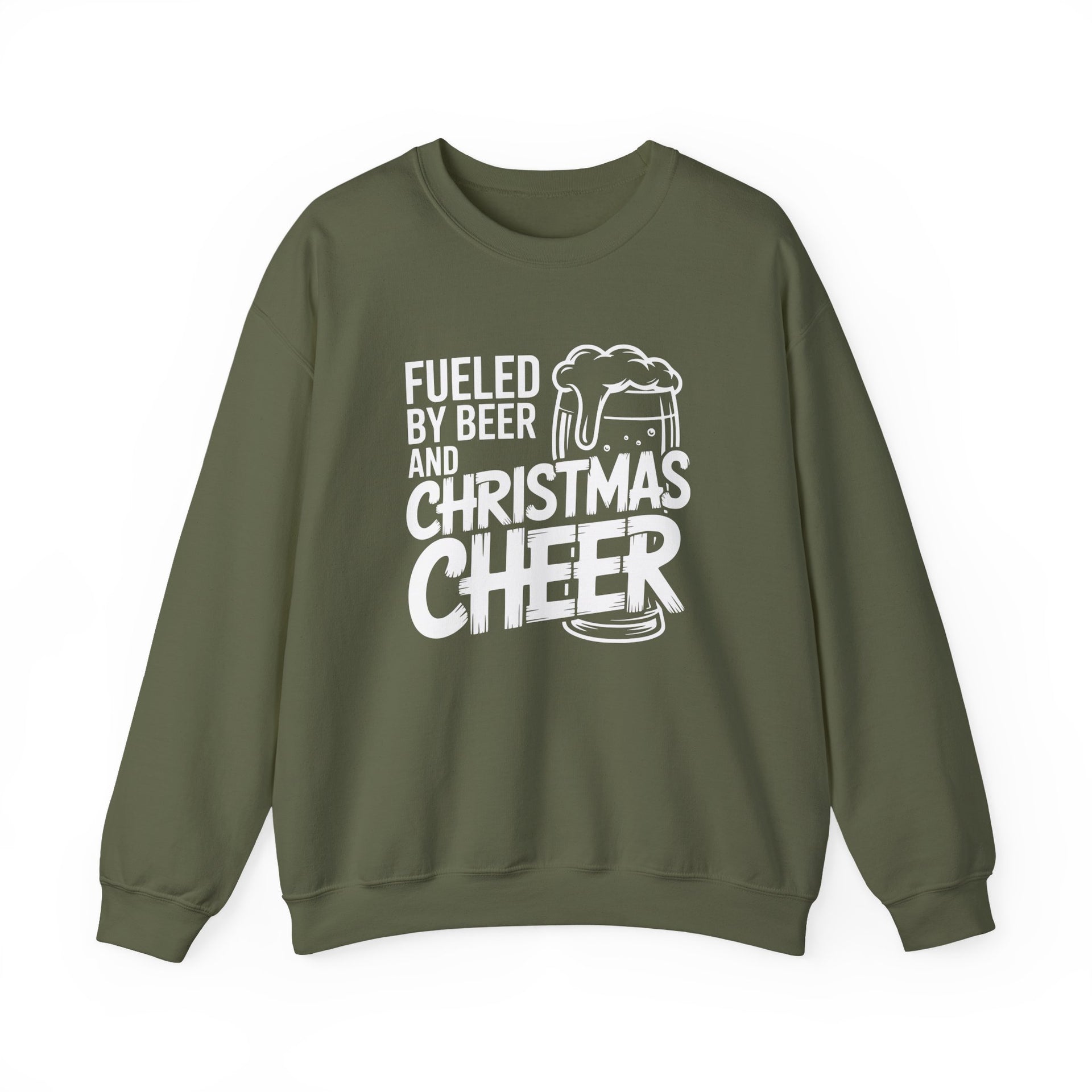 Funny Christmas Sweatshirt – Fueled by Beer and Christmas Cheer – Holiday Beer Lover Sweater