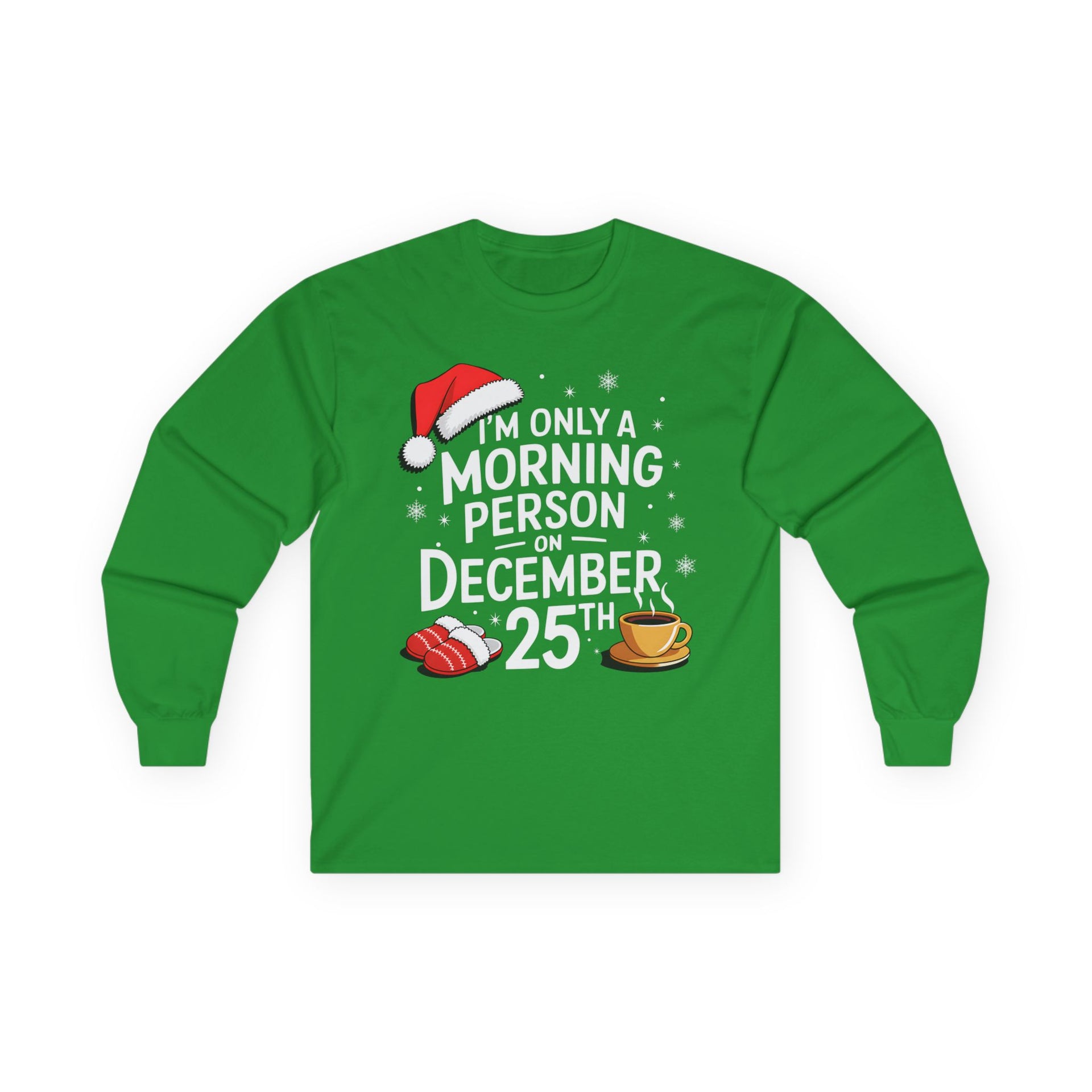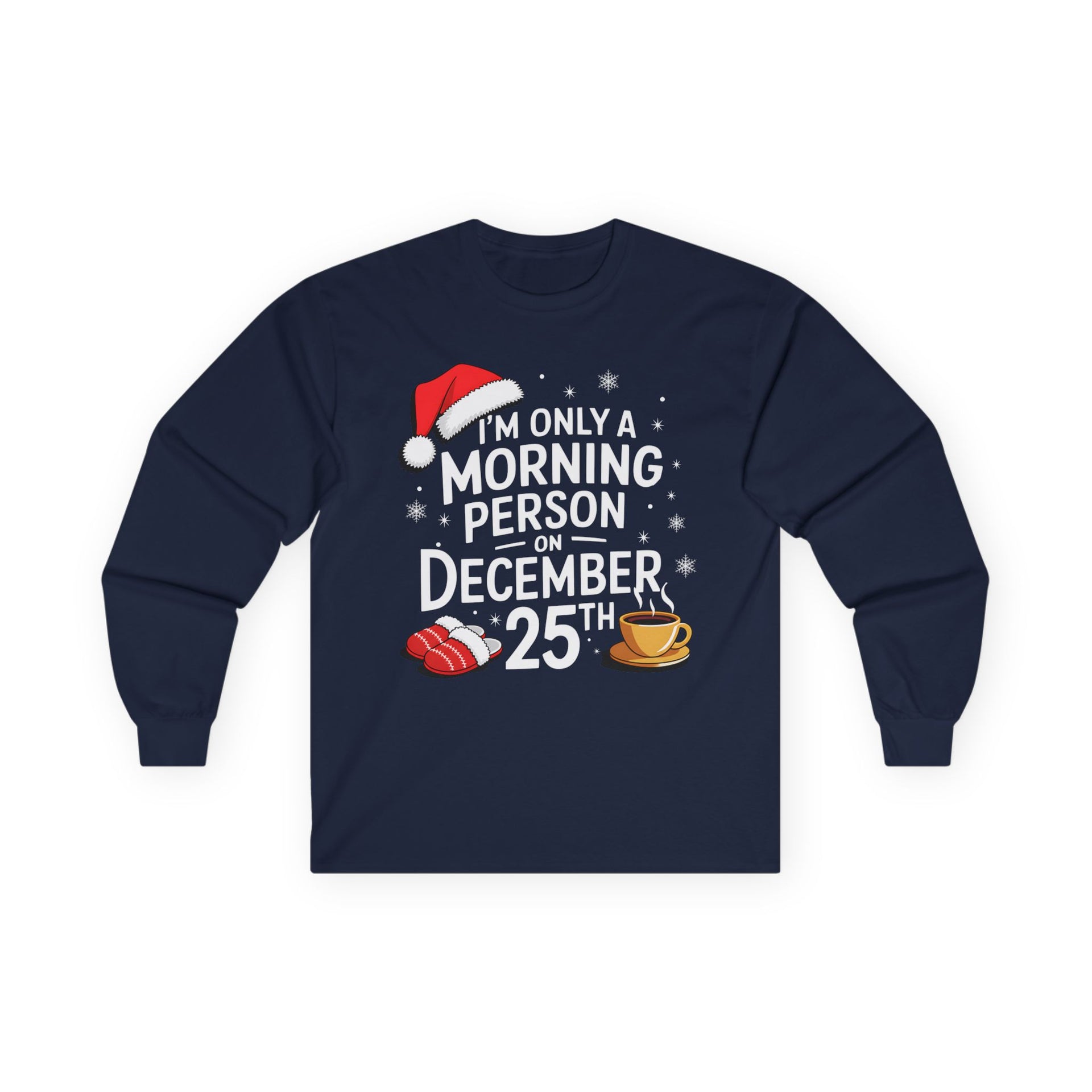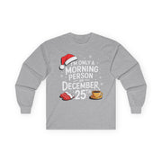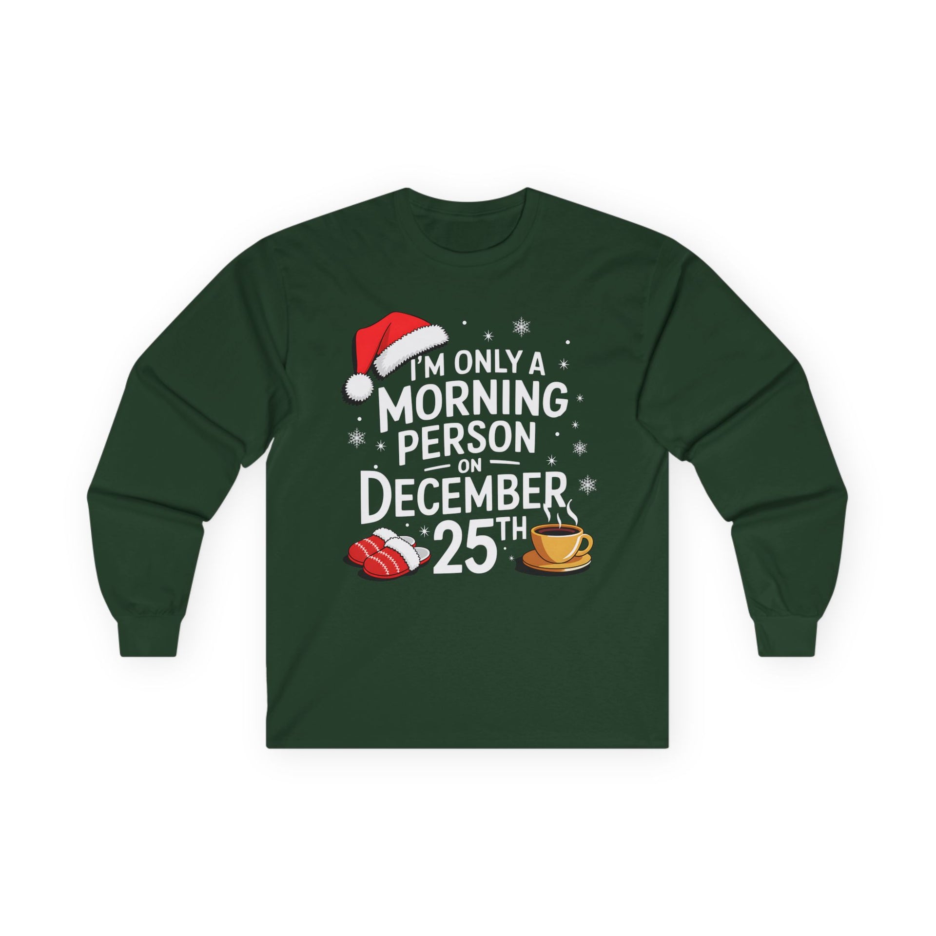 Funny Christmas Long Sleeve Shirt – I’m Only a Morning Person on December 25th – Holiday Humor Tee – Men’s & Women’s Christmas Top