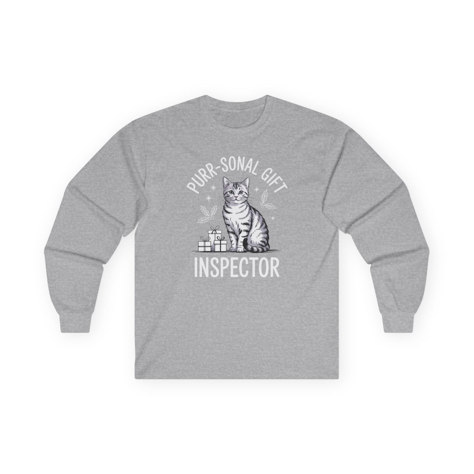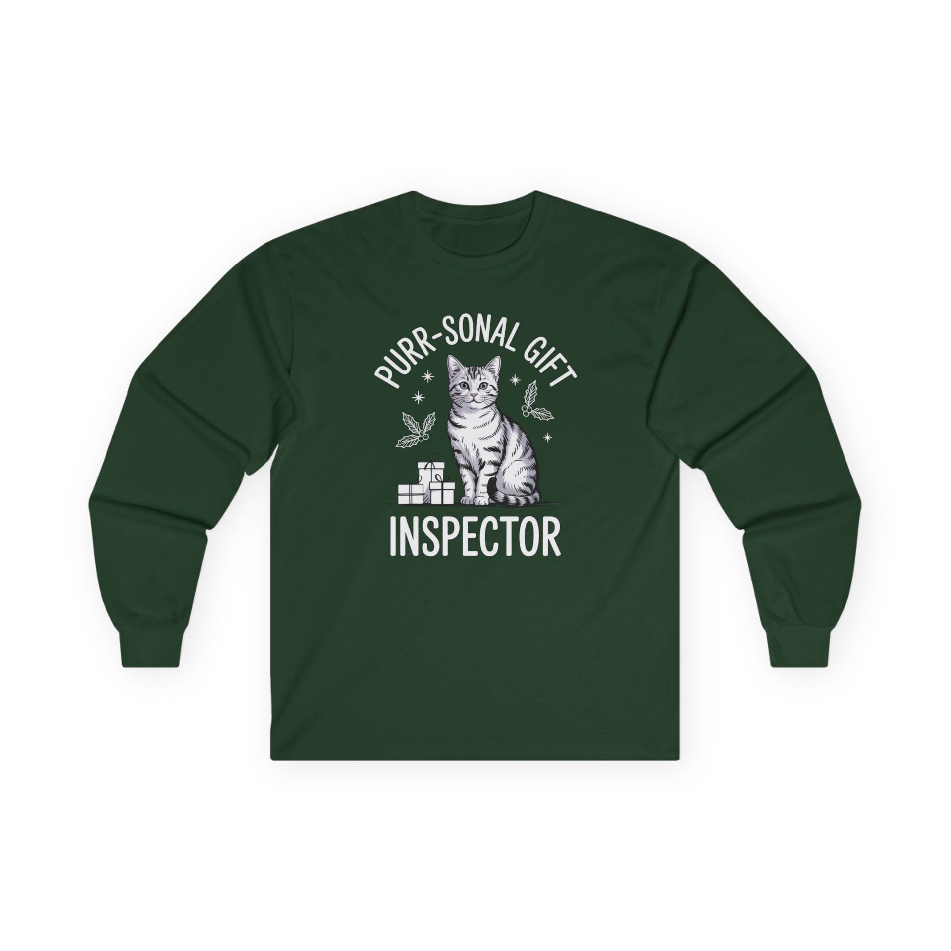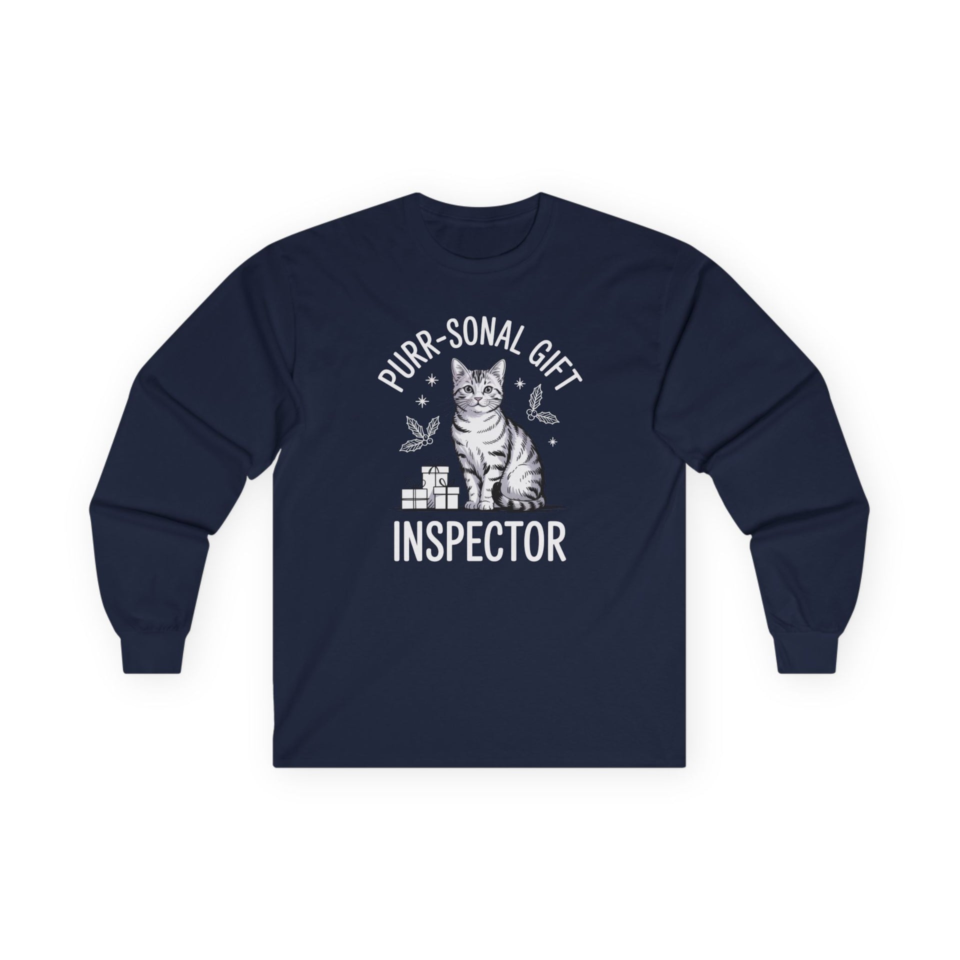 Purr-sonal Gift Inspector – Cute Christmas Cat Long Sleeve Tee