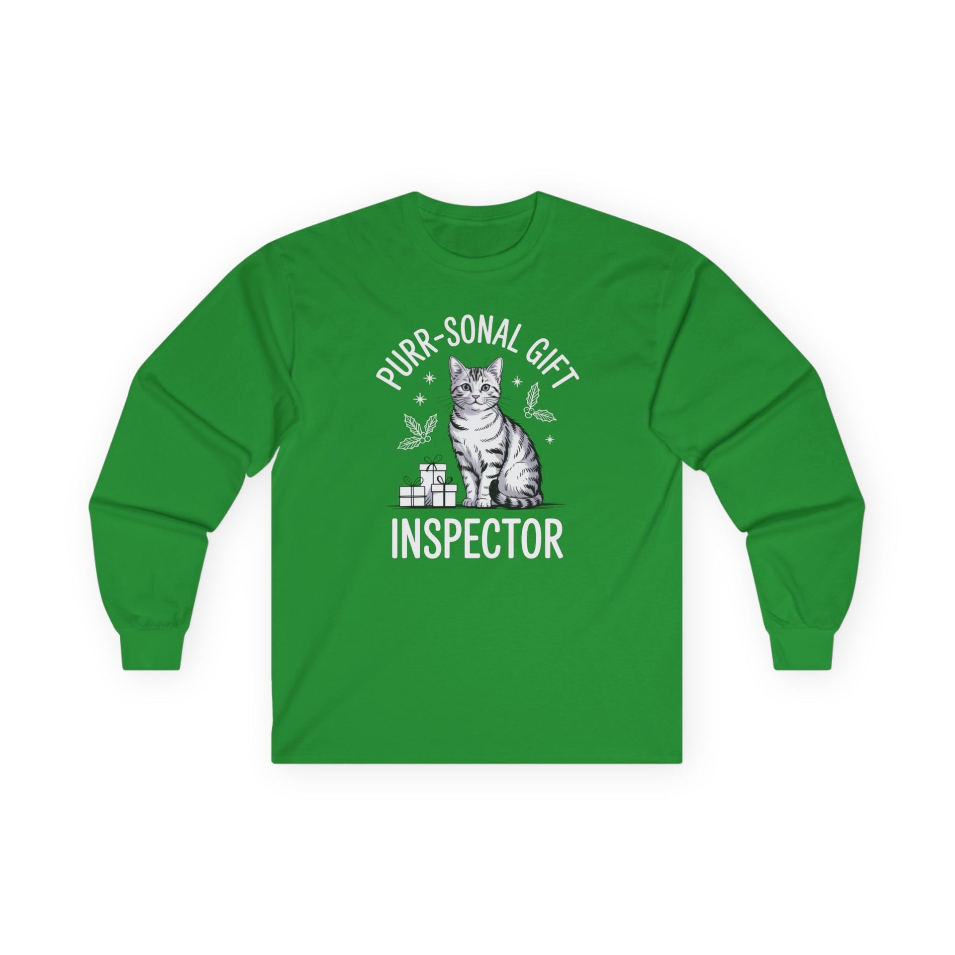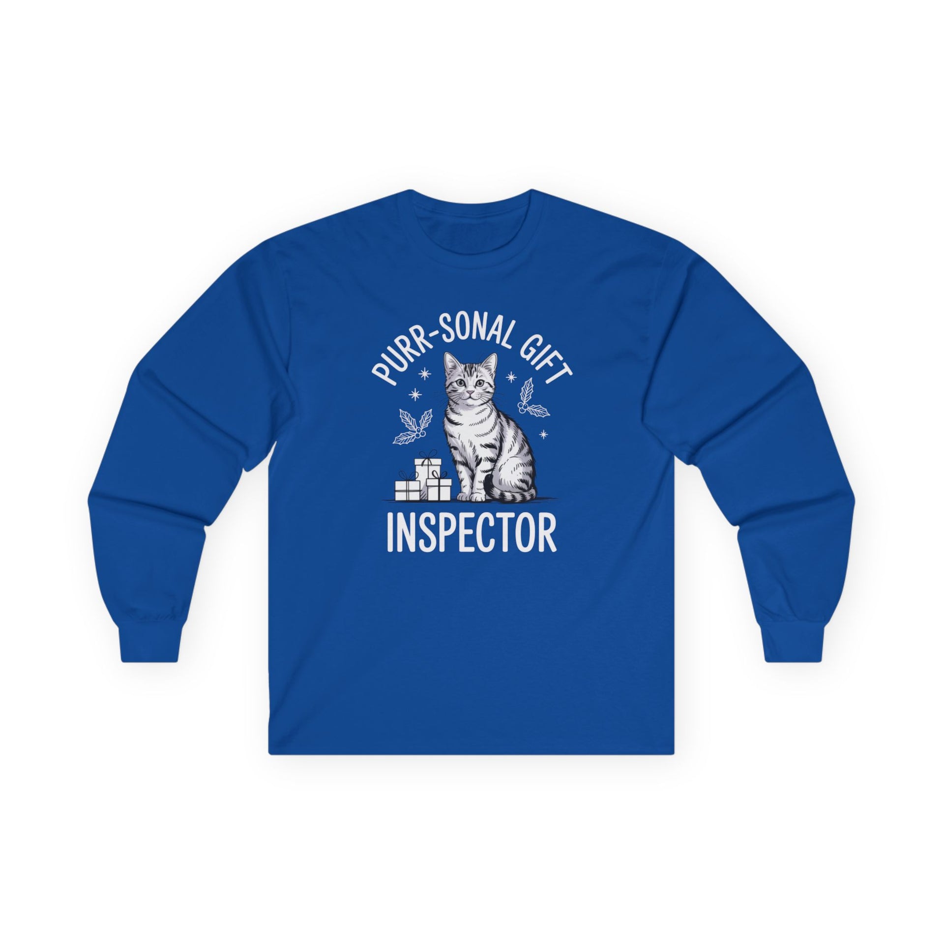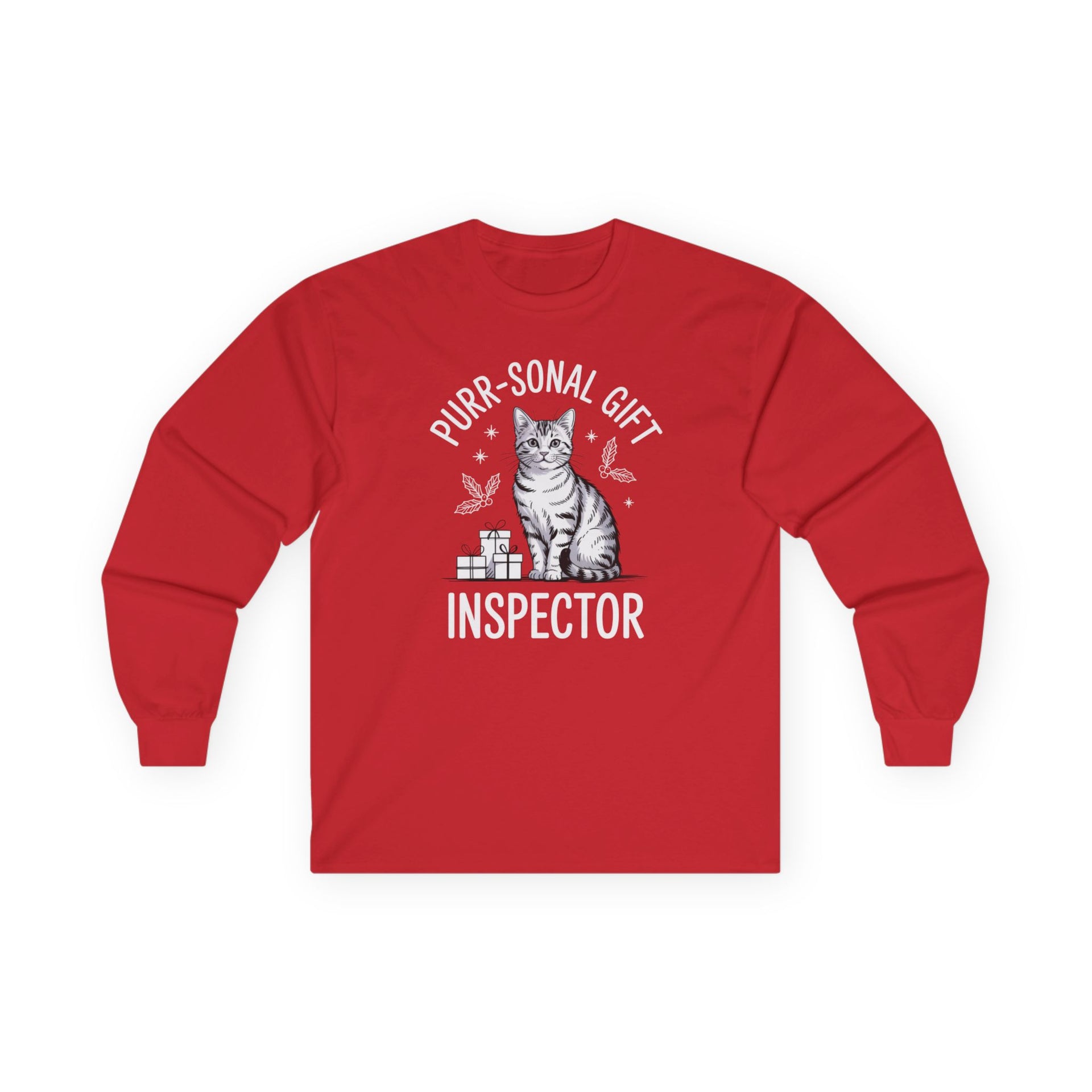 Purr-sonal Gift Inspector – Cute Christmas Cat Long Sleeve Tee