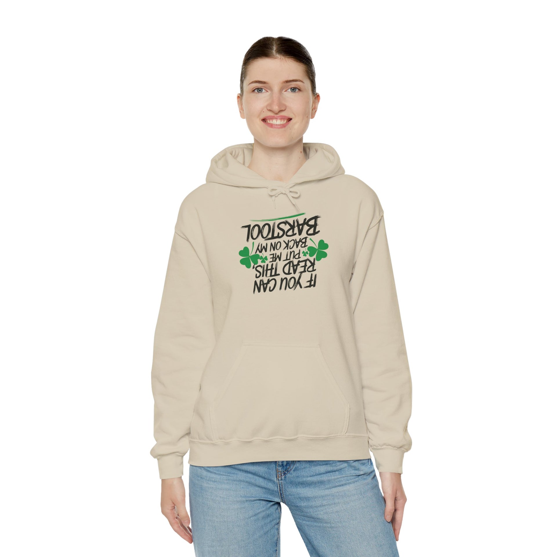 St. Patrick's Day Hoodie | If You Can Read This, Put Me Back on My Barstool | Funny Irish Drinking Pullover for Pub Crawls
