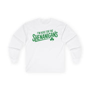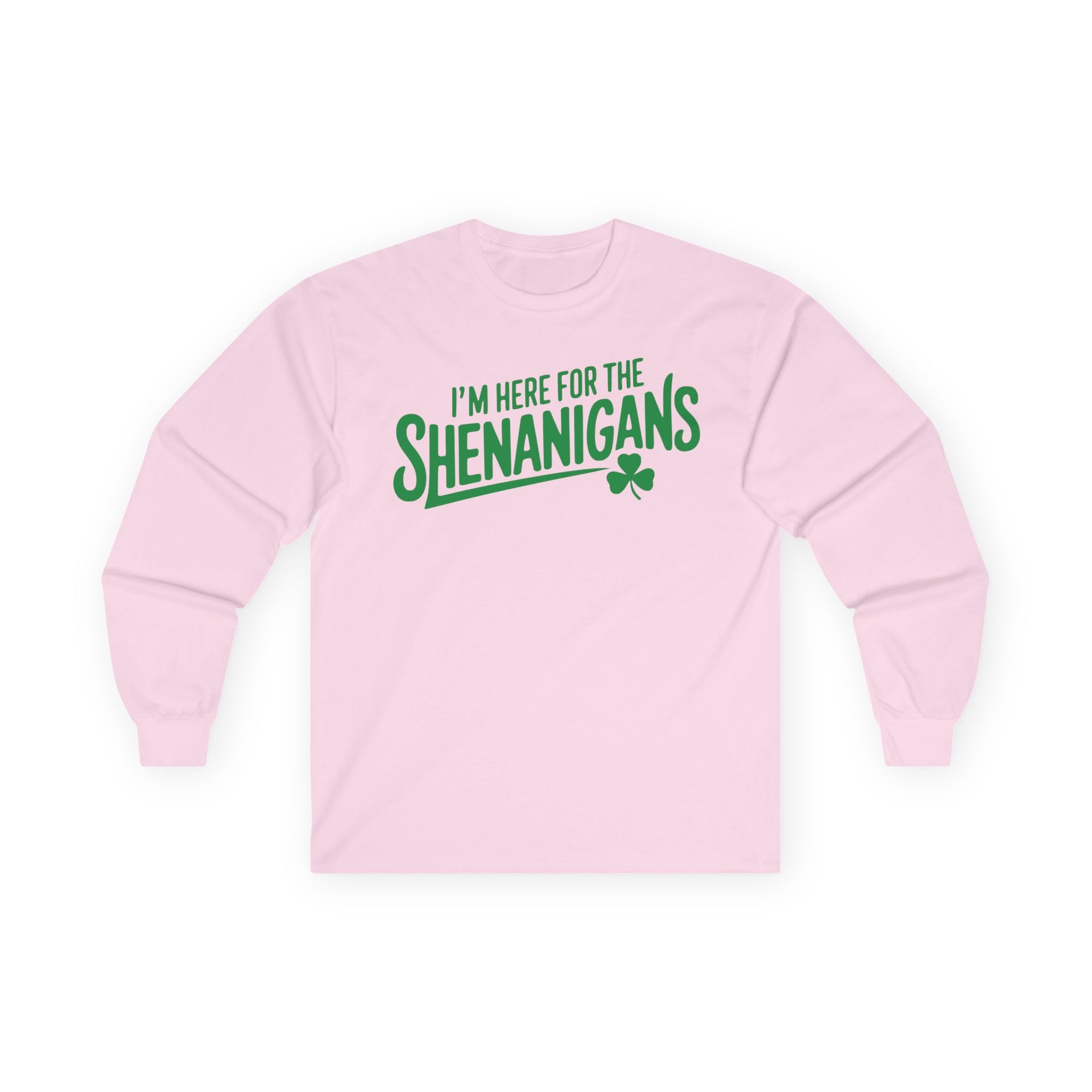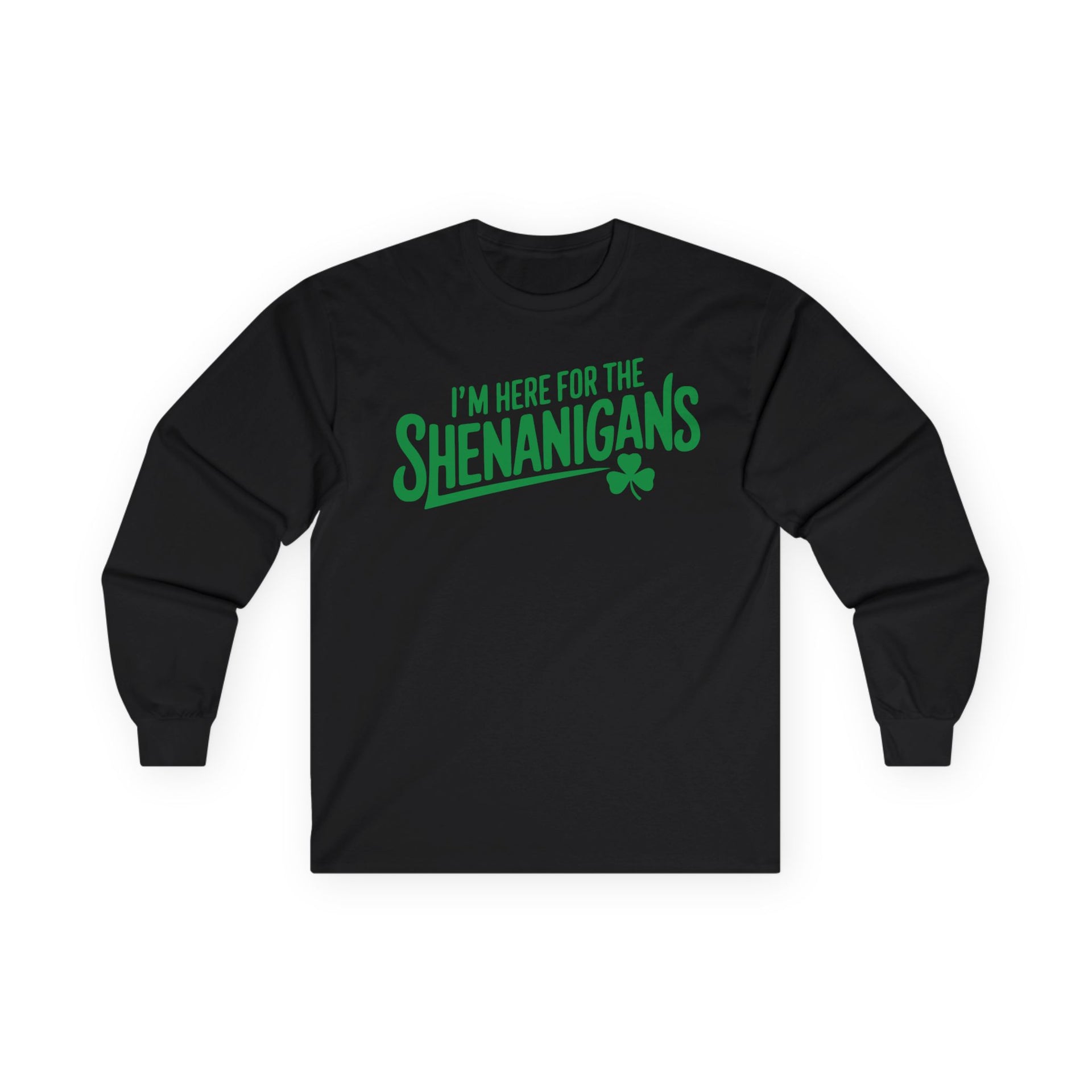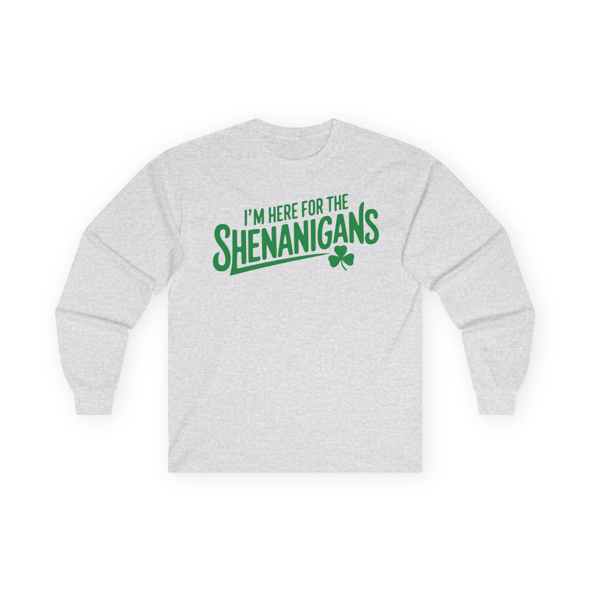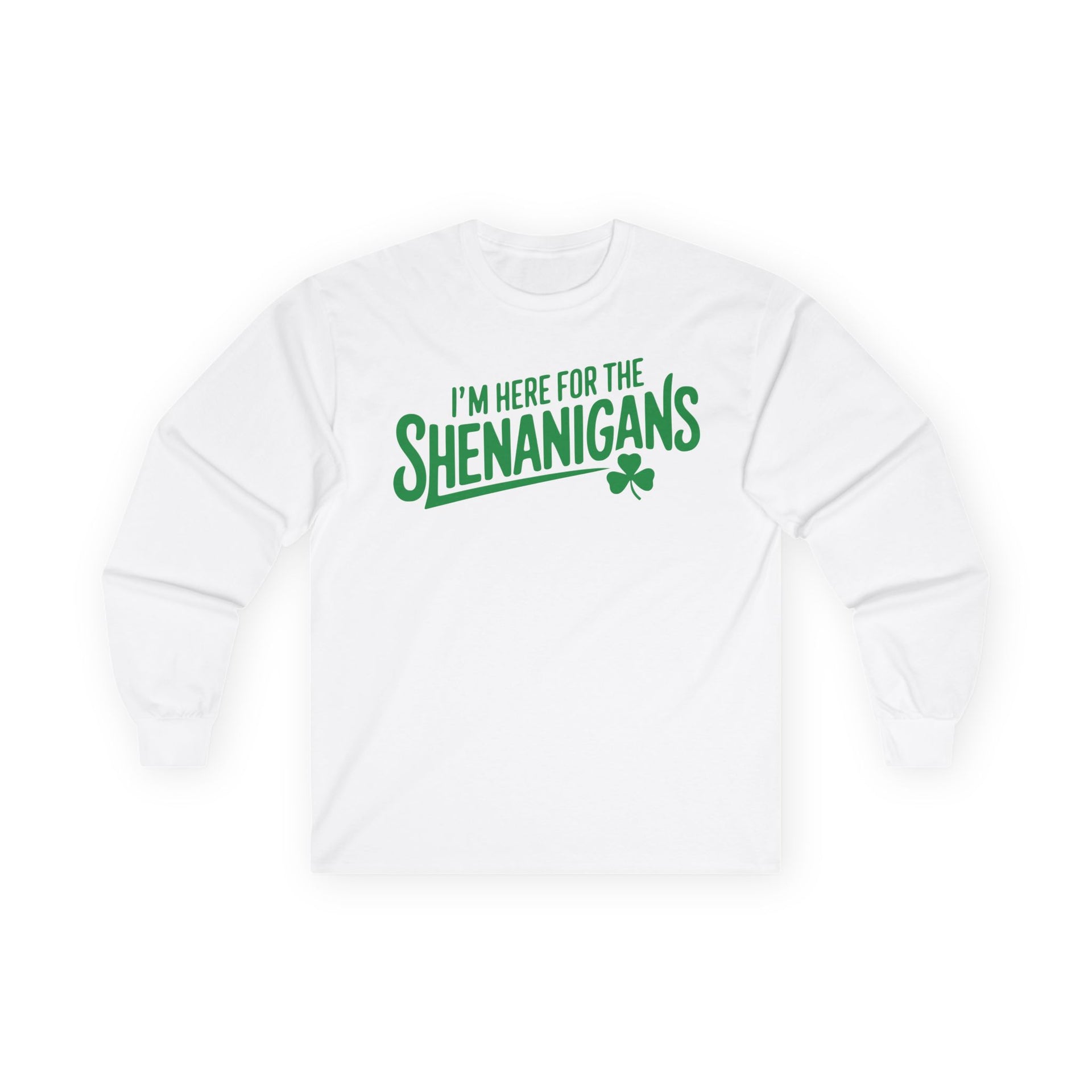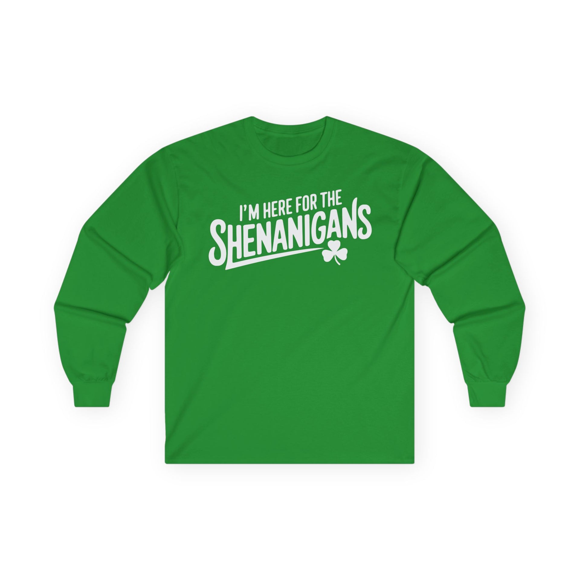 St. Patrick's Day Long Sleeve Shirt | I'm Here for the Shenanigans | Funny Irish Shamrock Tee | Festive St. Paddy’s Shirt
