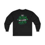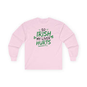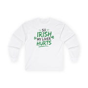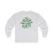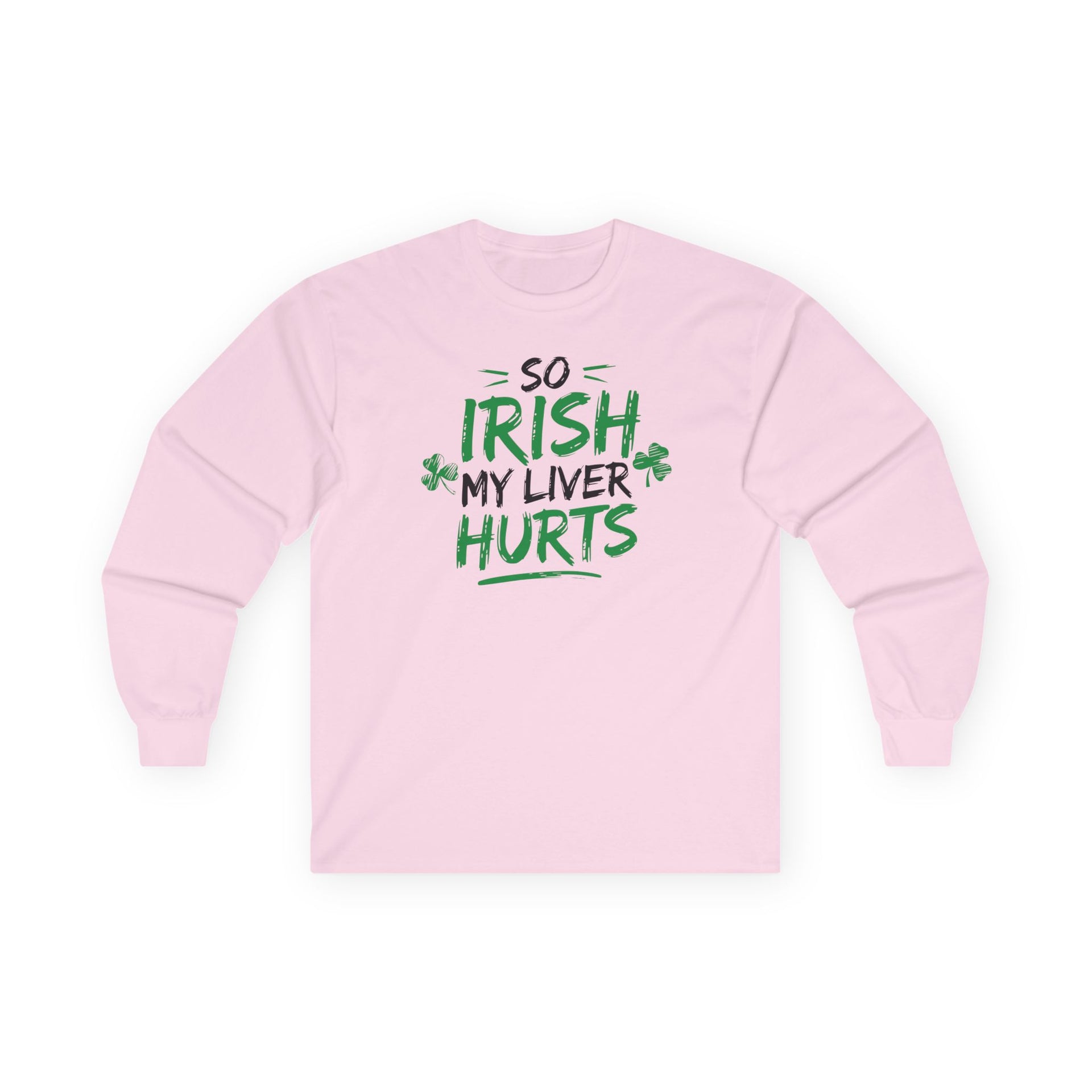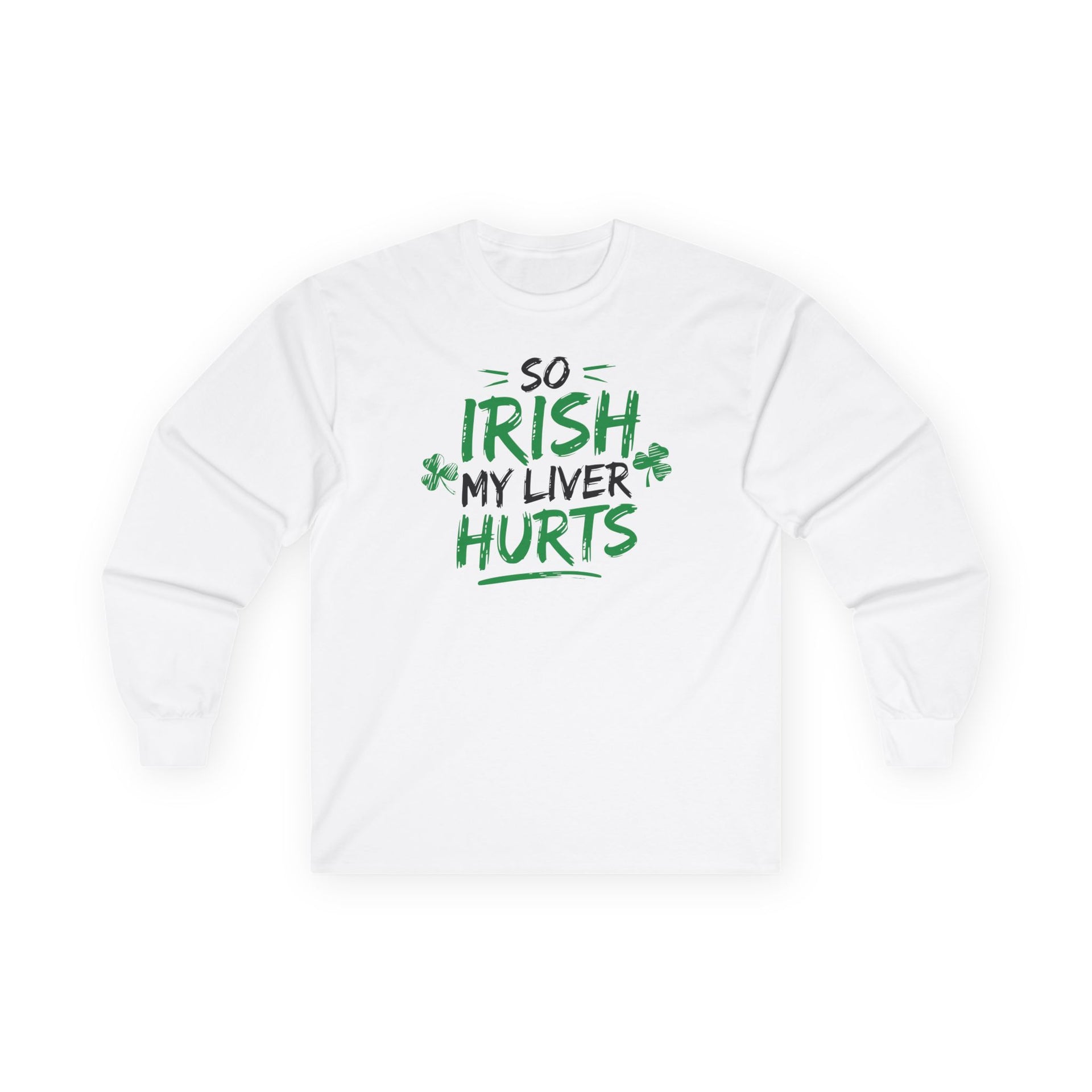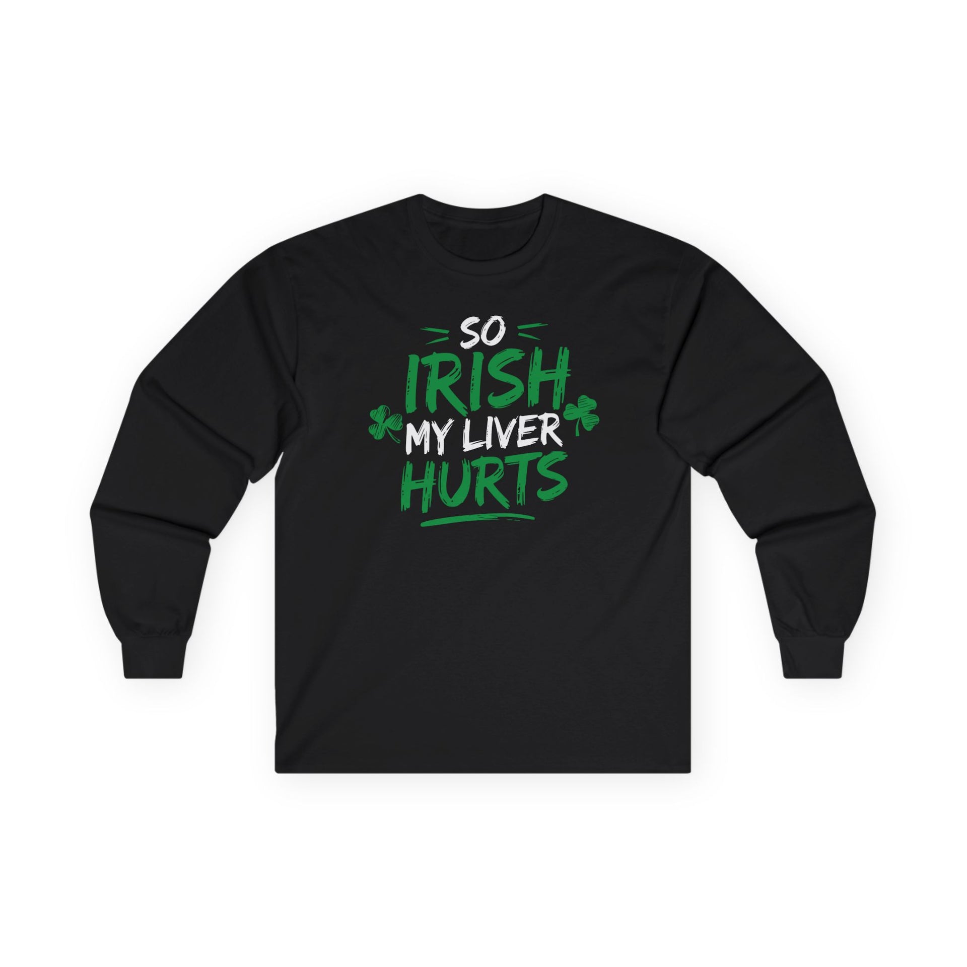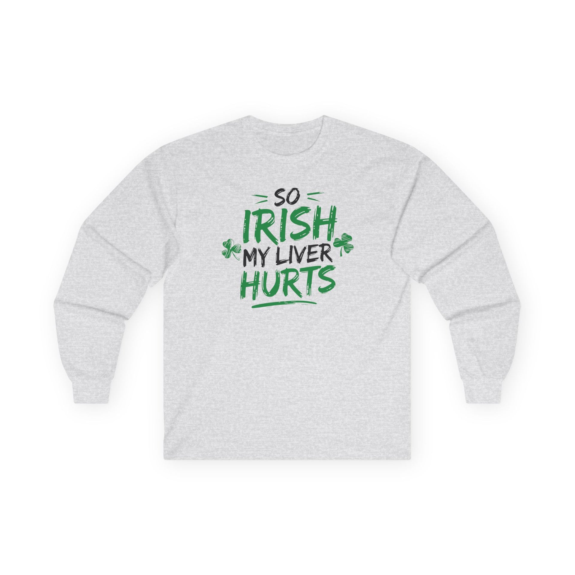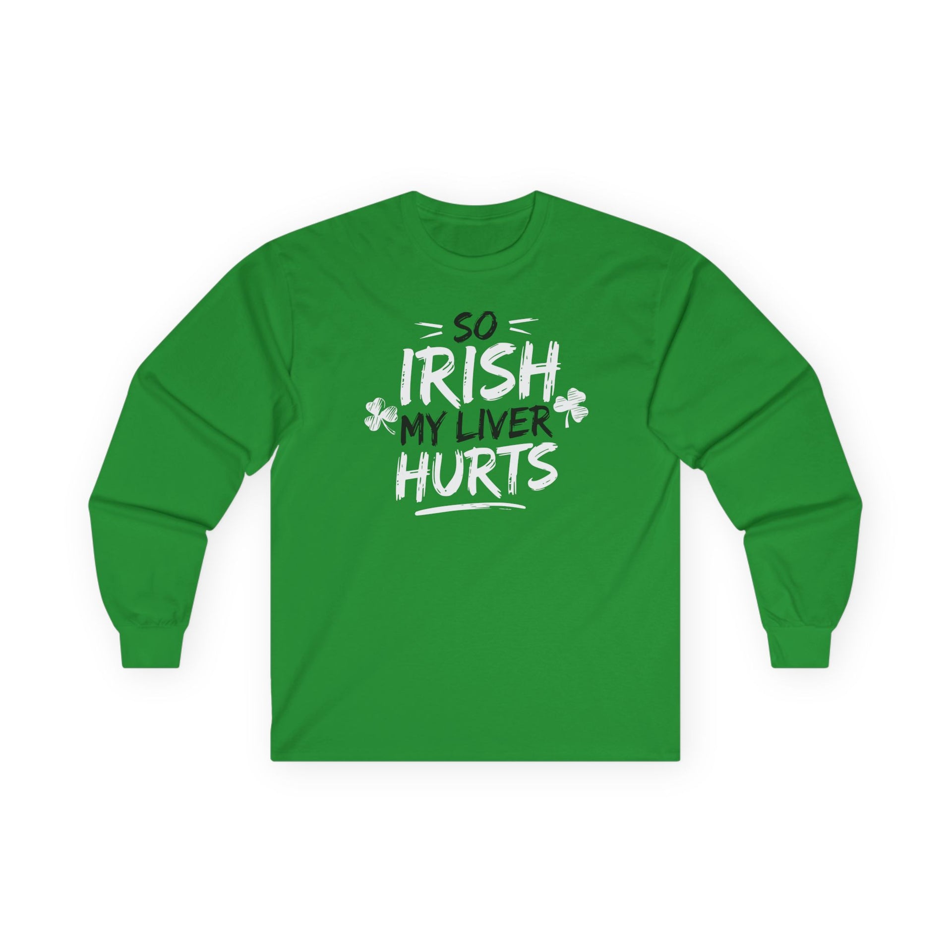 St. Patrick's Day Long Sleeve Shirt | So Irish My Liver Hurts | Funny Irish Drinking Tee | Festive St. Paddy’s Shirt