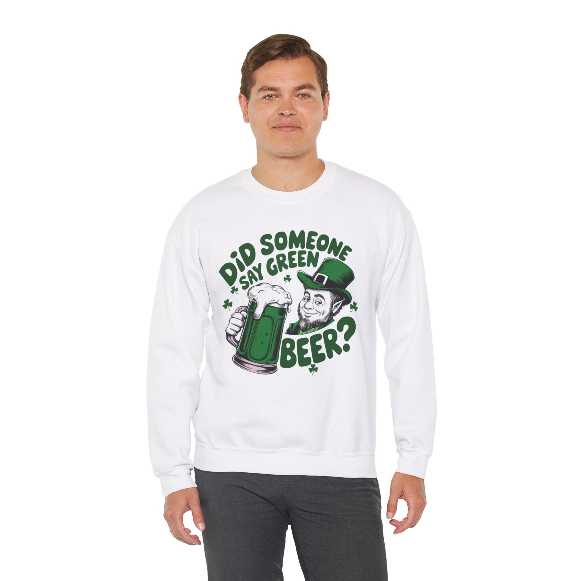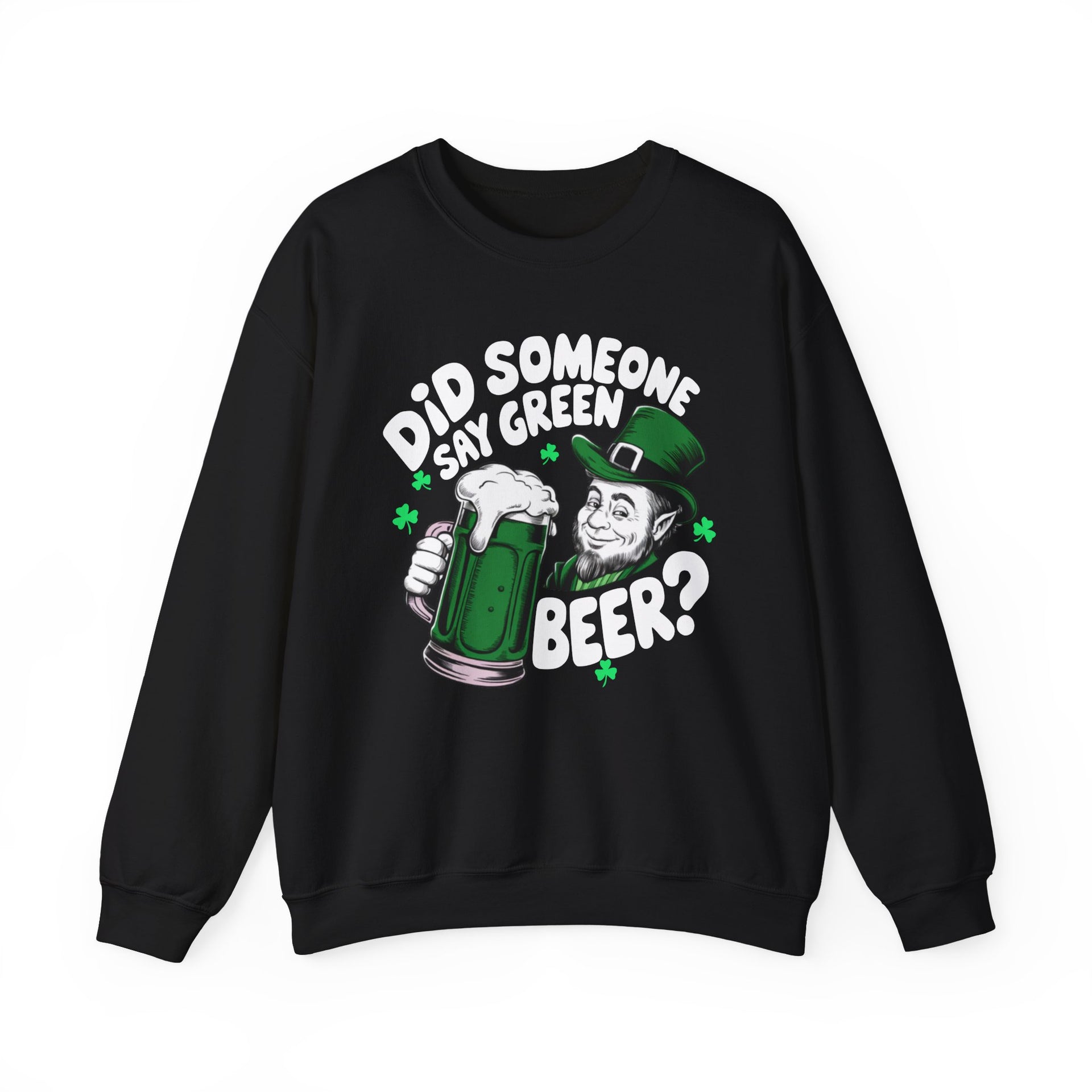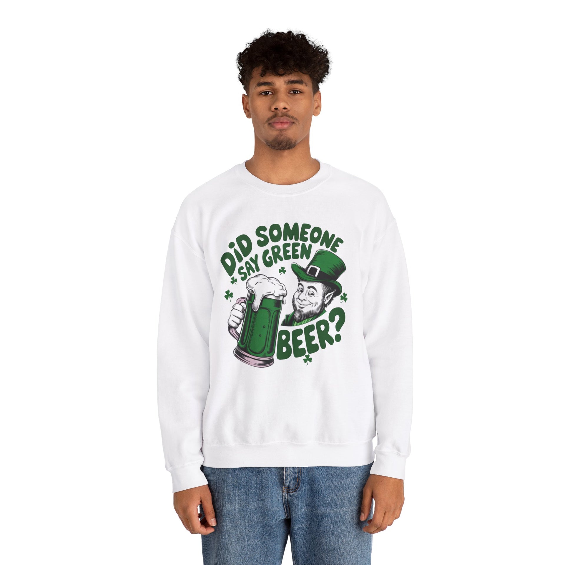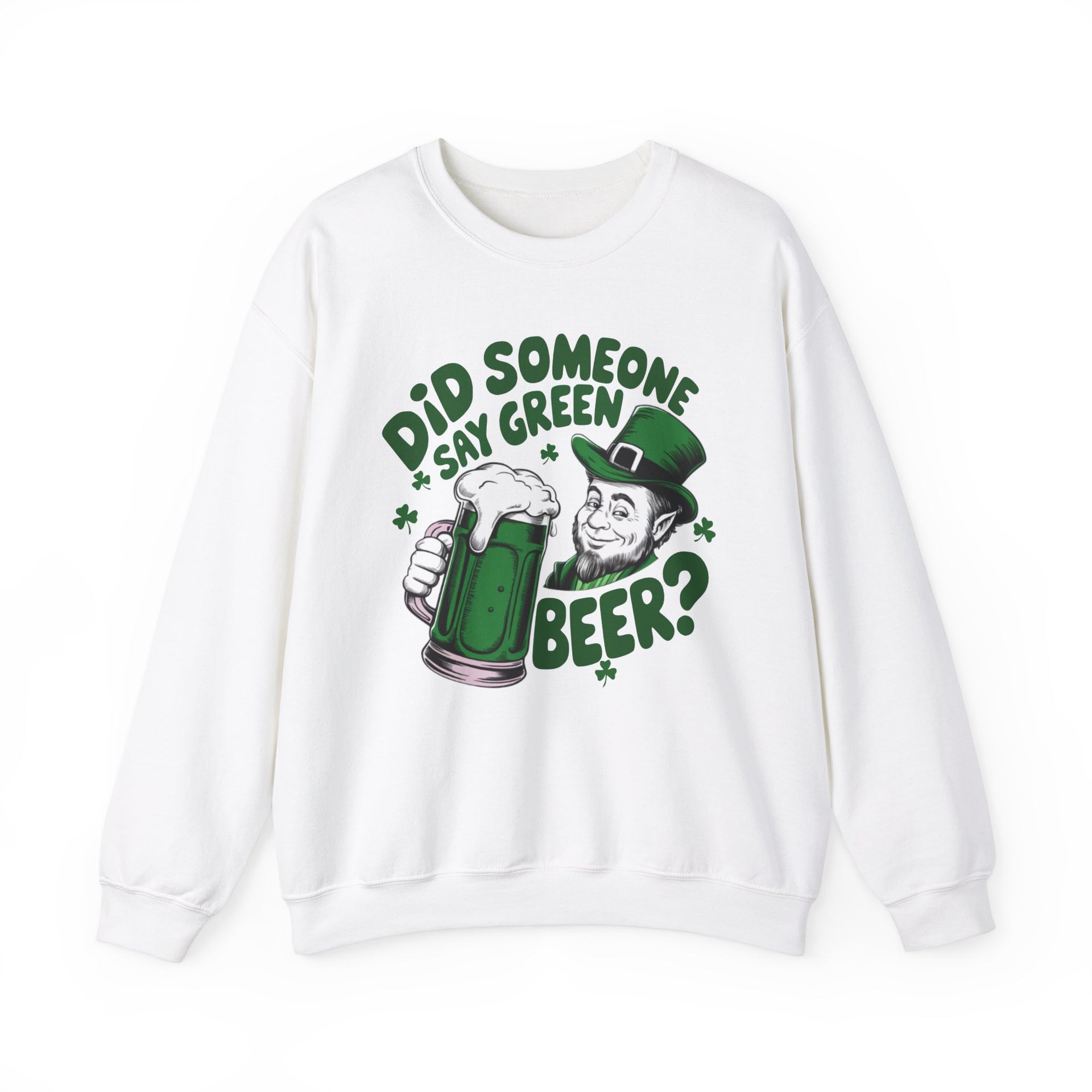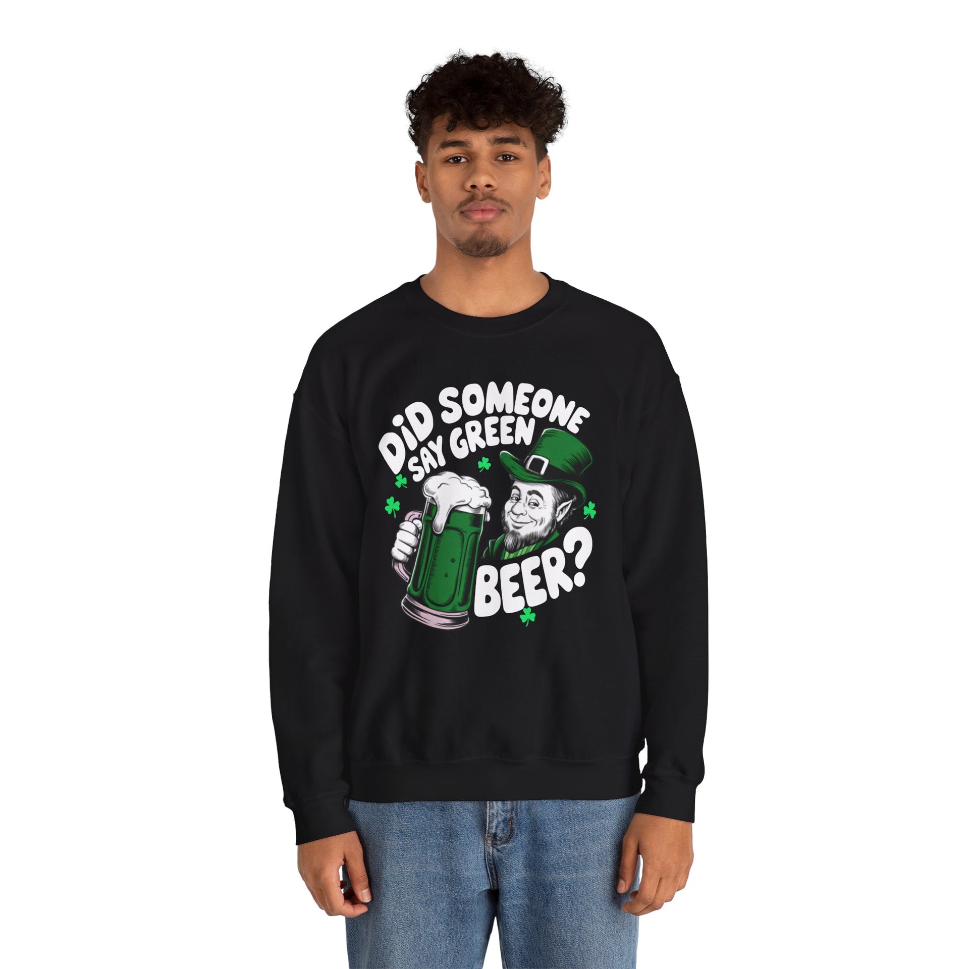 St. Patrick's Day Sweatshirt | Did Someone Say Green Beer? | Funny Irish Shamrock Beer Lover Crewneck Pullover
