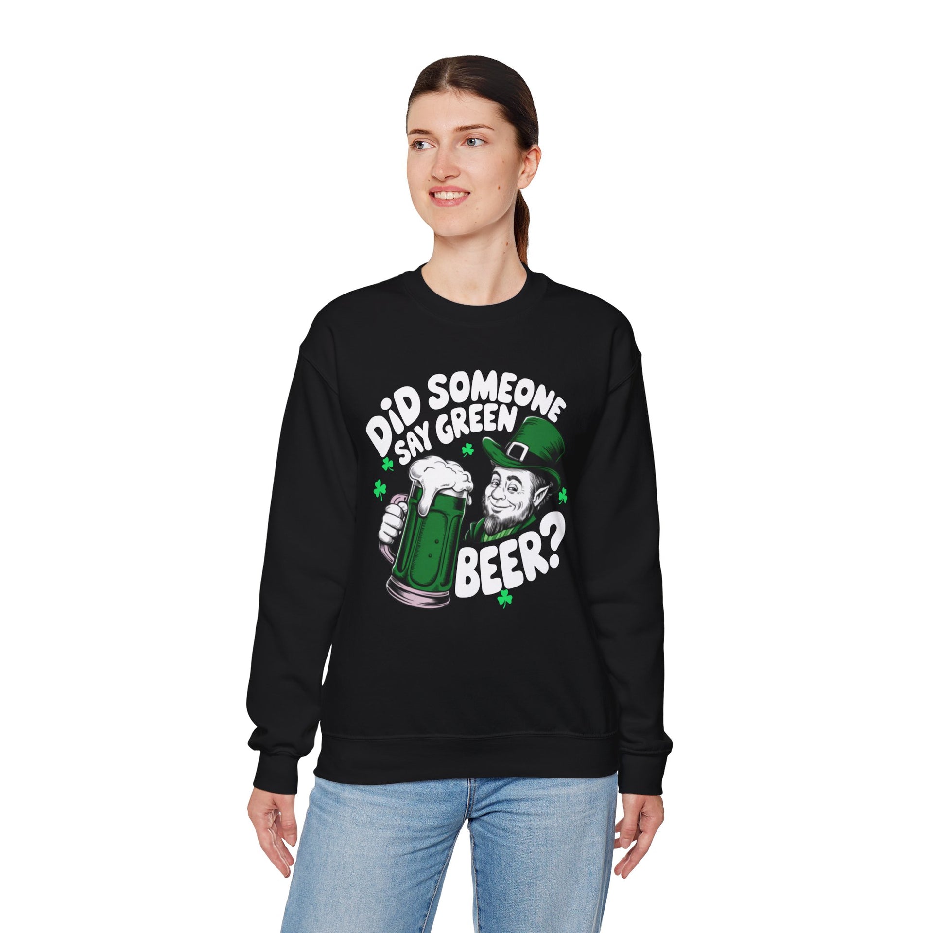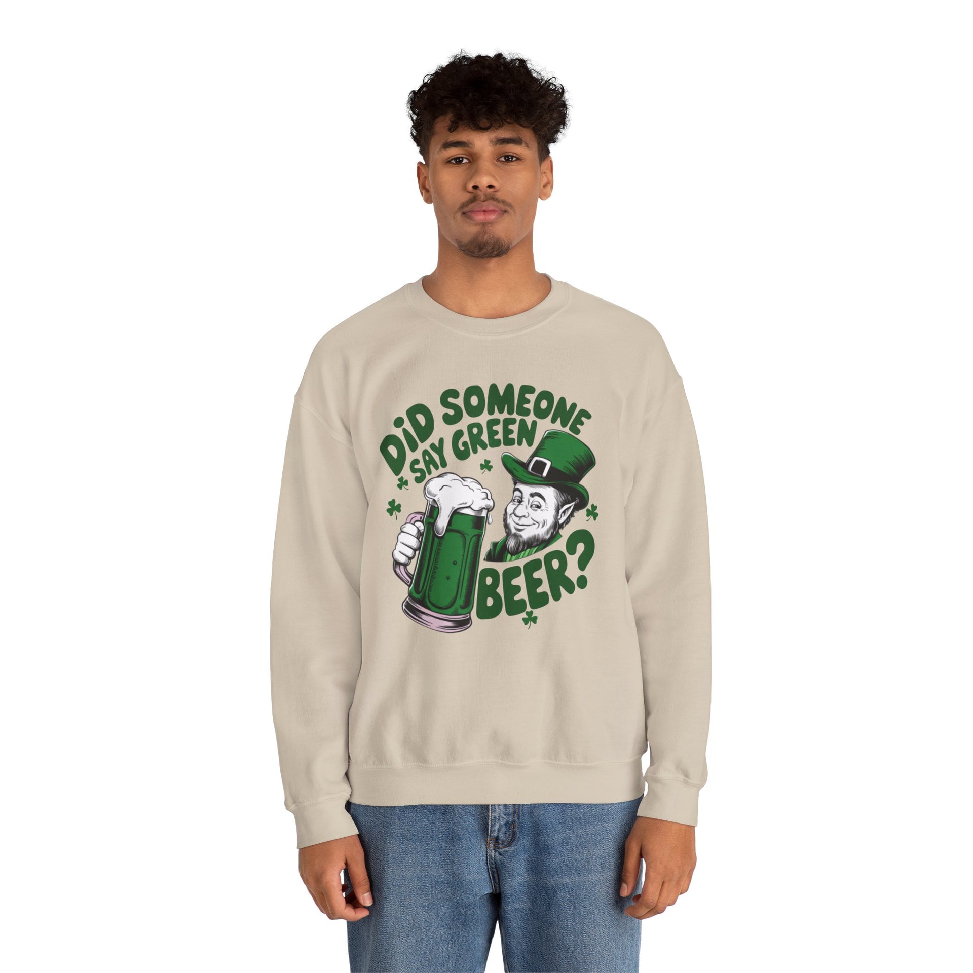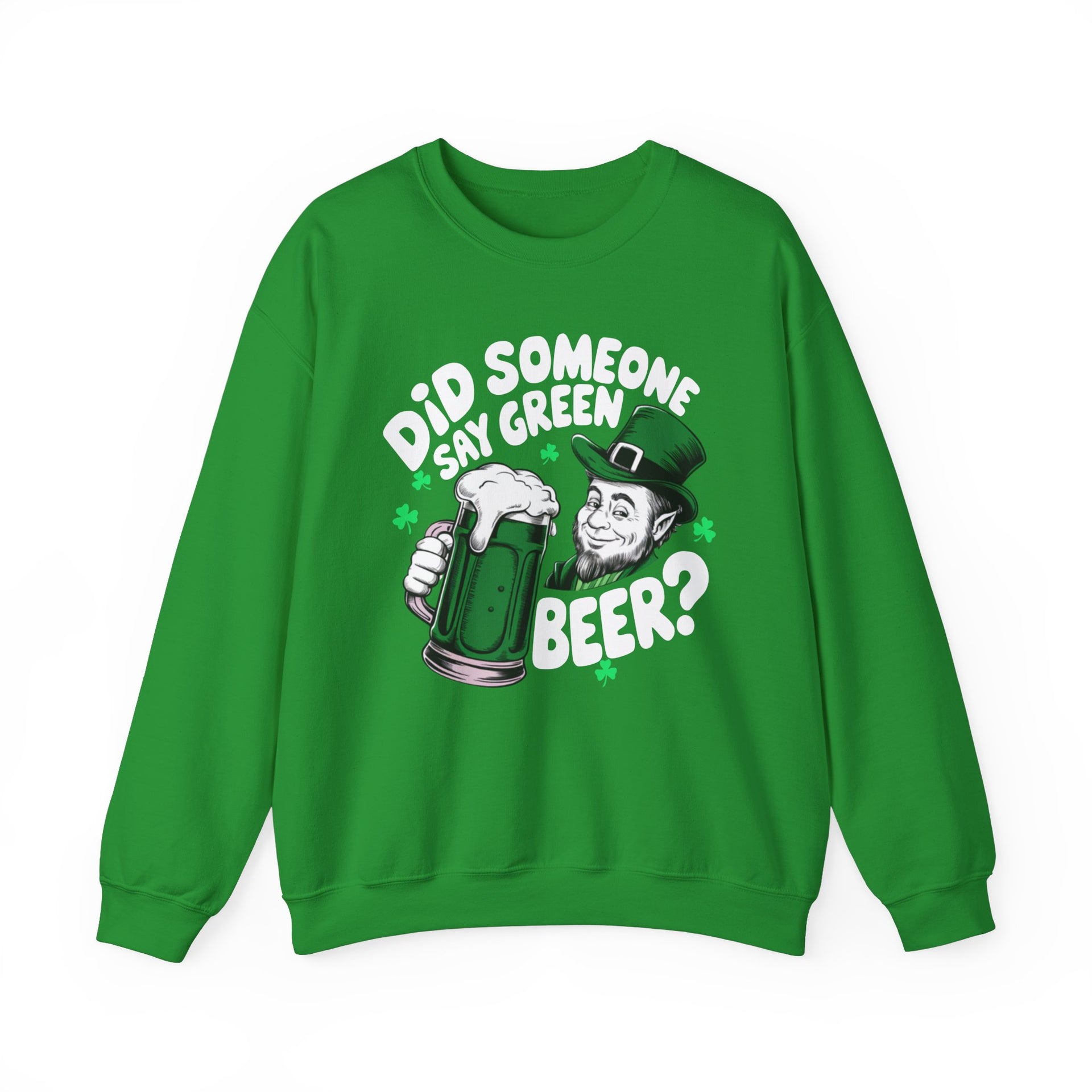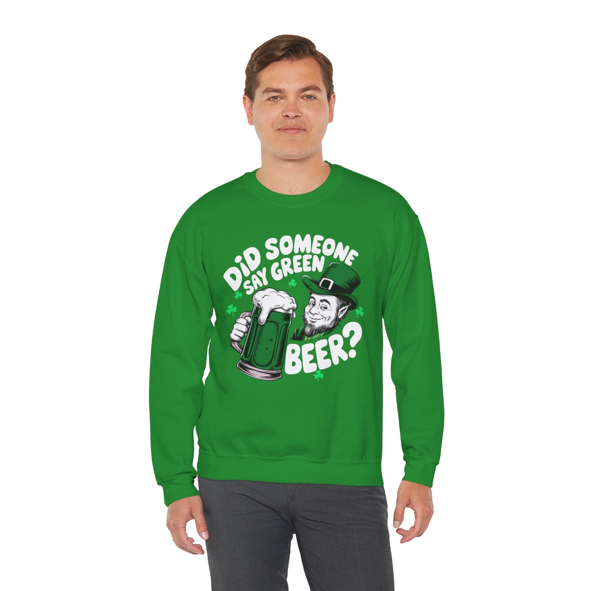 St. Patrick's Day Sweatshirt | Did Someone Say Green Beer? | Funny Irish Shamrock Beer Lover Crewneck Pullover