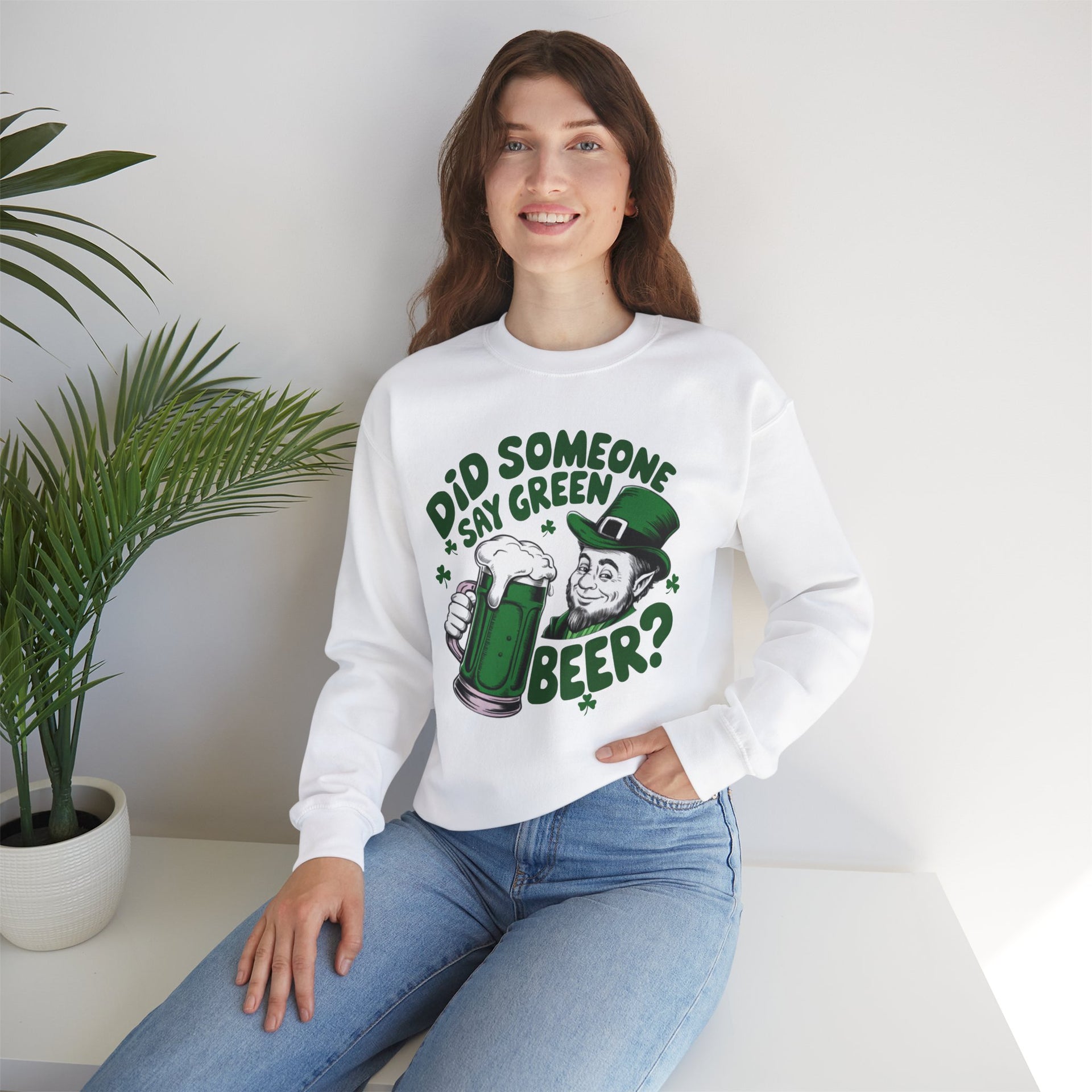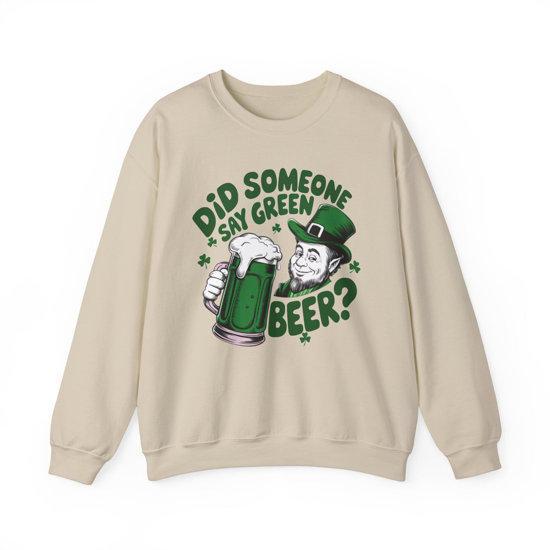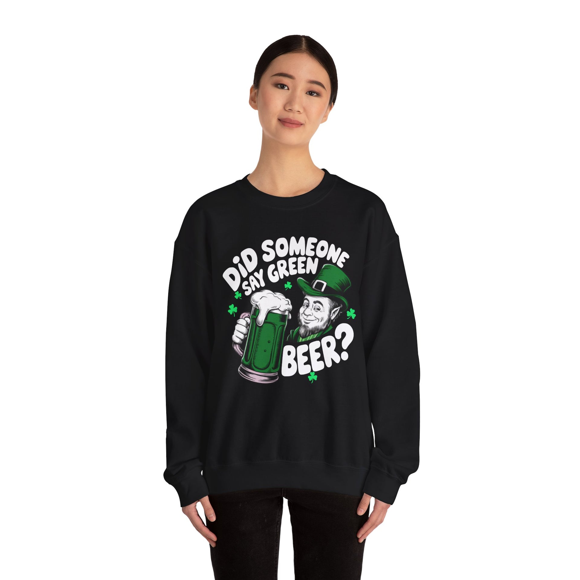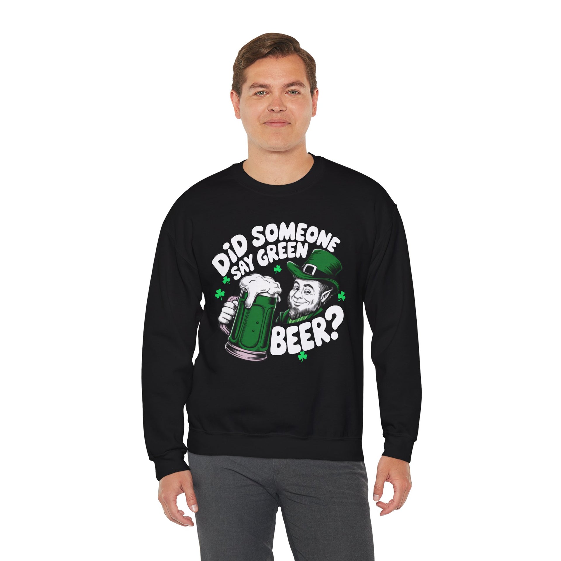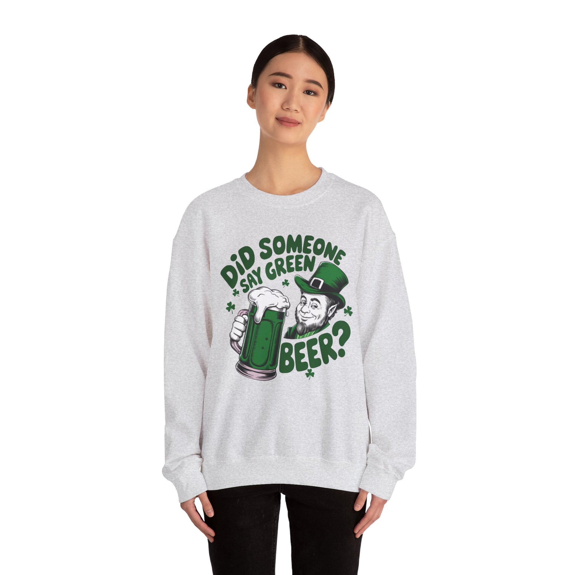 St. Patrick's Day Sweatshirt | Did Someone Say Green Beer? | Funny Irish Shamrock Beer Lover Crewneck Pullover
