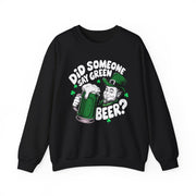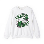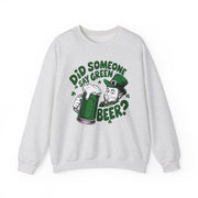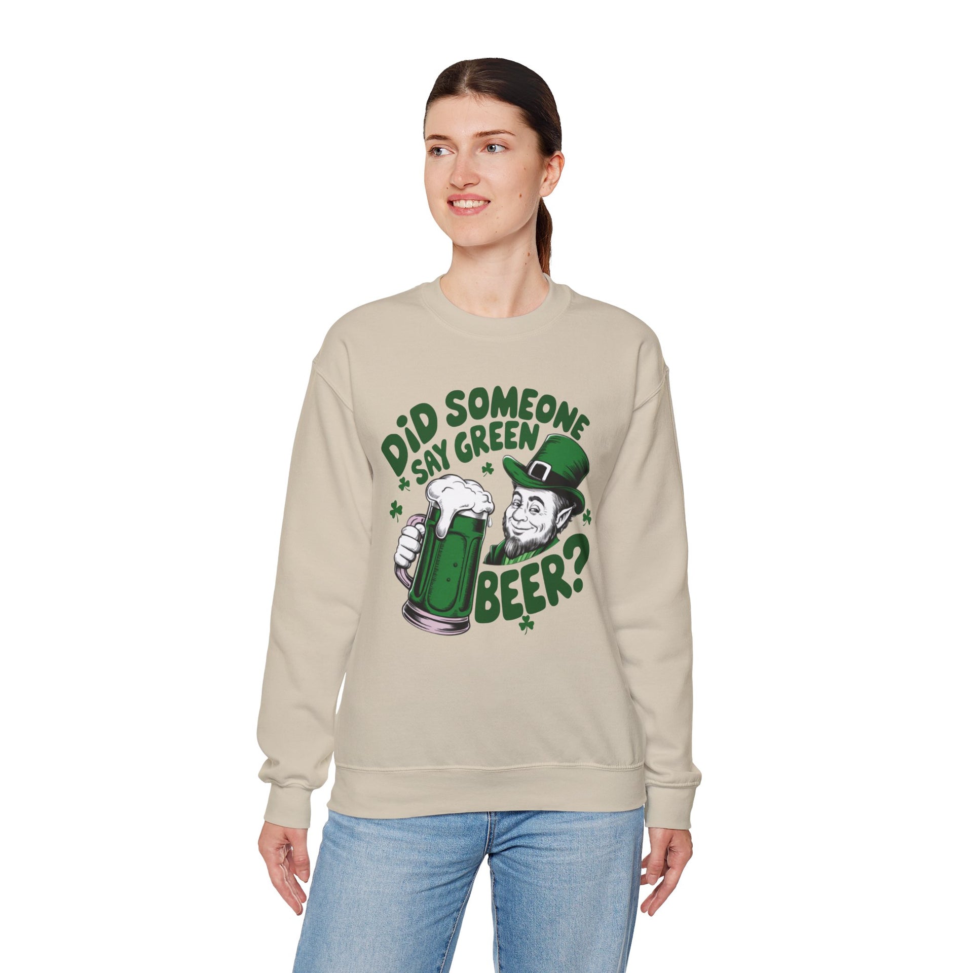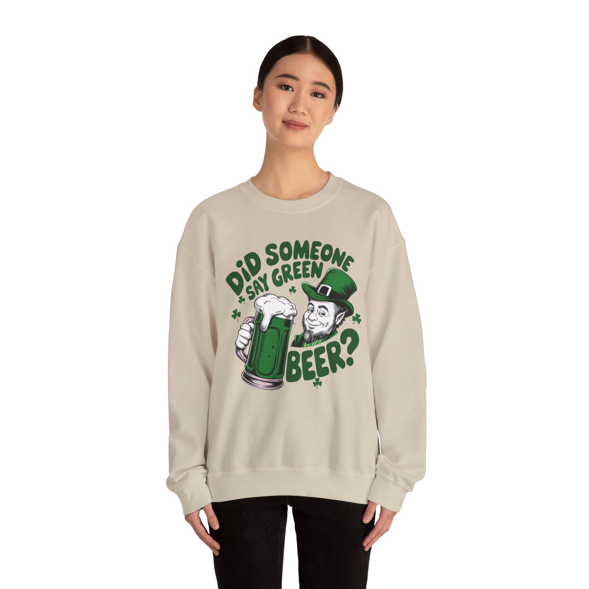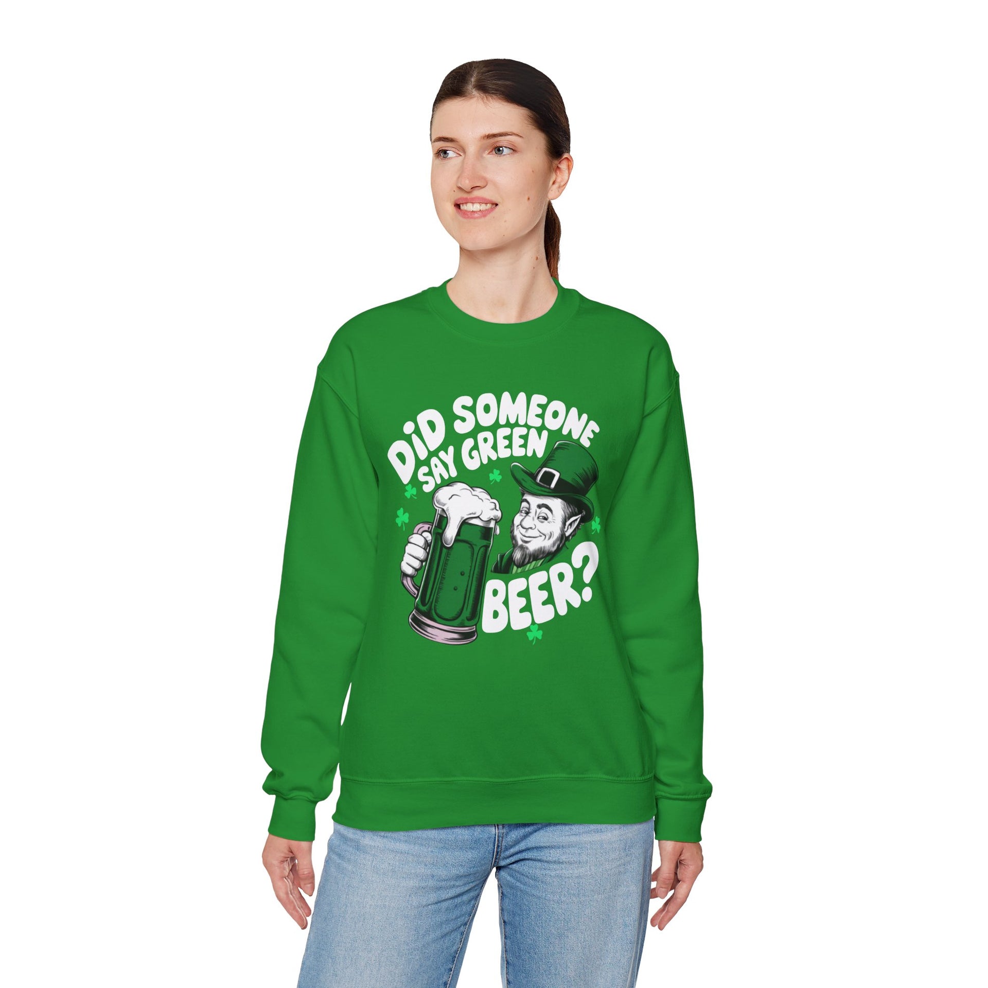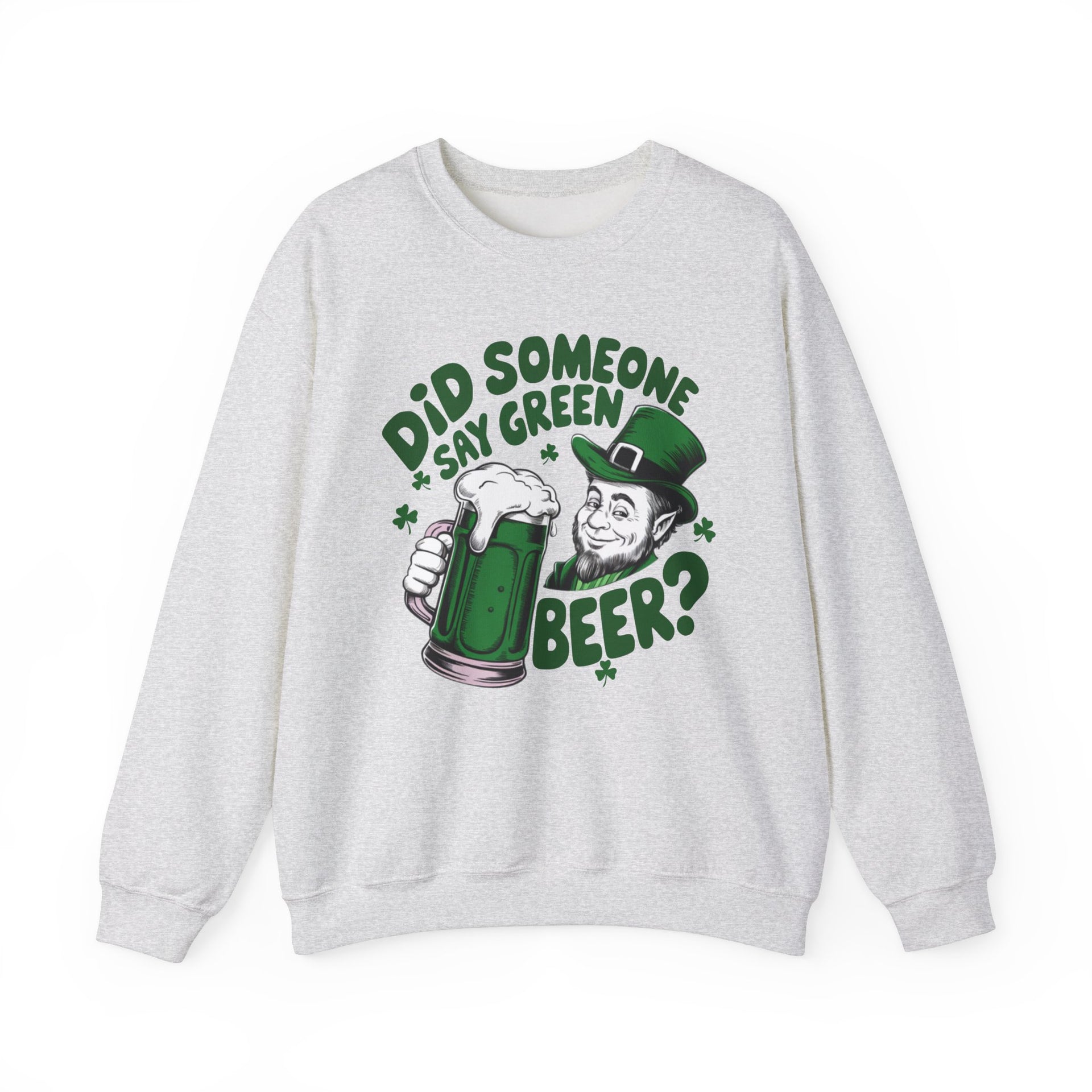 St. Patrick's Day Sweatshirt | Did Someone Say Green Beer? | Funny Irish Shamrock Beer Lover Crewneck Pullover