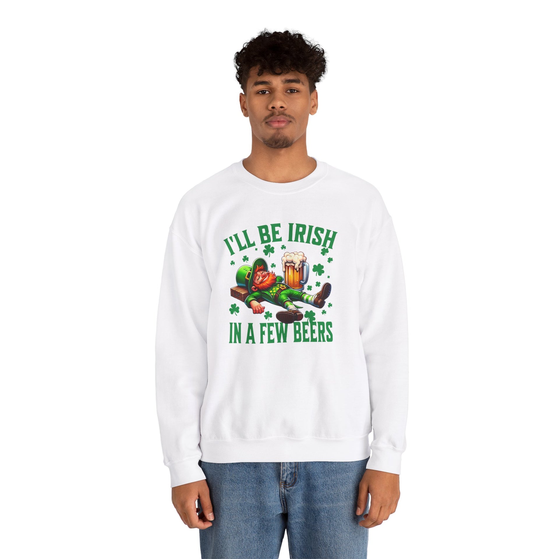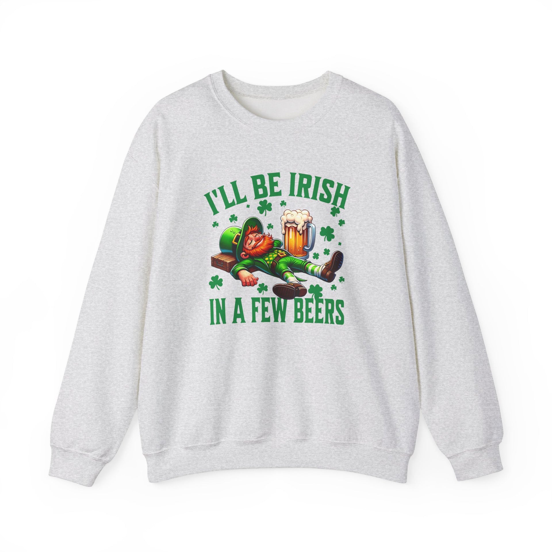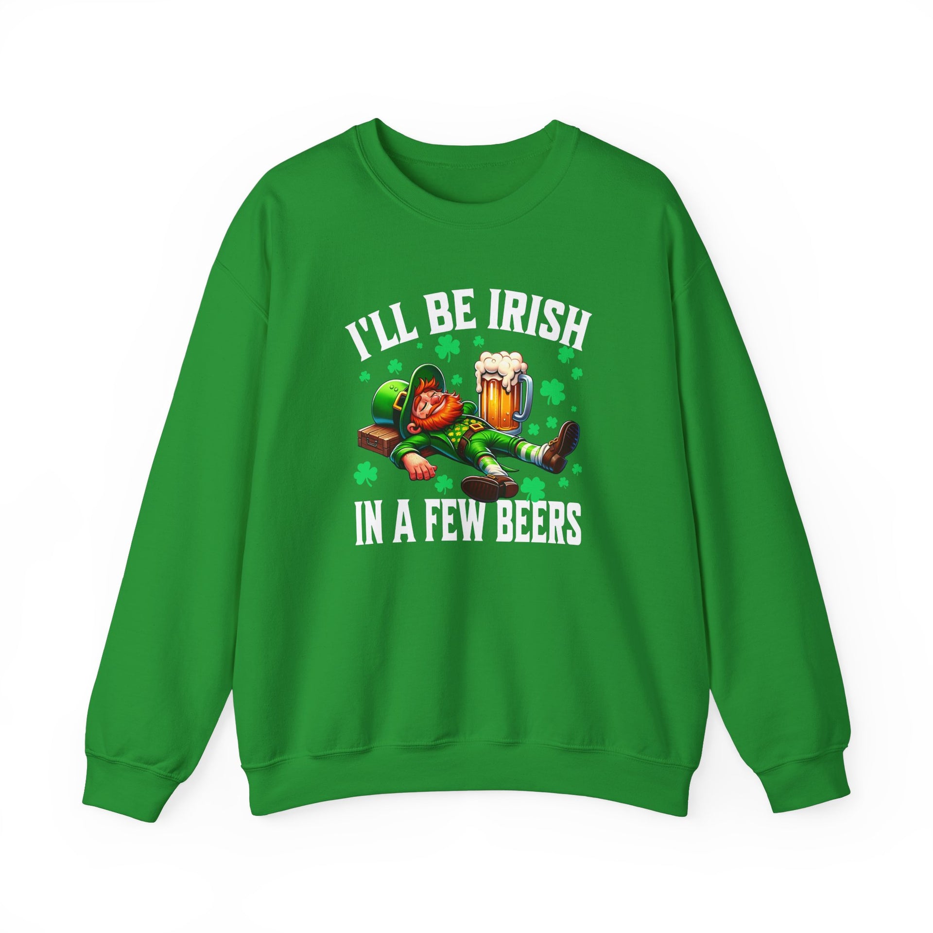 St. Patrick's Day Sweatshirt | I'll Be Irish in a Few Beers | Funny Irish Drinking Shirt | Shamrock Beer Lover Pub Crawls