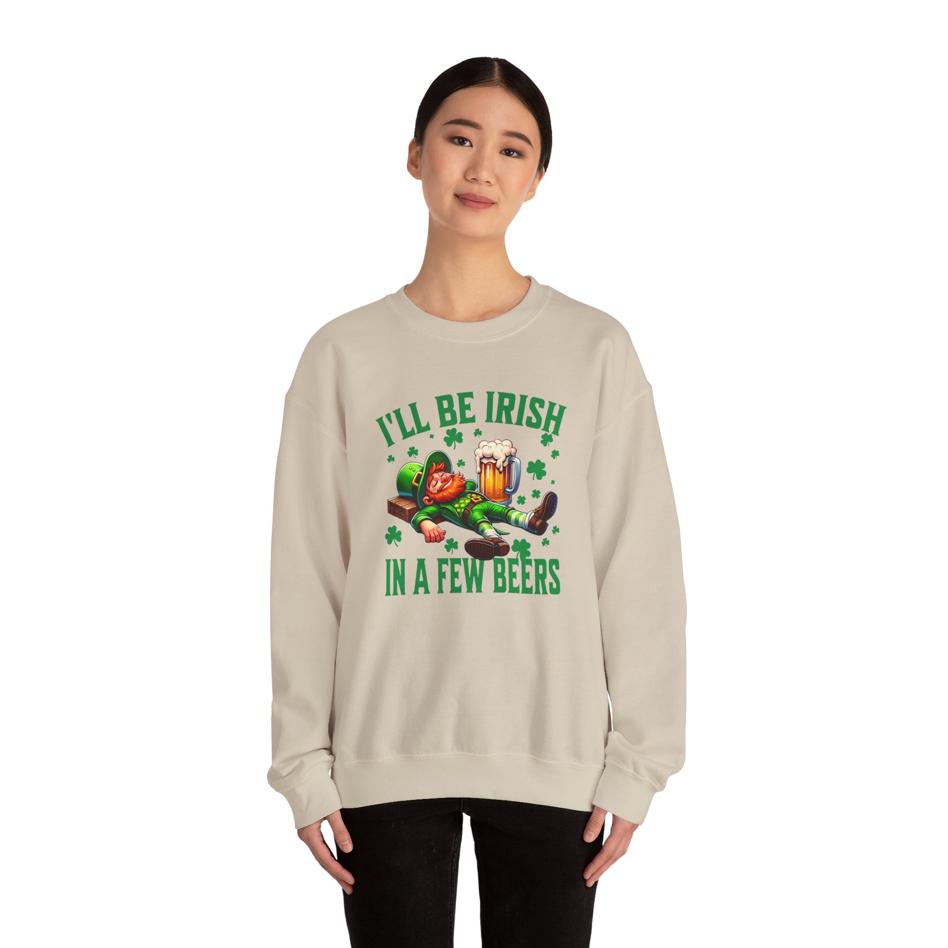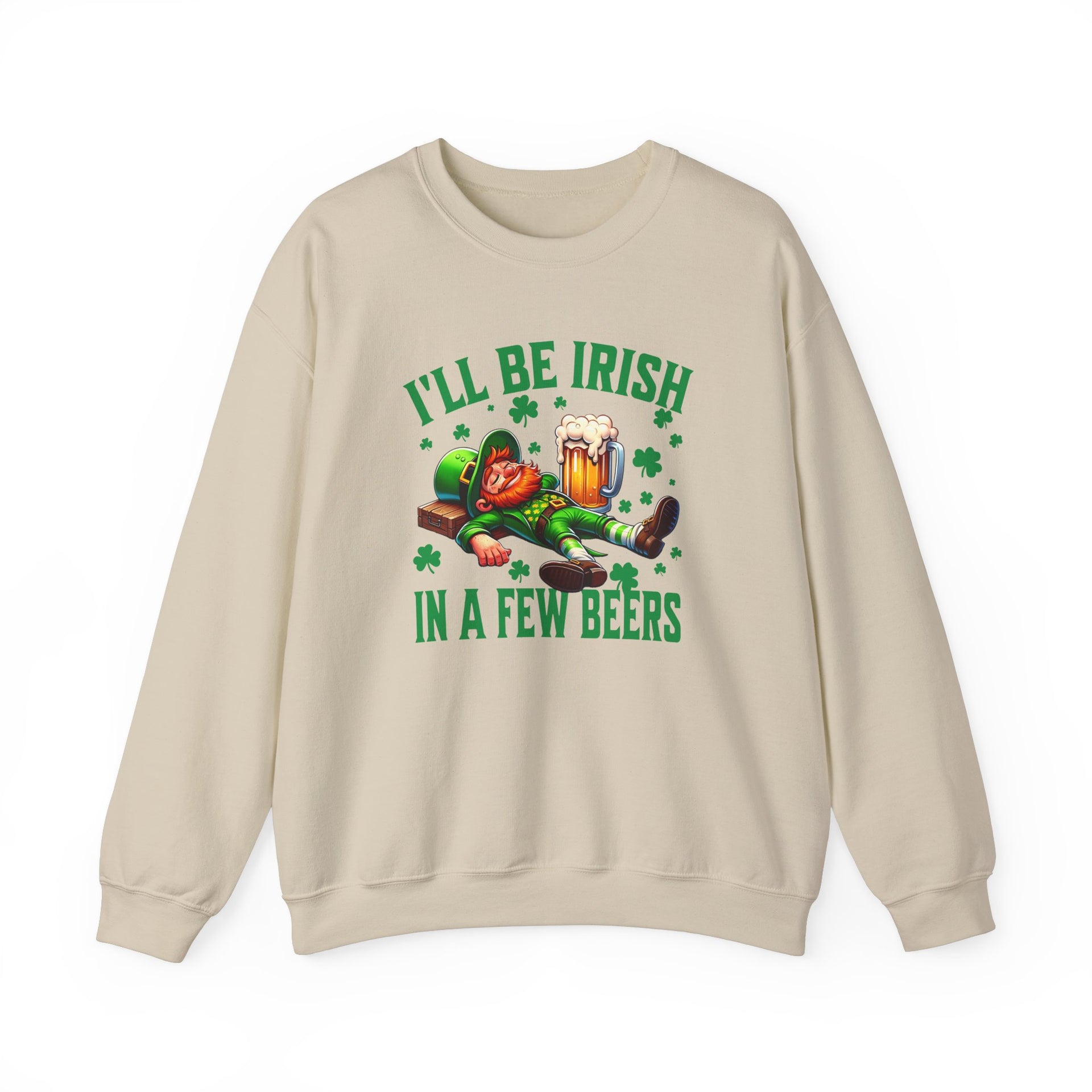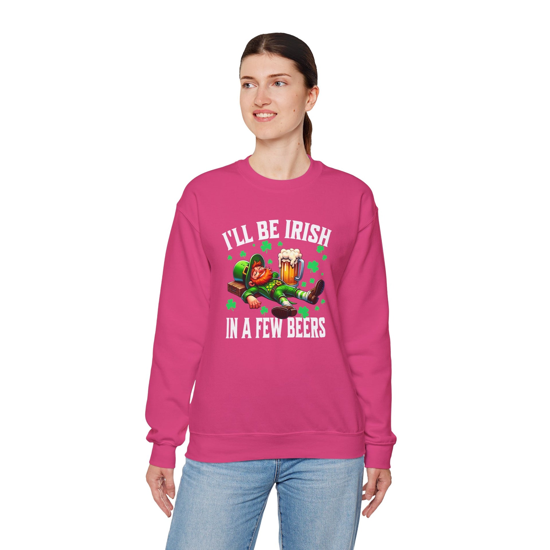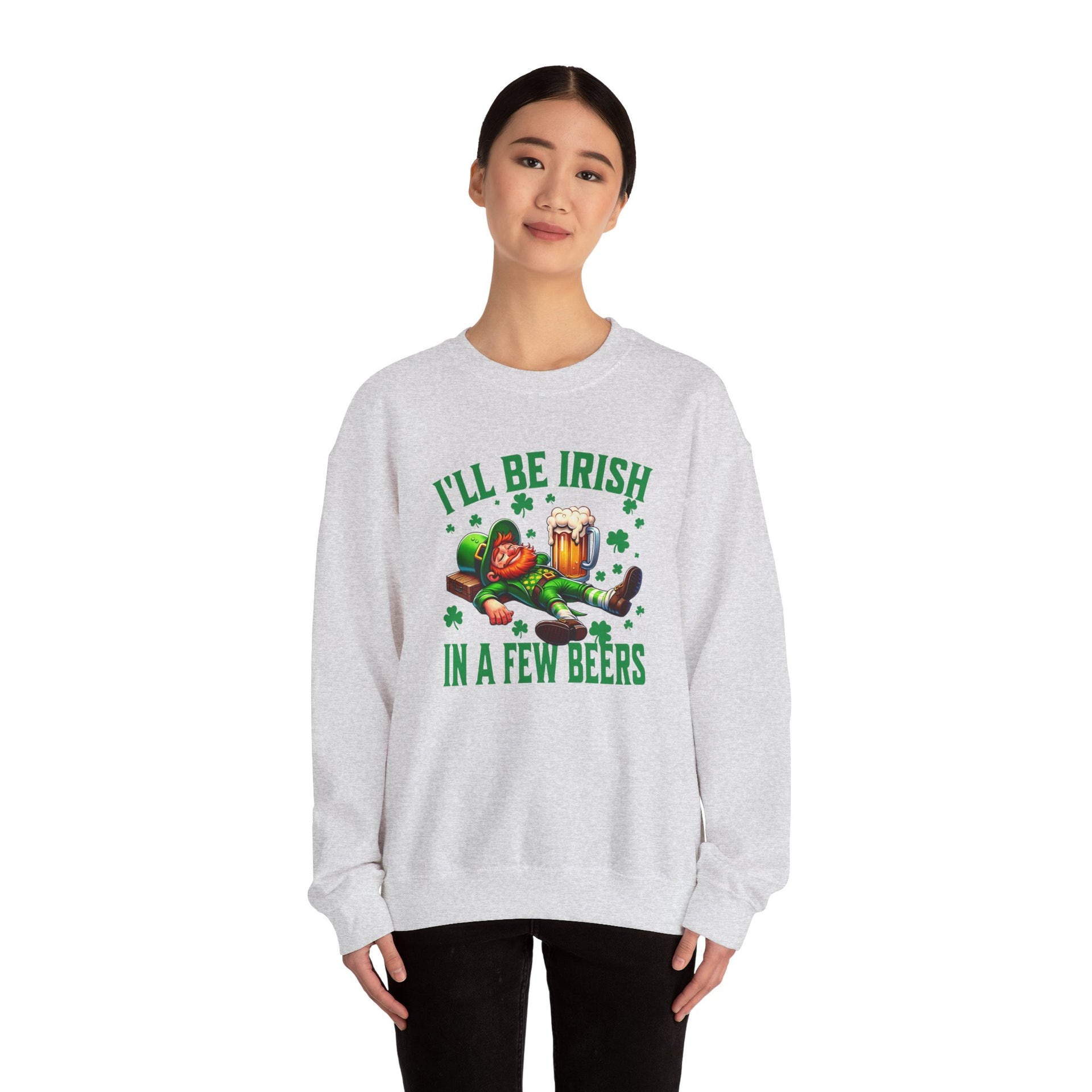 St. Patrick's Day Sweatshirt | I'll Be Irish in a Few Beers | Funny Irish Drinking Shirt | Shamrock Beer Lover Pub Crawls
