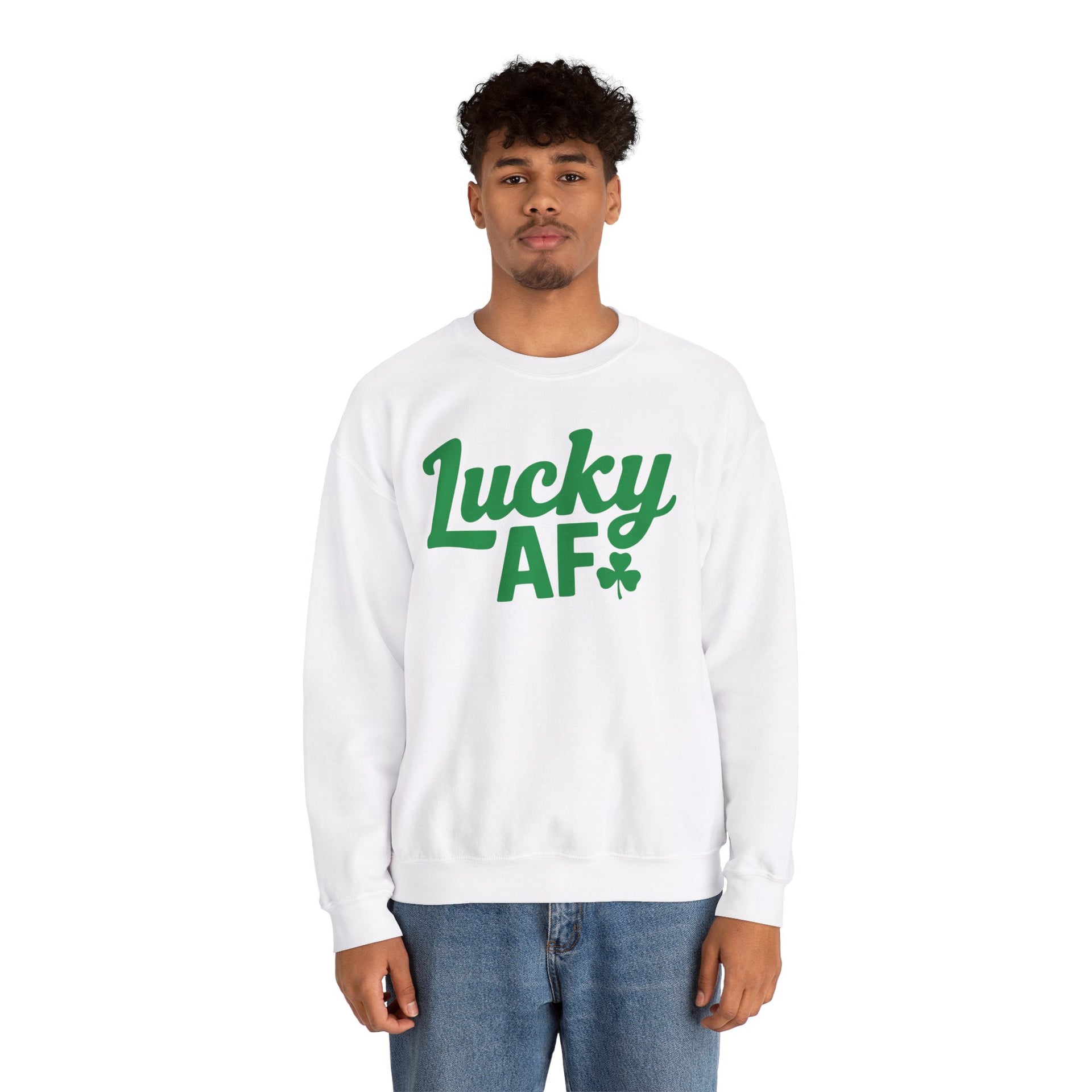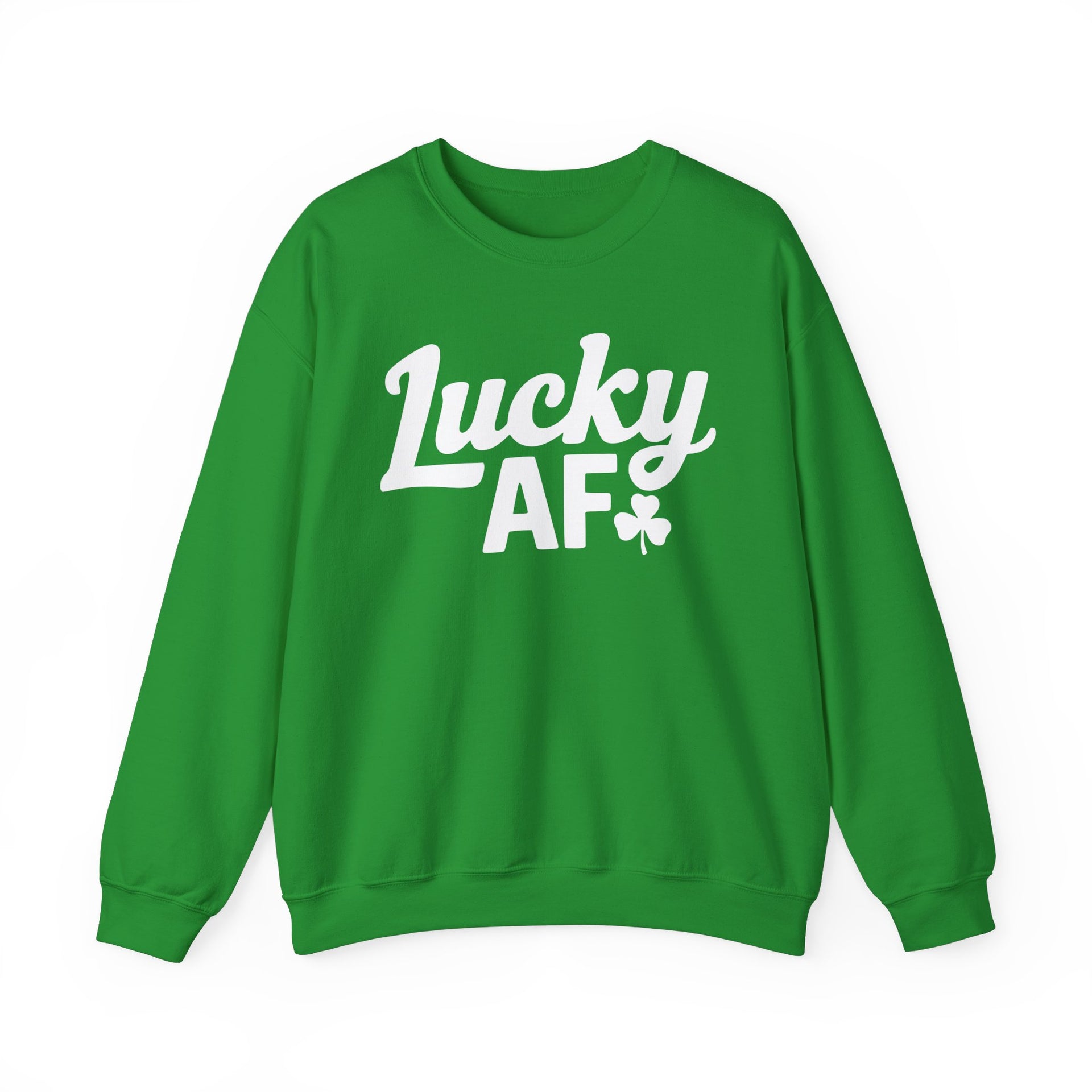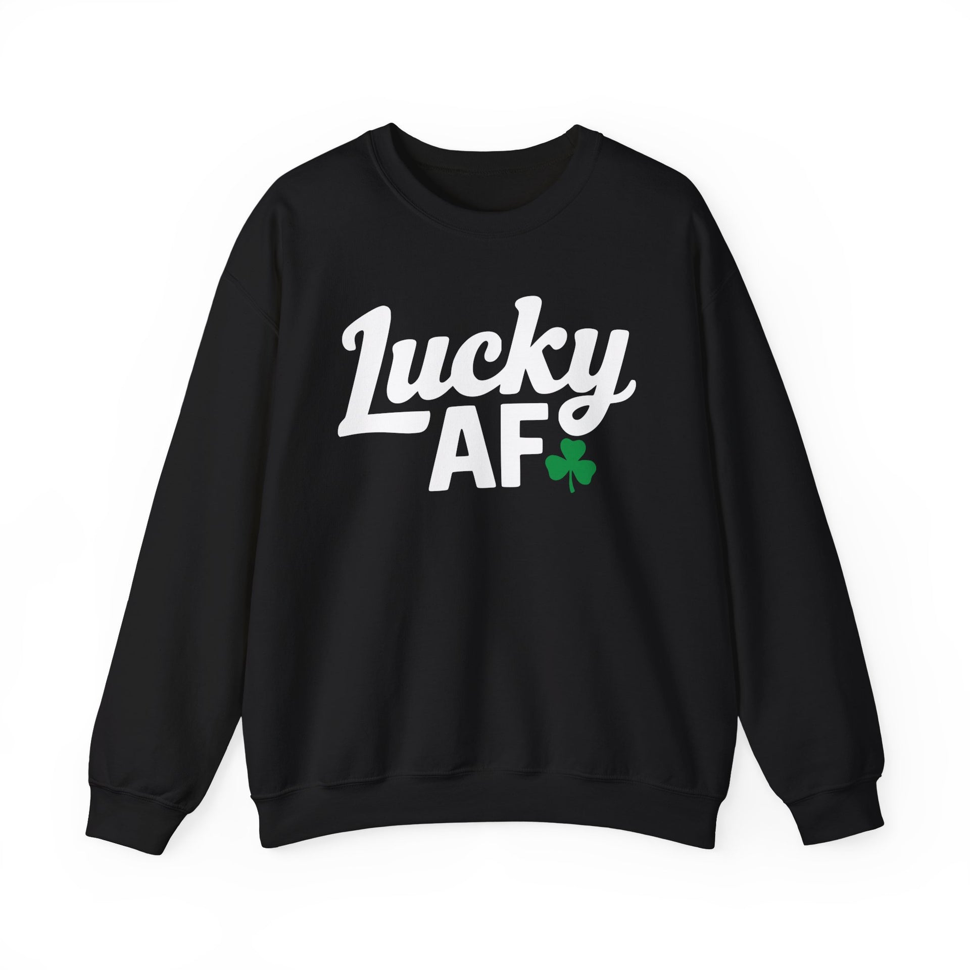 St. Patrick's Day Sweatshirt | Lucky AF | Funny Irish Shamrock Crewneck | Festive Clover St. Paddy’s Sweatshirt