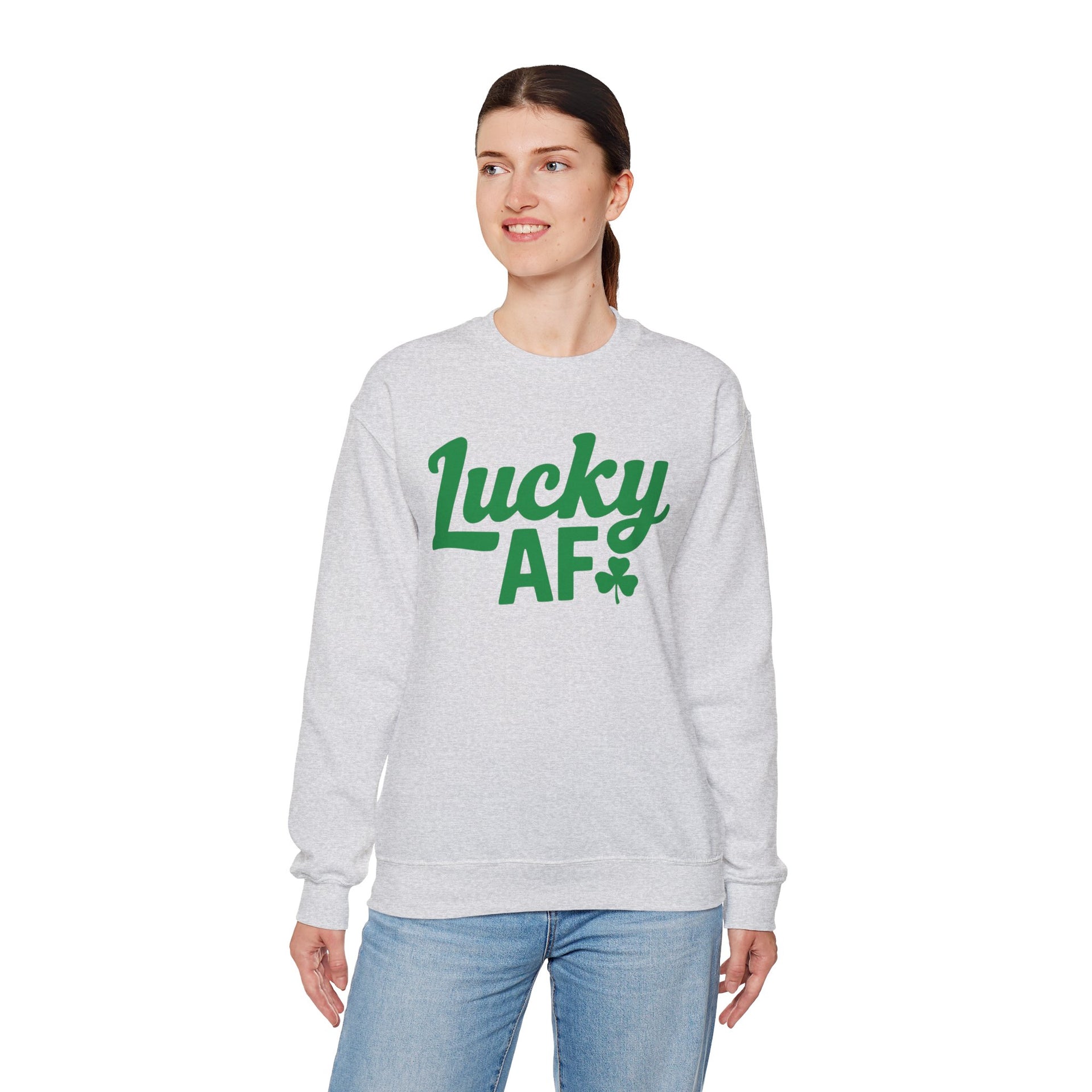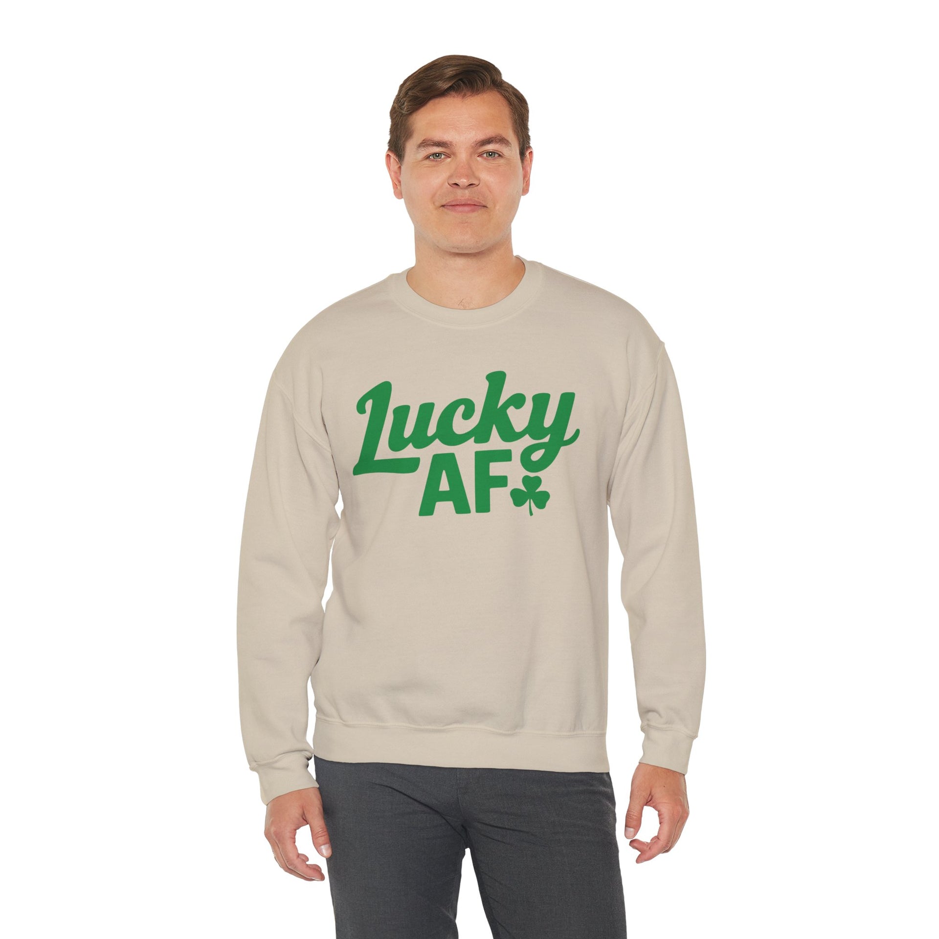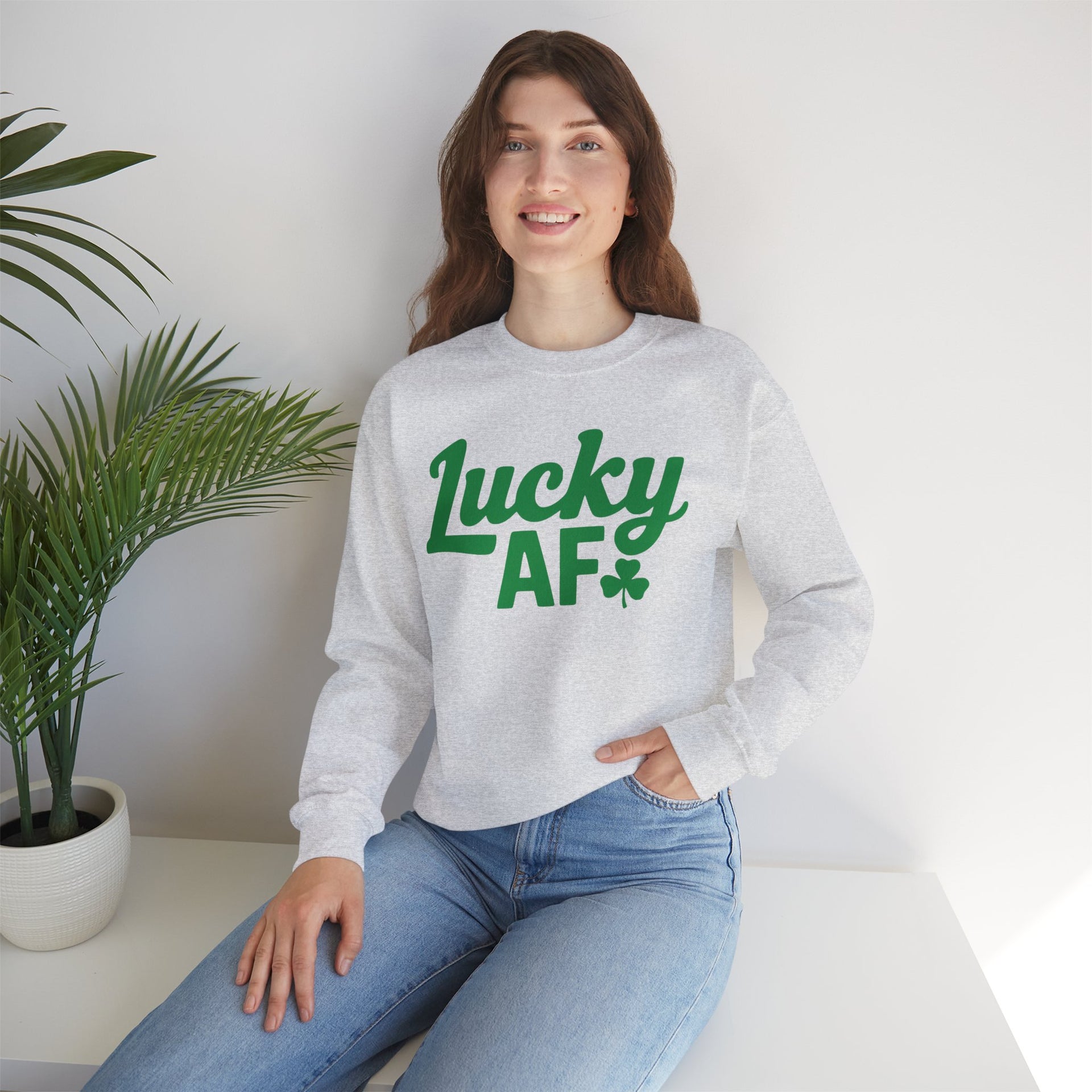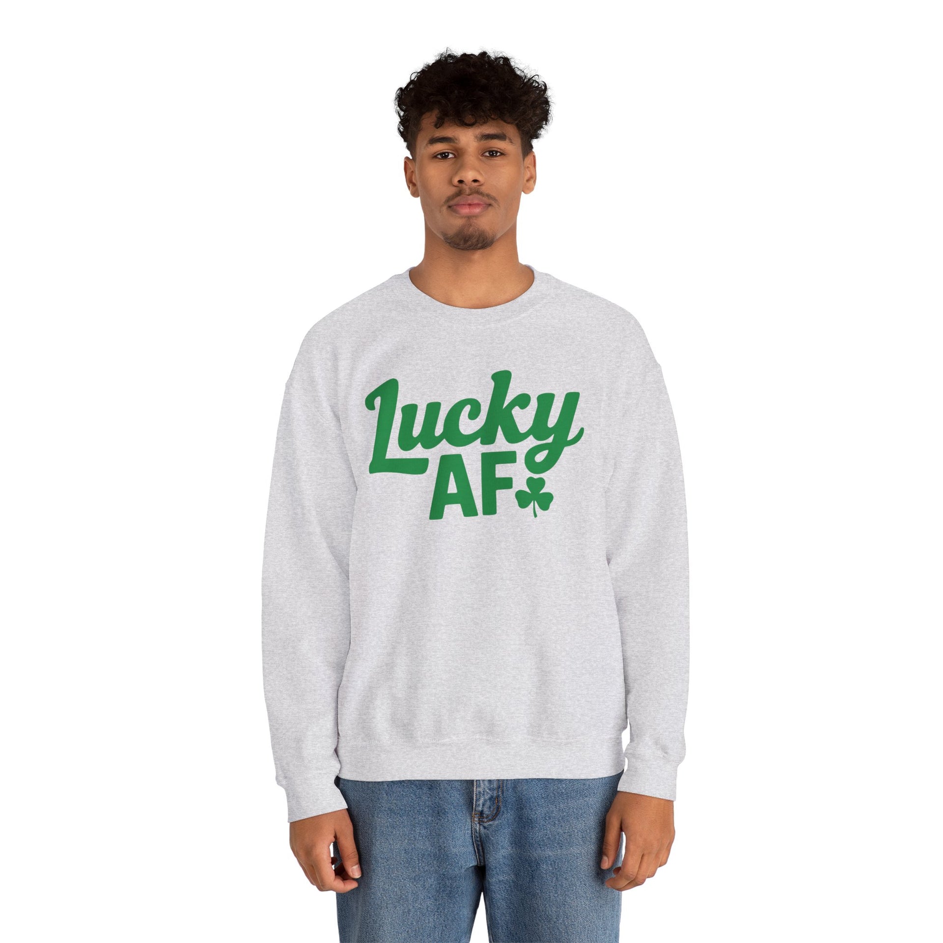 St. Patrick's Day Sweatshirt | Lucky AF | Funny Irish Shamrock Crewneck | Festive Clover St. Paddy’s Sweatshirt