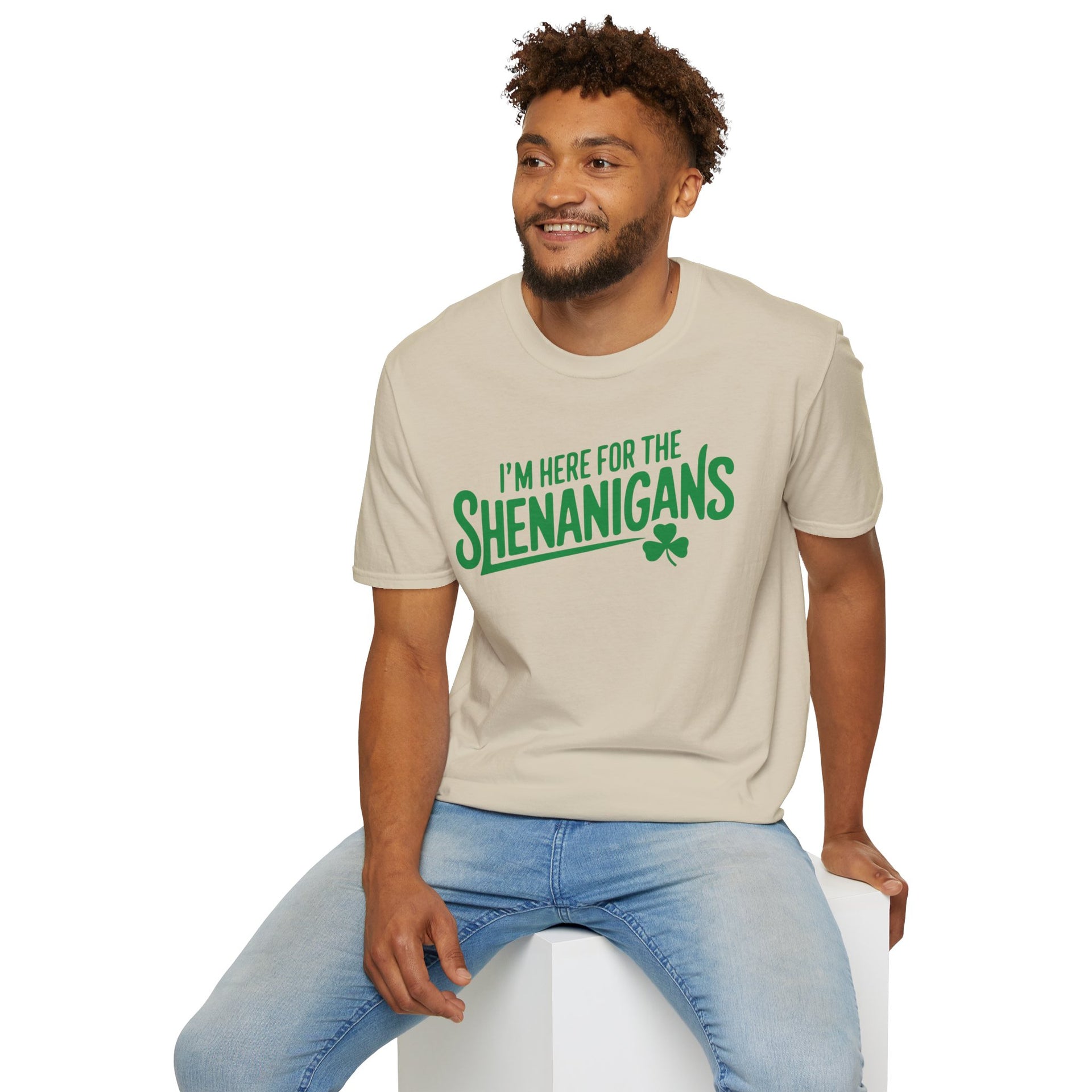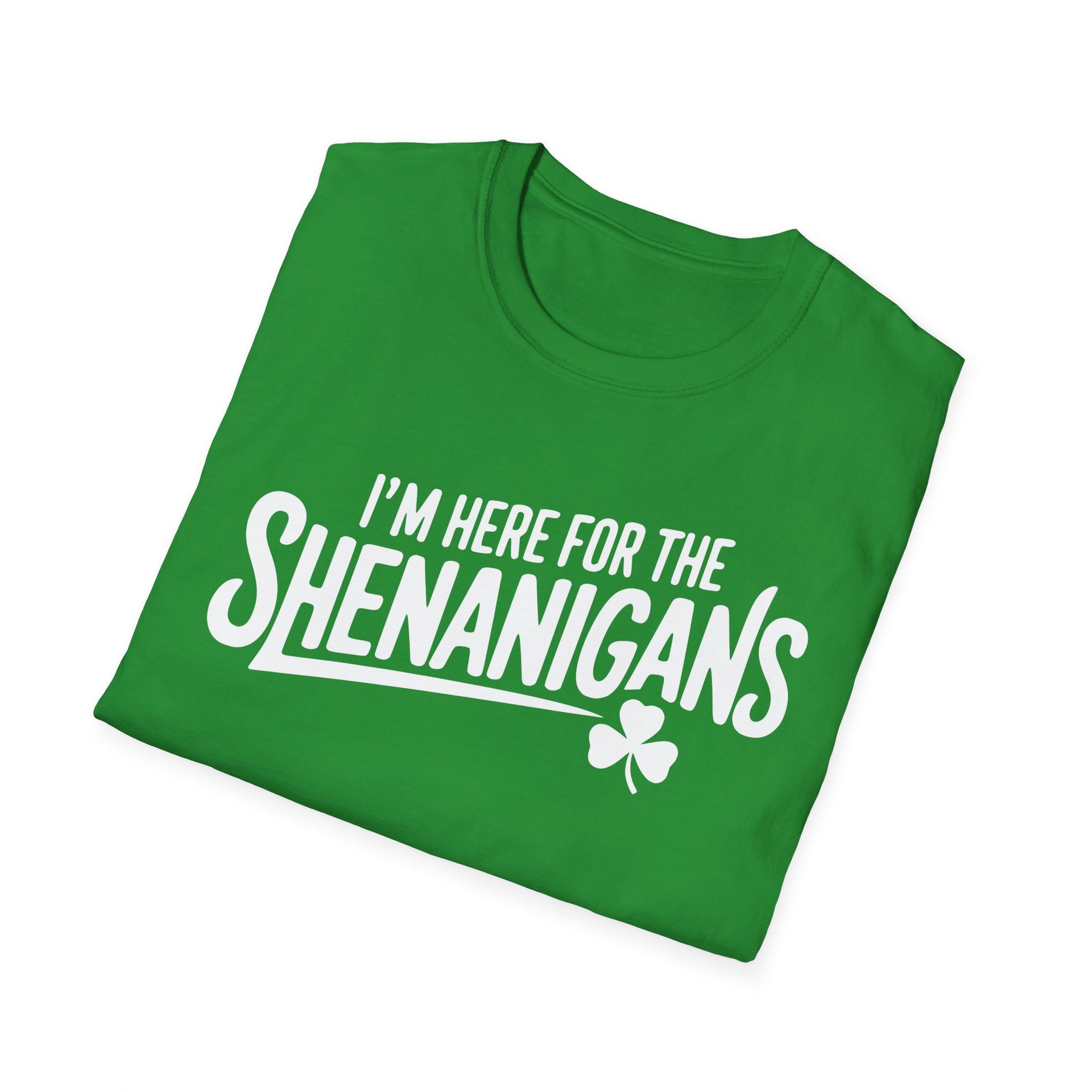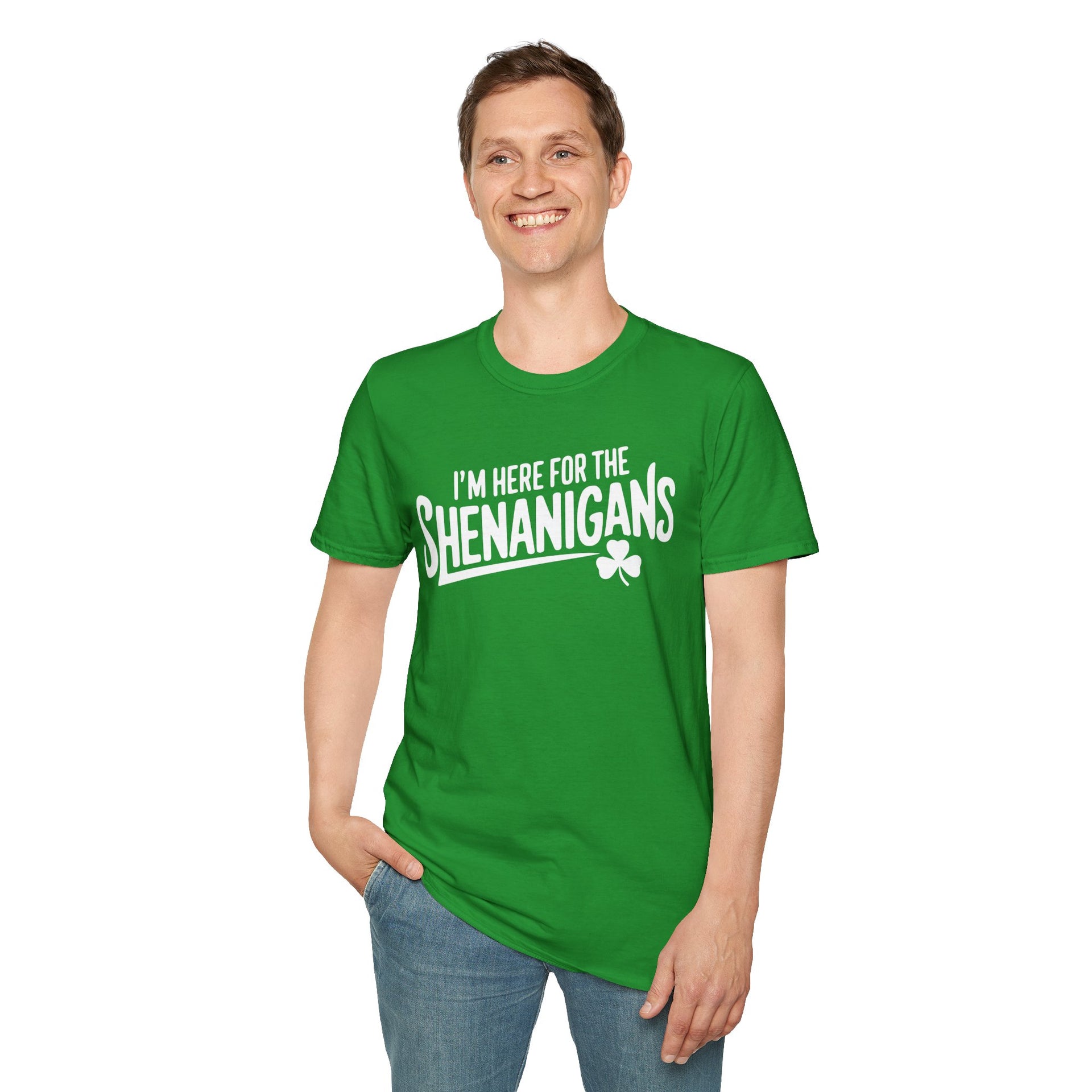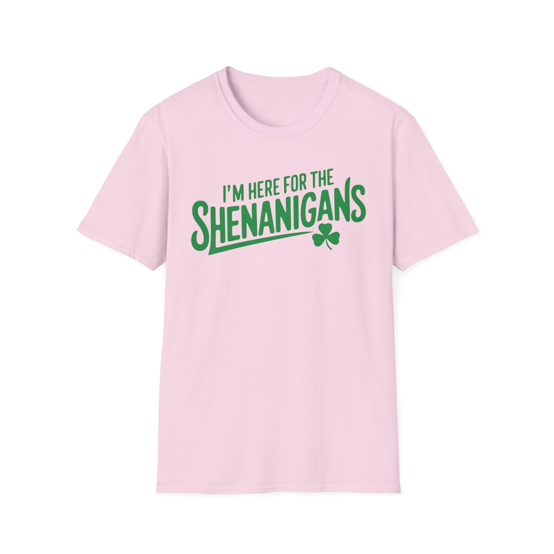 St. Patrick's Day T-Shirt | I'm Here for the Shenanigans | Funny Irish Drinking Tee | Festive St. Paddy’s Shirt