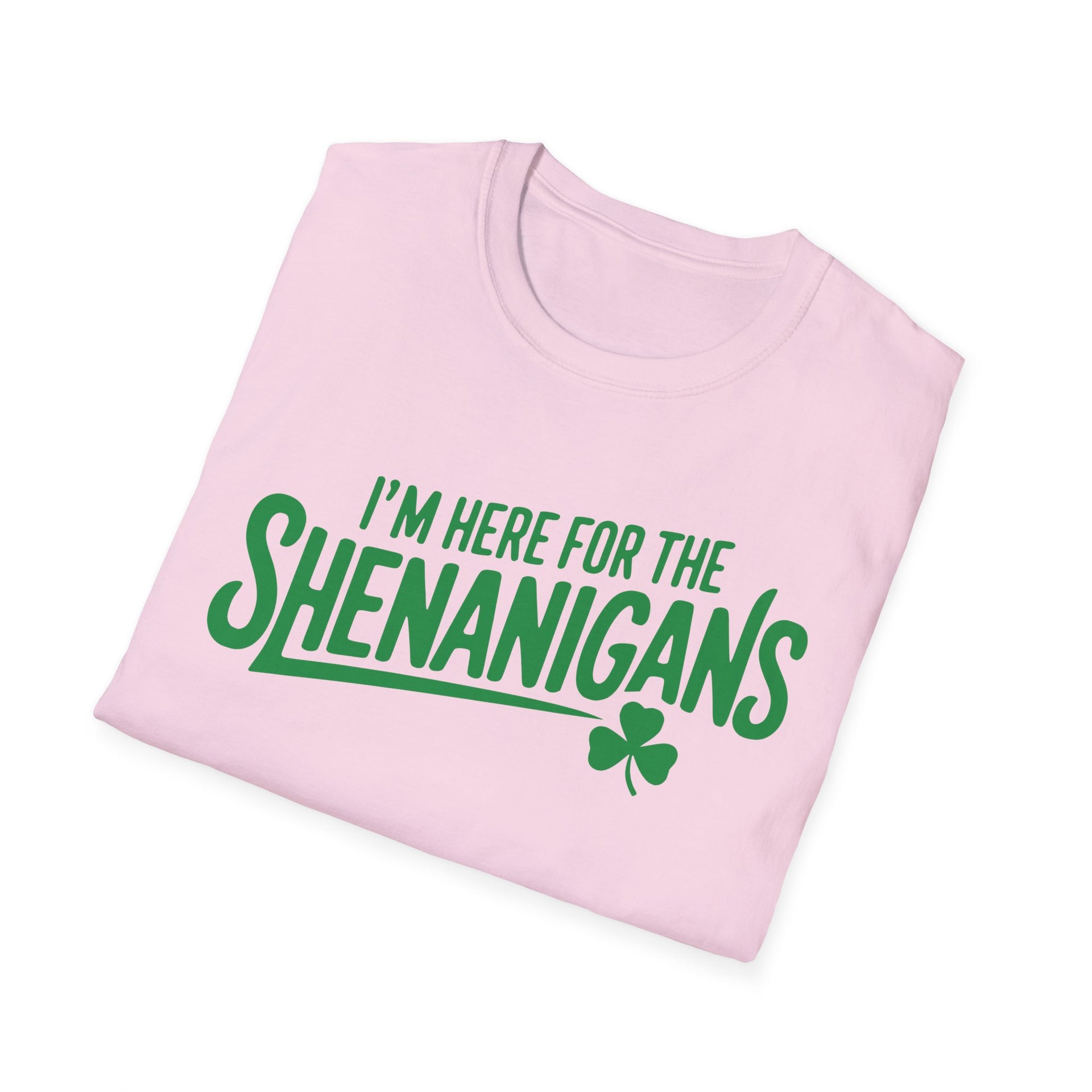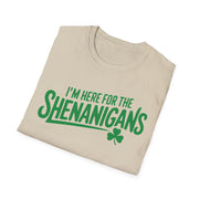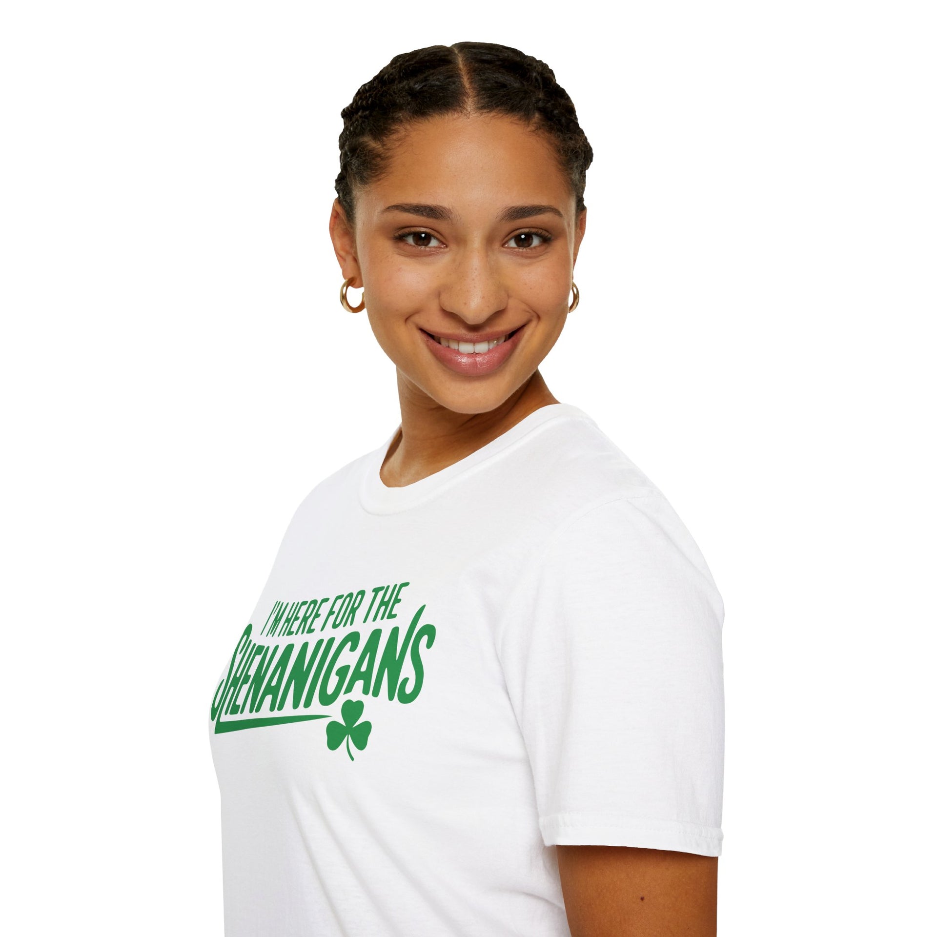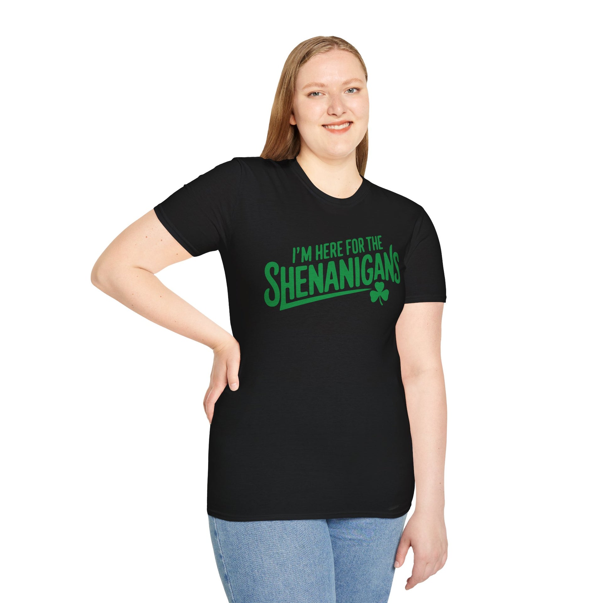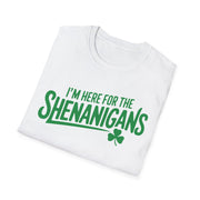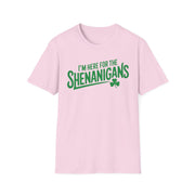 St. Patrick's Day T-Shirt | I'm Here for the Shenanigans | Funny Irish Drinking Tee | Festive St. Paddy’s Shirt