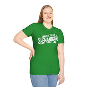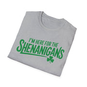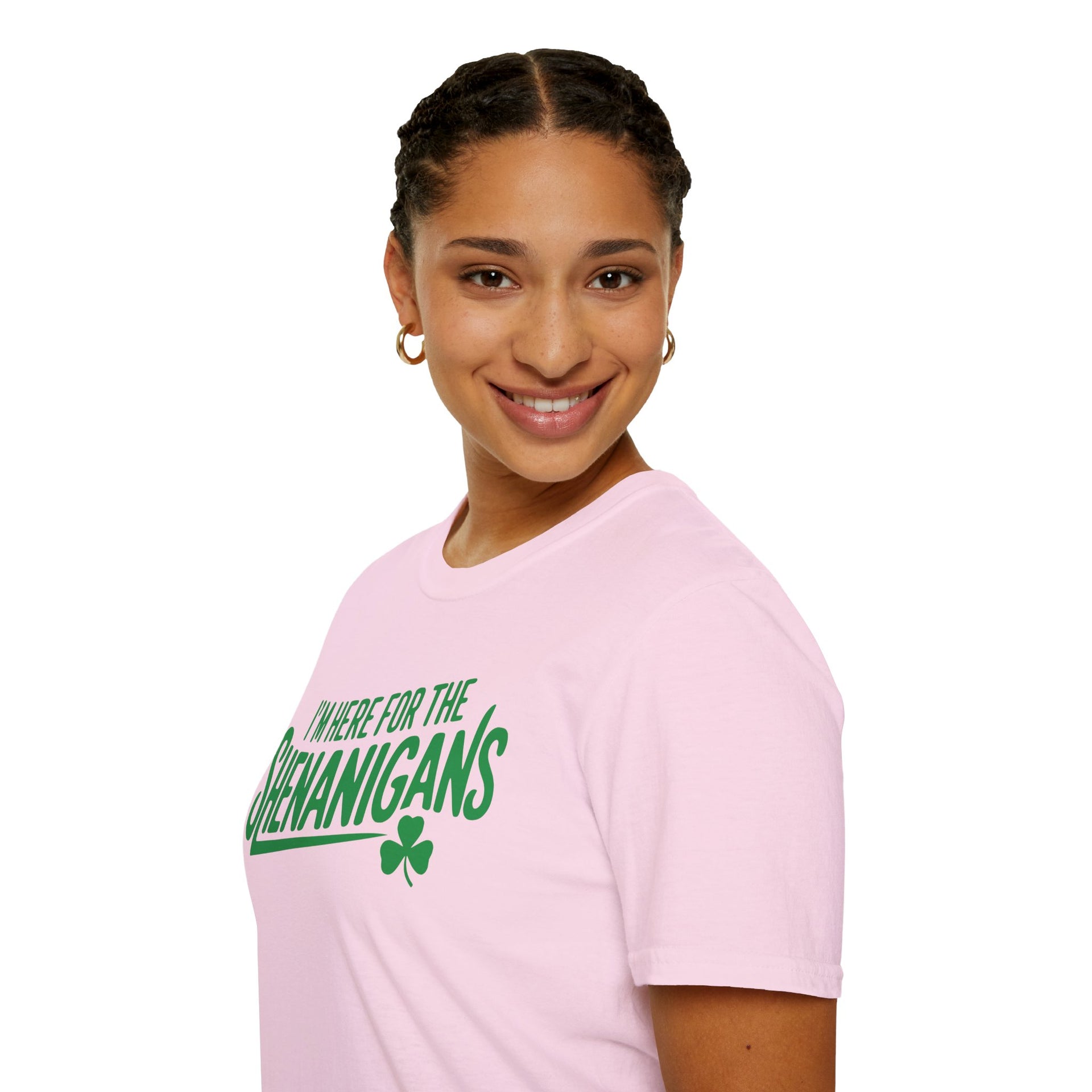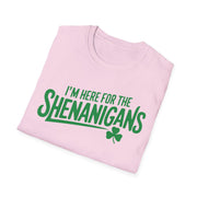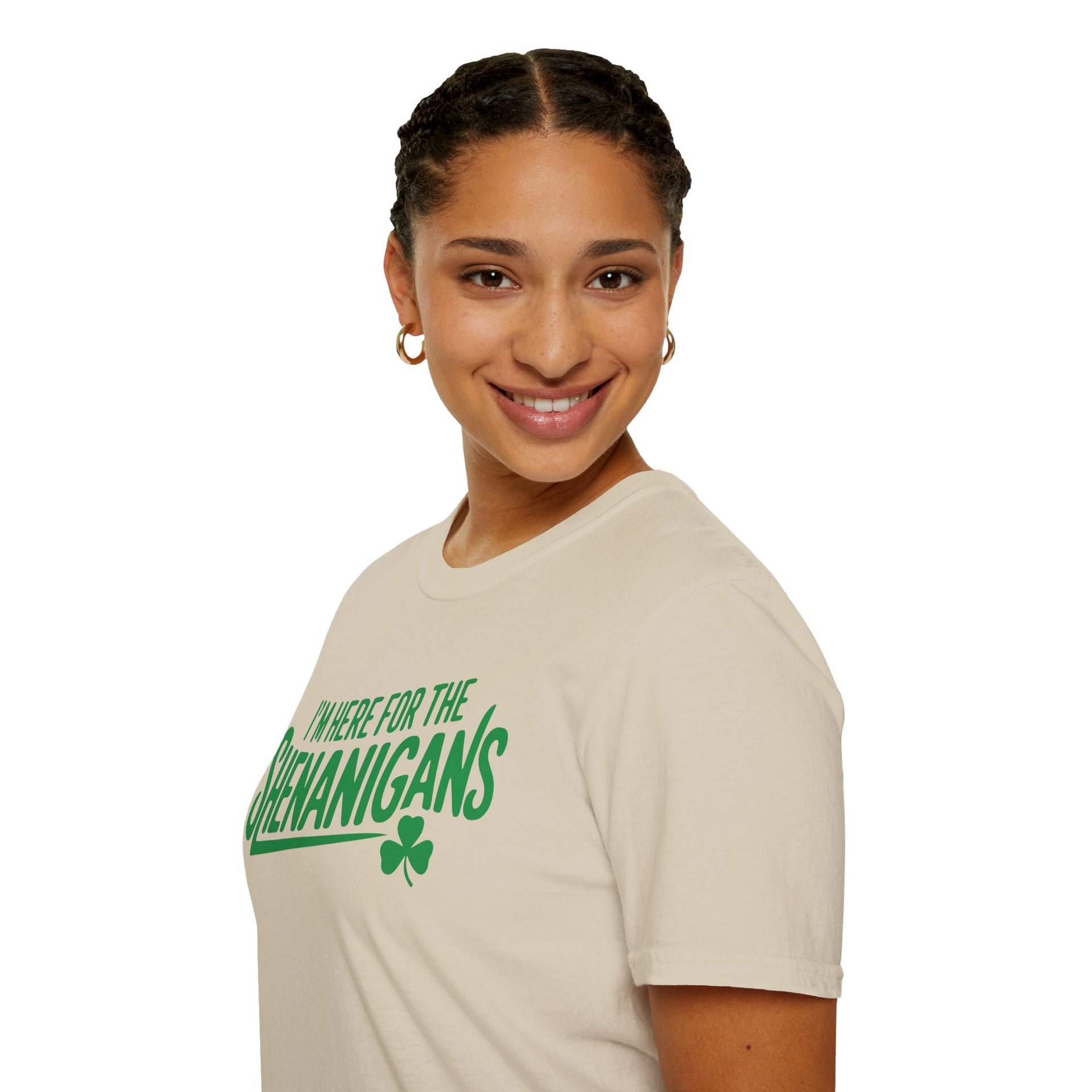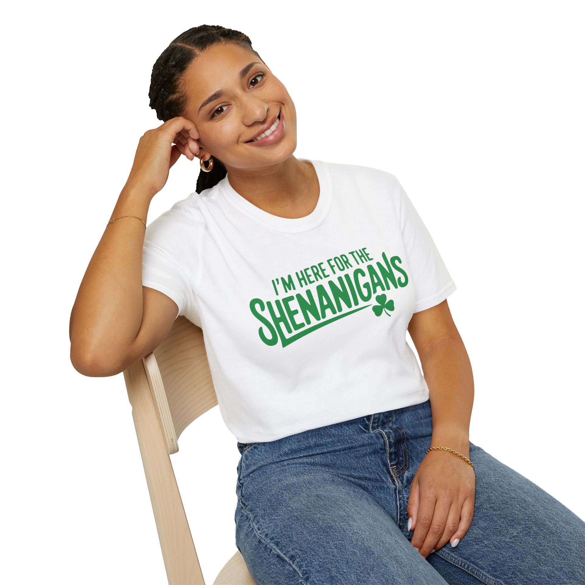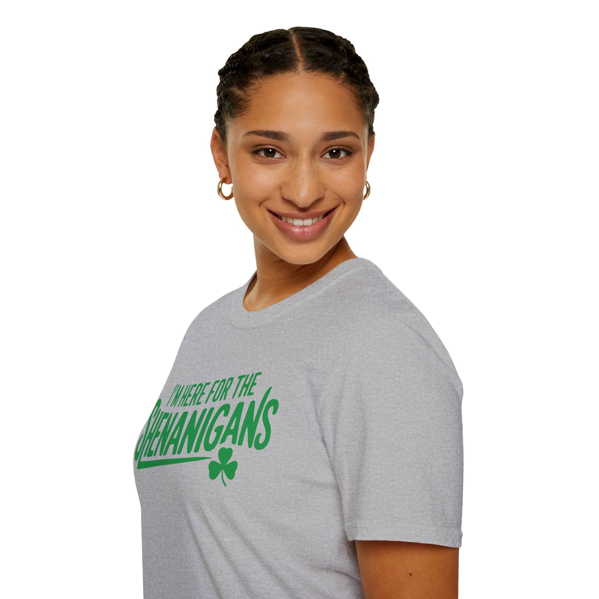 St. Patrick's Day T-Shirt | I'm Here for the Shenanigans | Funny Irish Drinking Tee | Festive St. Paddy’s Shirt