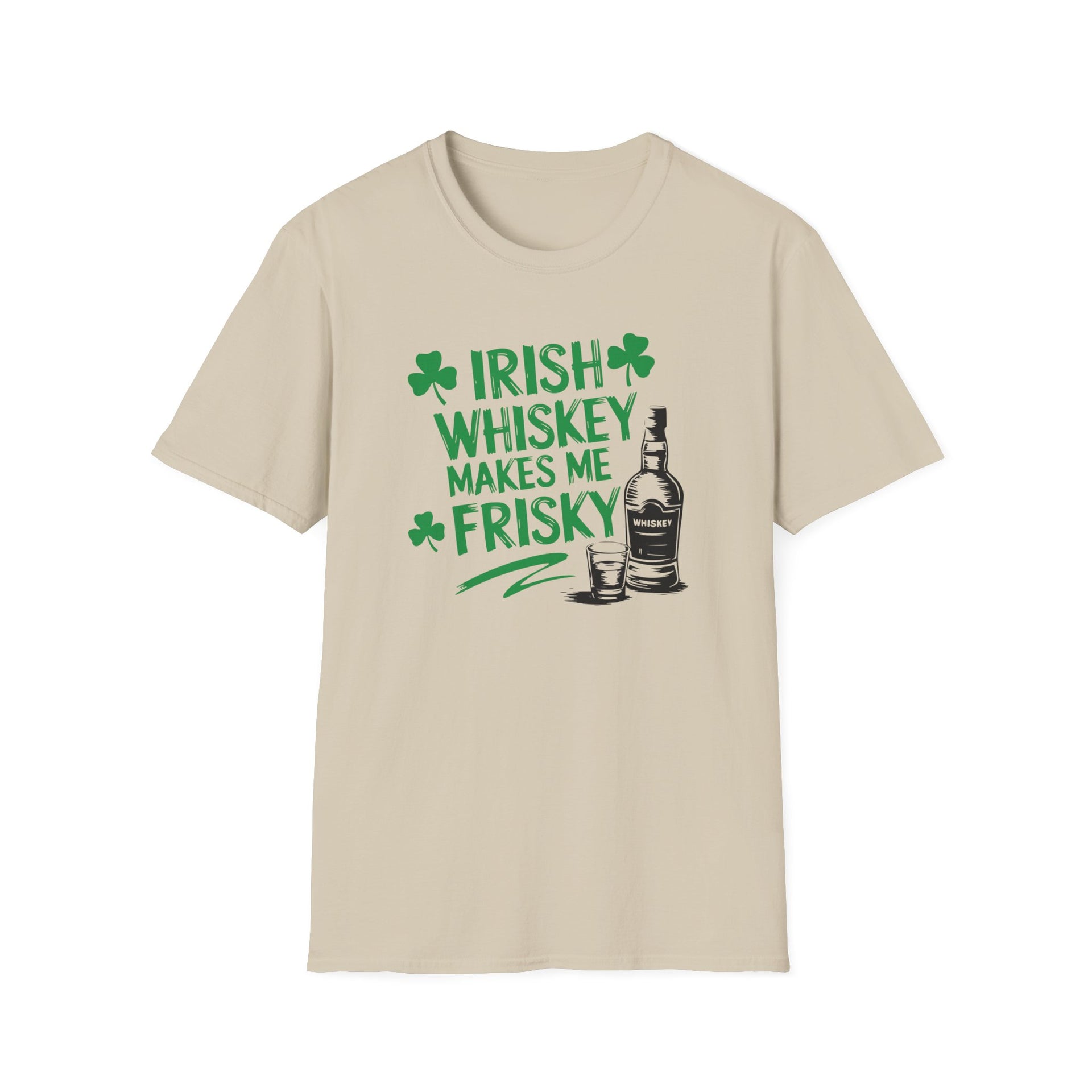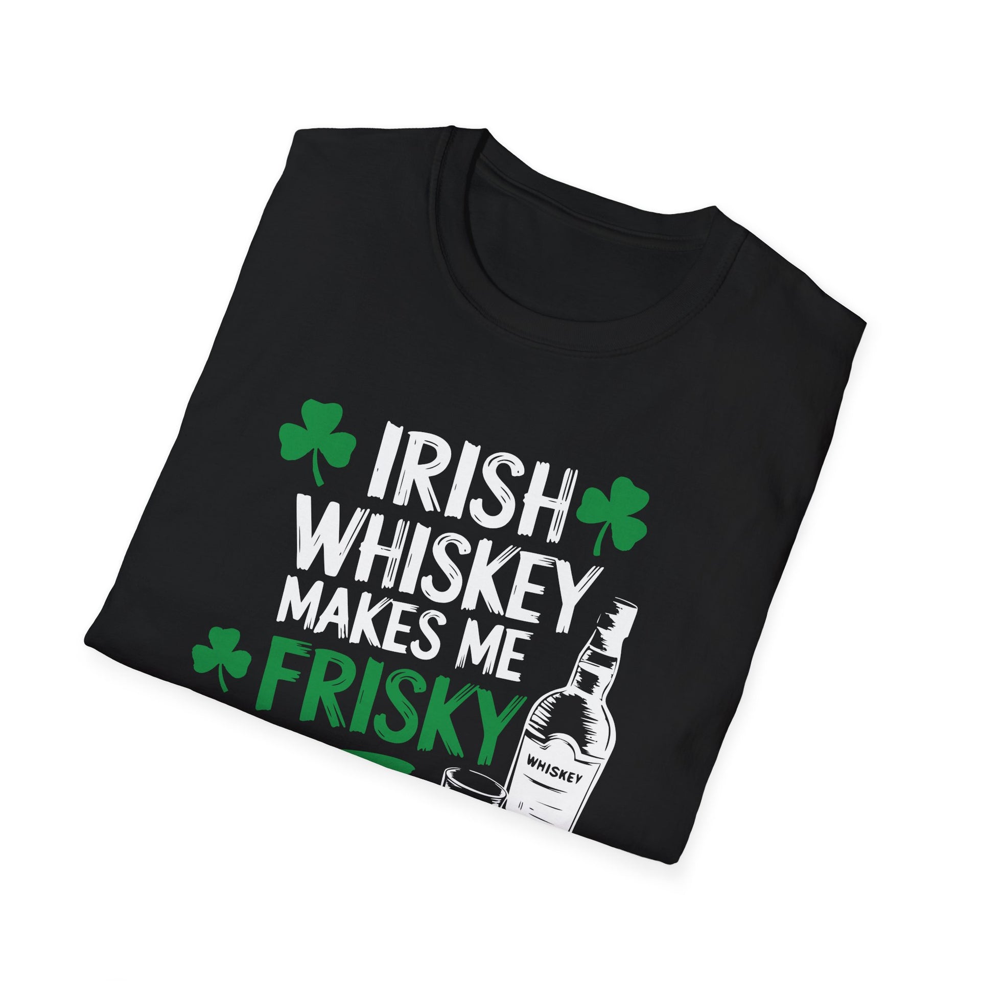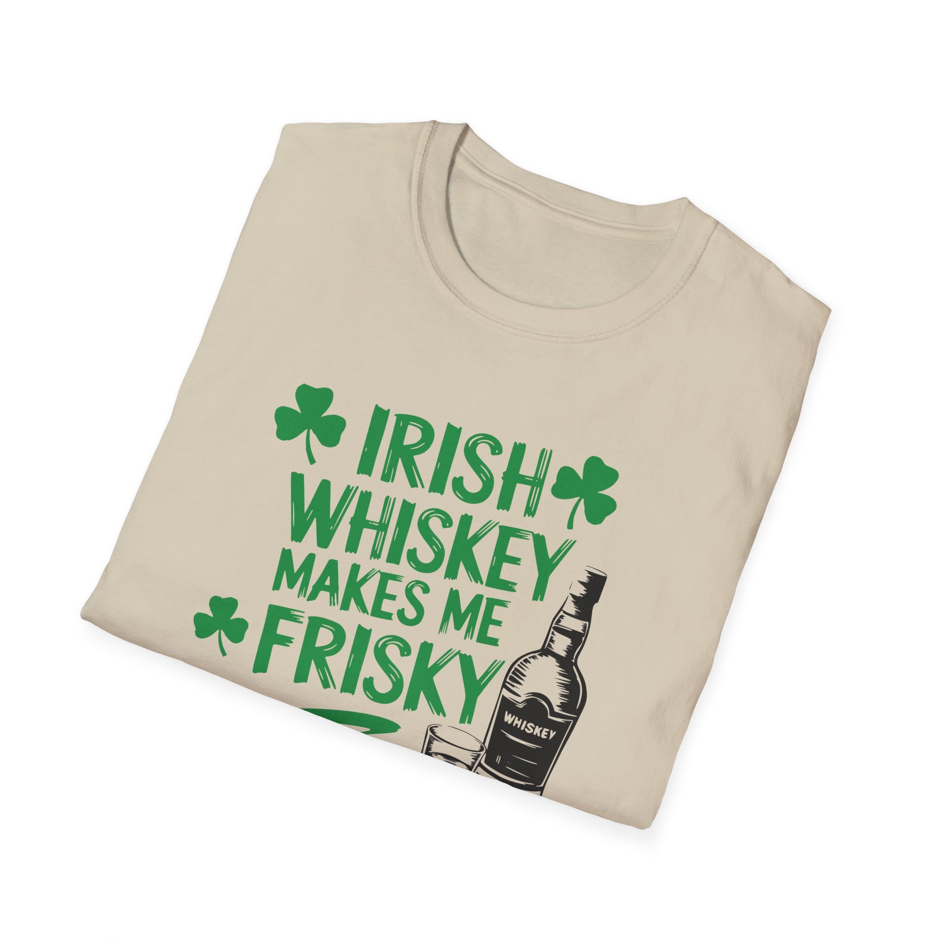 🥃 Order your "Irish Whiskey Makes Me Frisky" t-shirt today and bring extra fun to your St. Paddy’s Day celebrations! 🍀