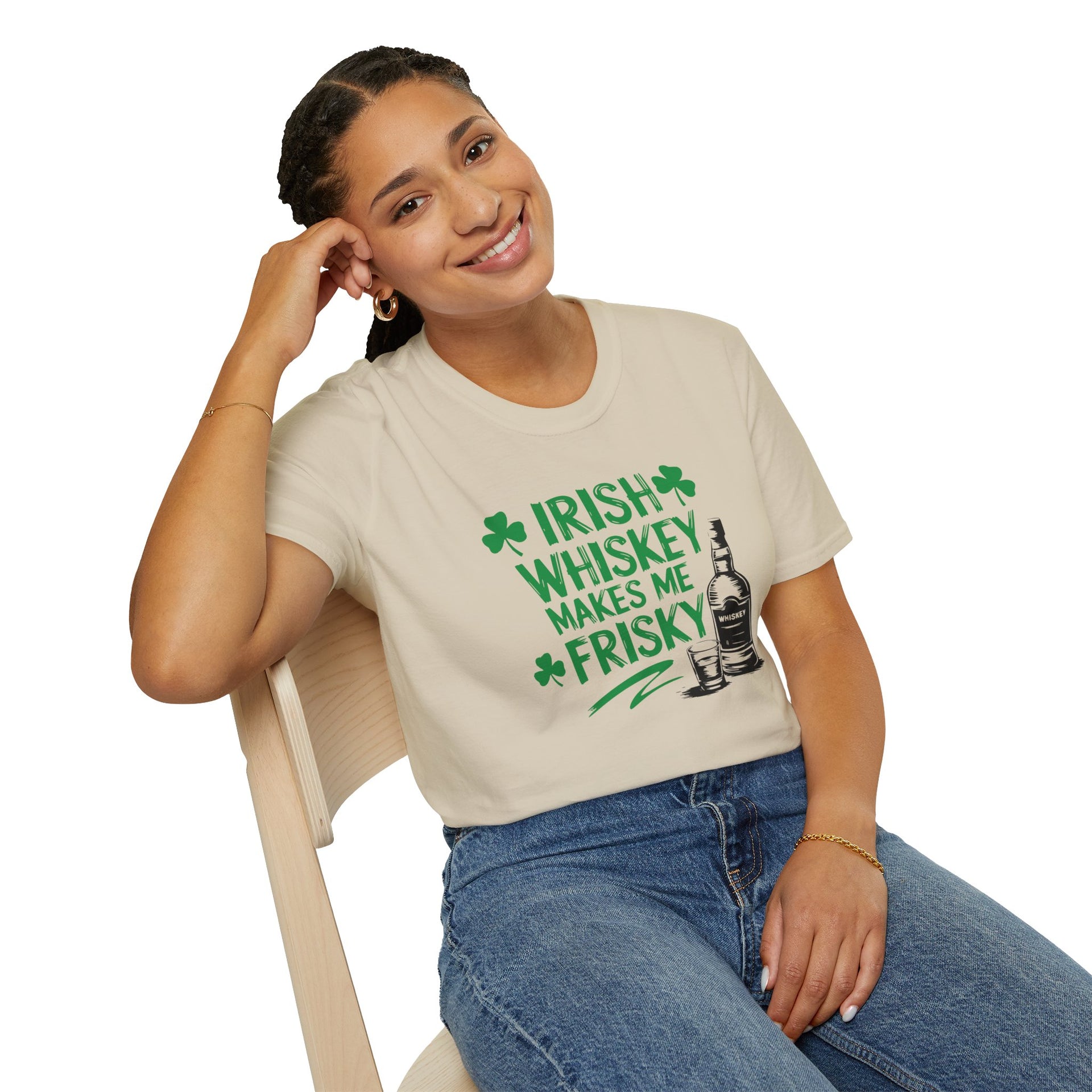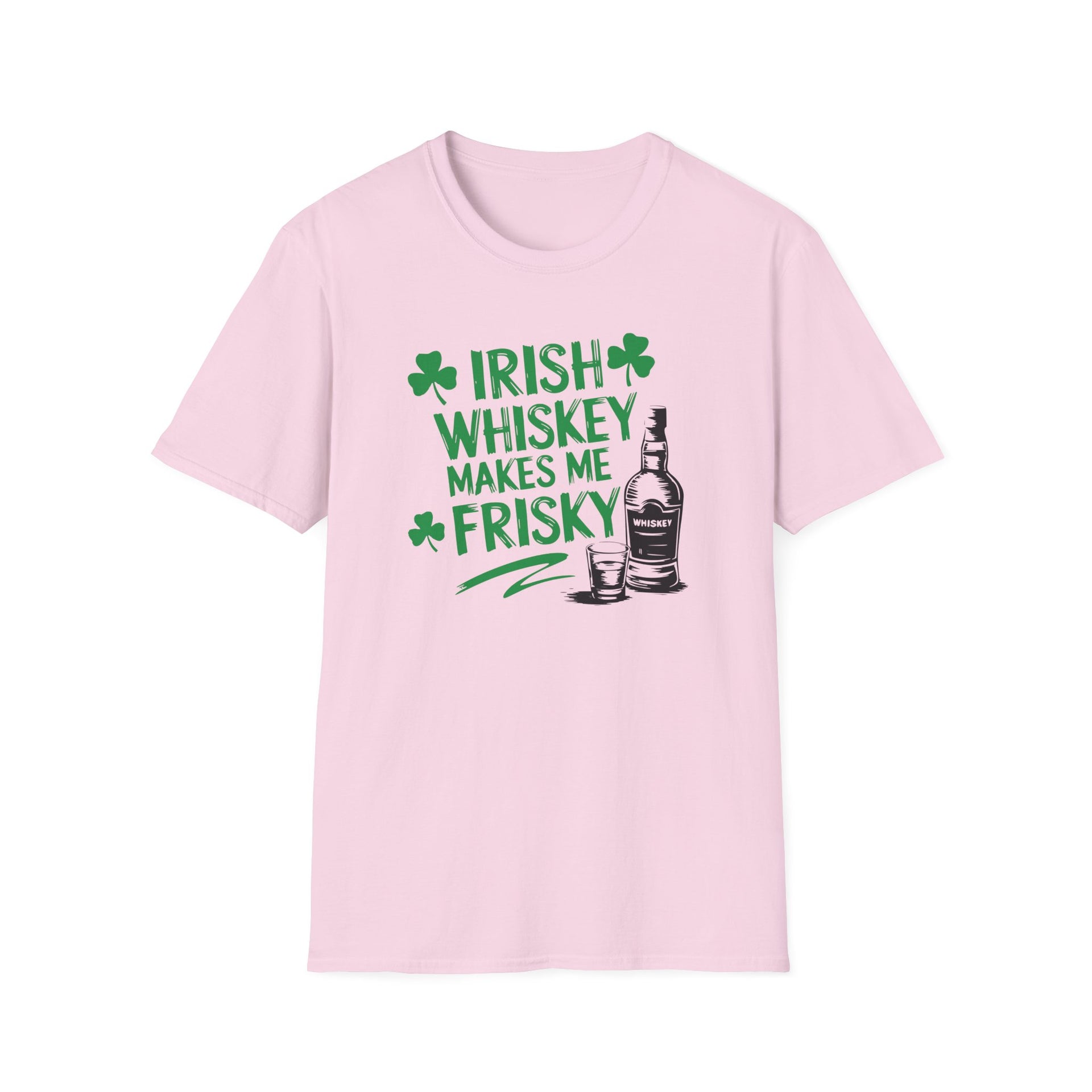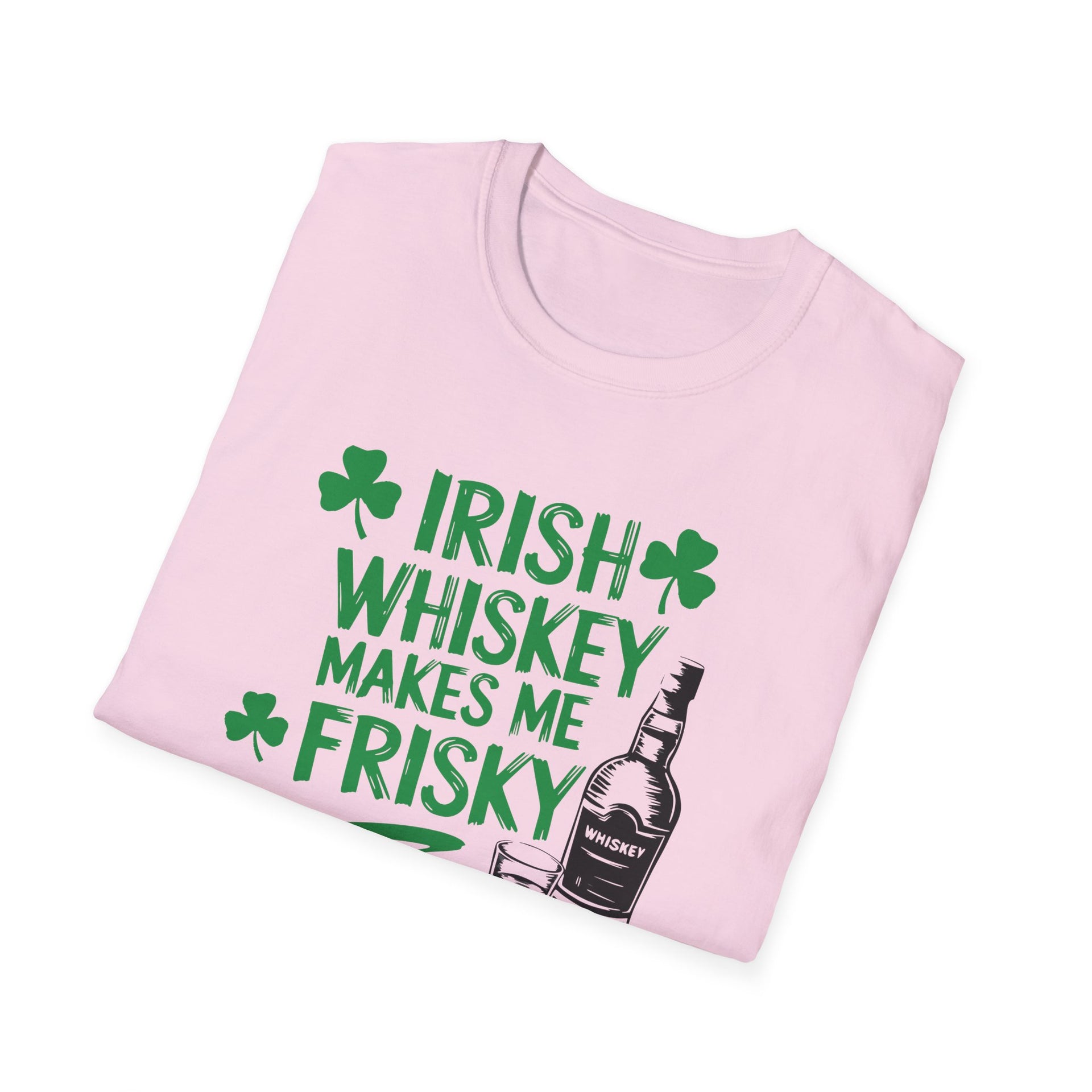 🍀 Does whiskey make you a little frisky? Whether you're raising a glass of Jameson, celebrating at the pub, or just embracing the Irish spirit, this "Irish Whiskey Makes Me Frisky" t-shirt is a must-have for St. Patrick’s Day.