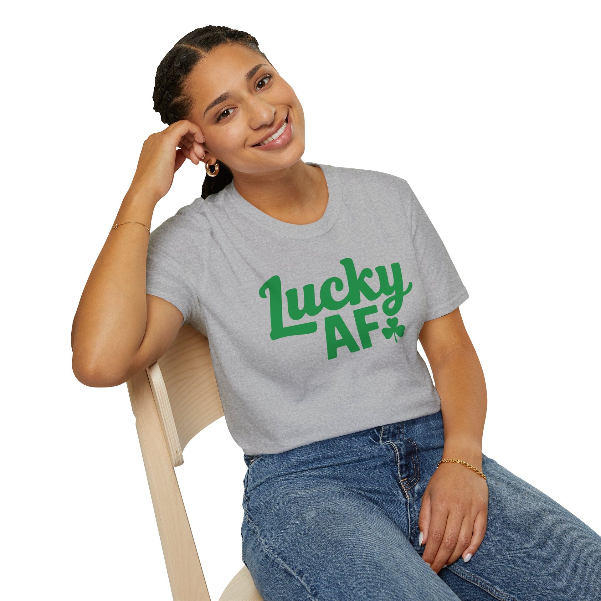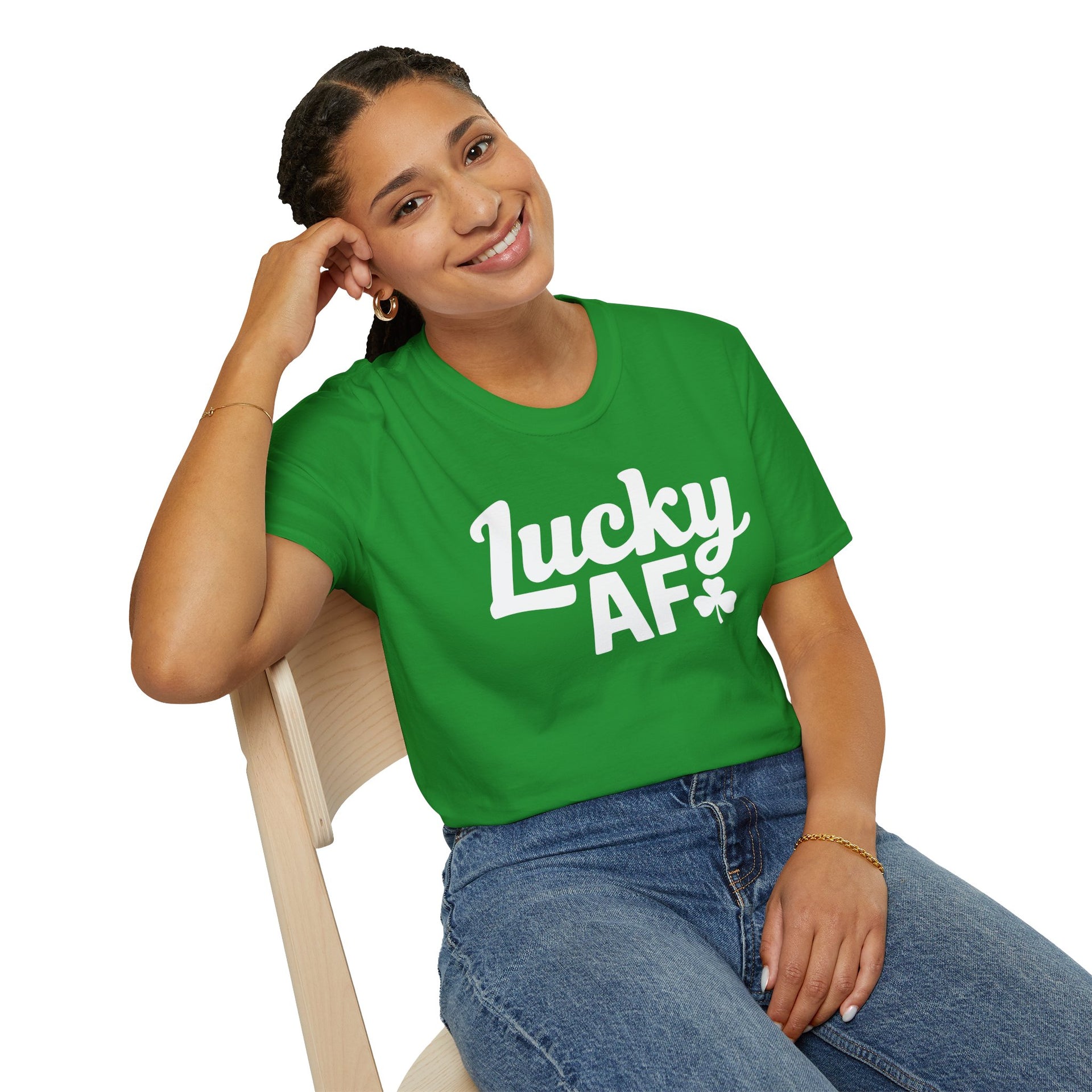 🍀 Feeling lucky? Whether you're bar-hopping, enjoying a few pints with friends, or just celebrating in style, this "Lucky AF" t-shirt is the perfect addition to your St. Patrick’s Day wardrobe.