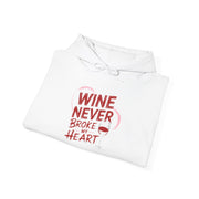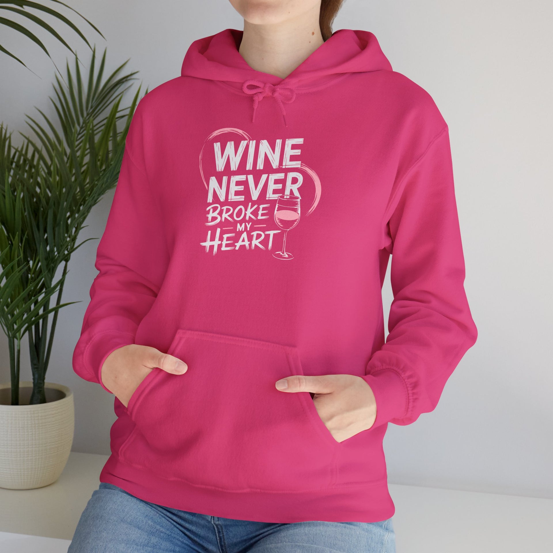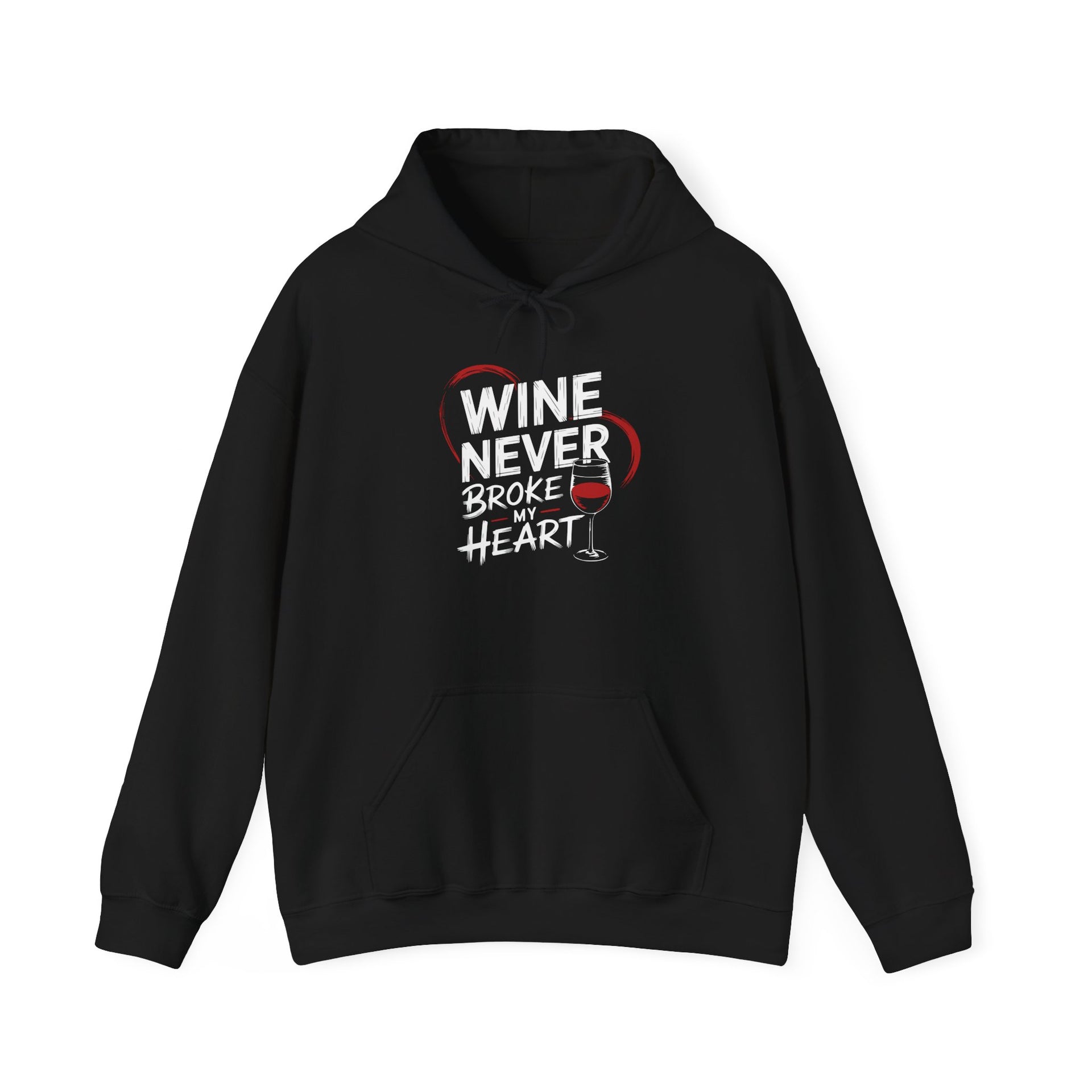 Wine Never Broke My Heart Funny Hoodie - Wine Lover Valentine’s Day Pullover, Perfect Gift for Her