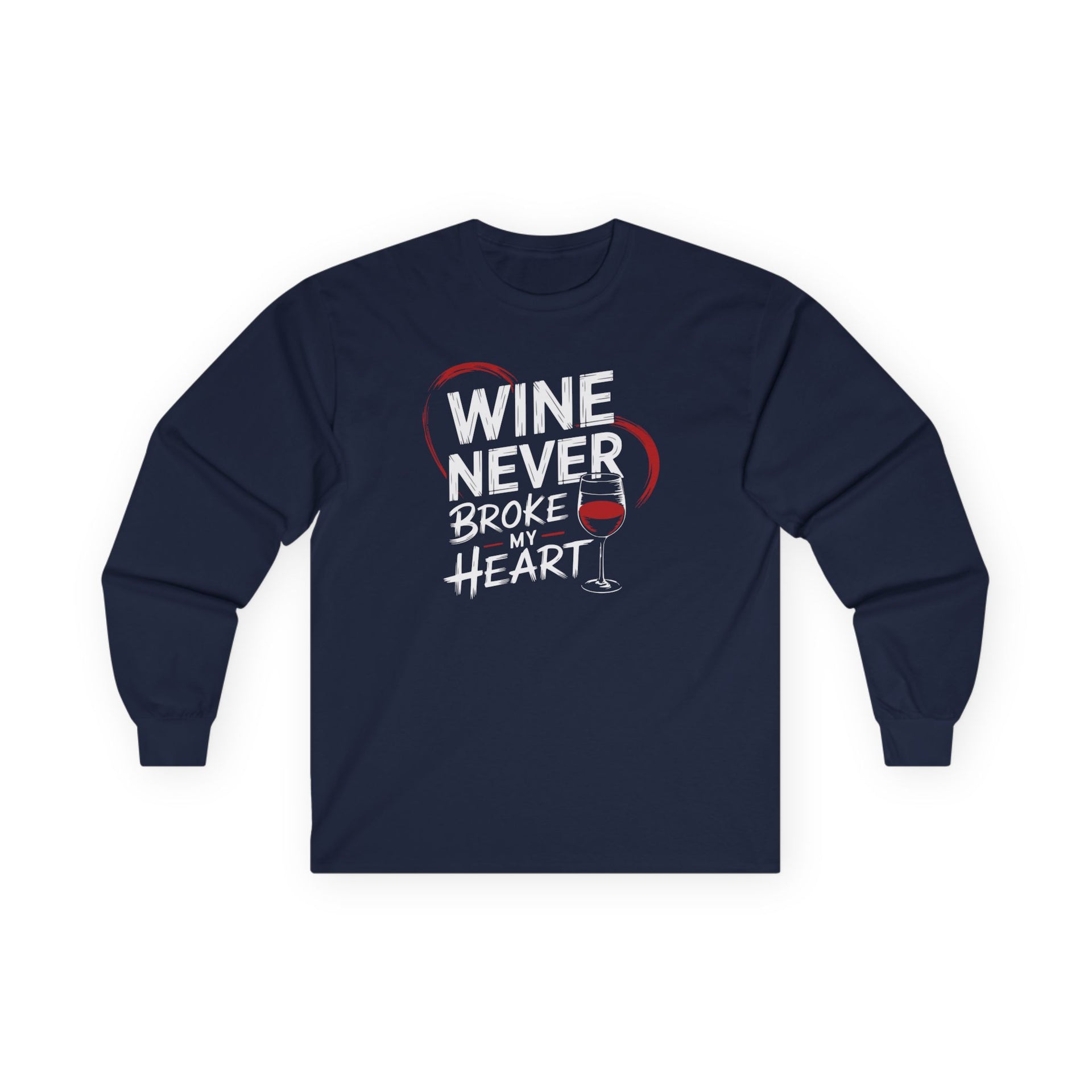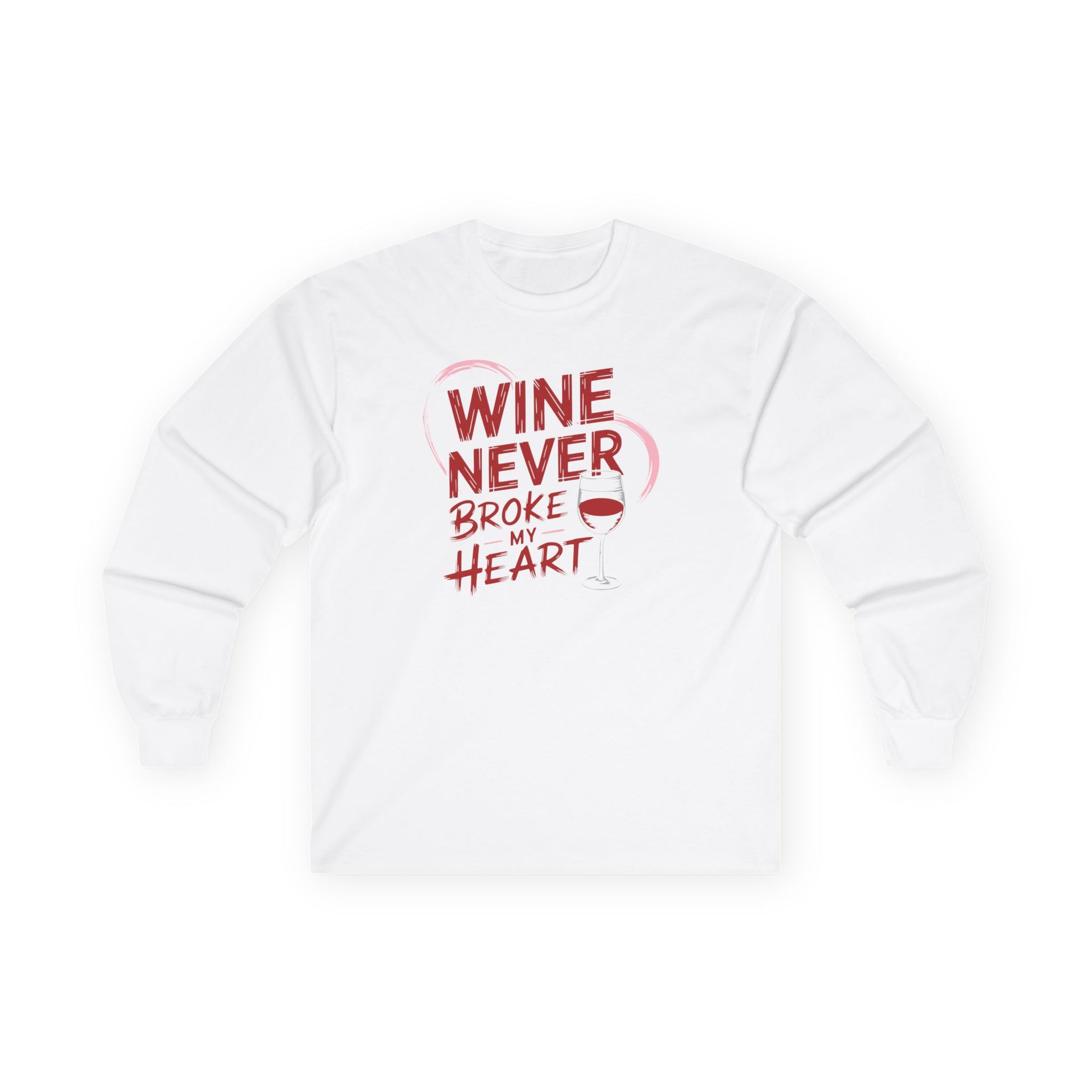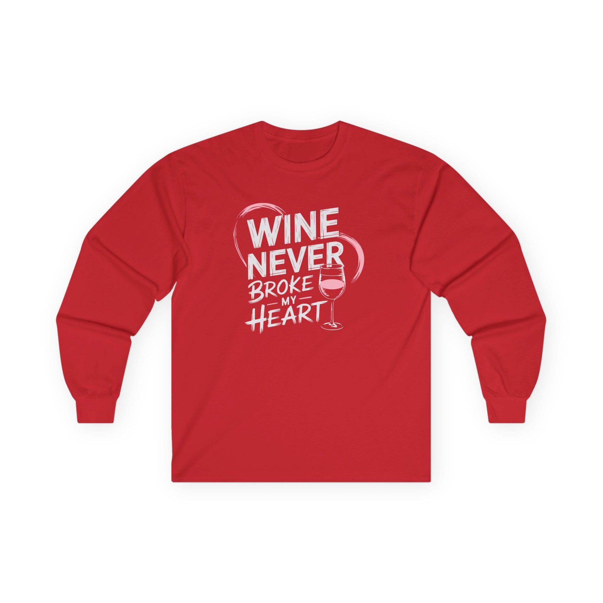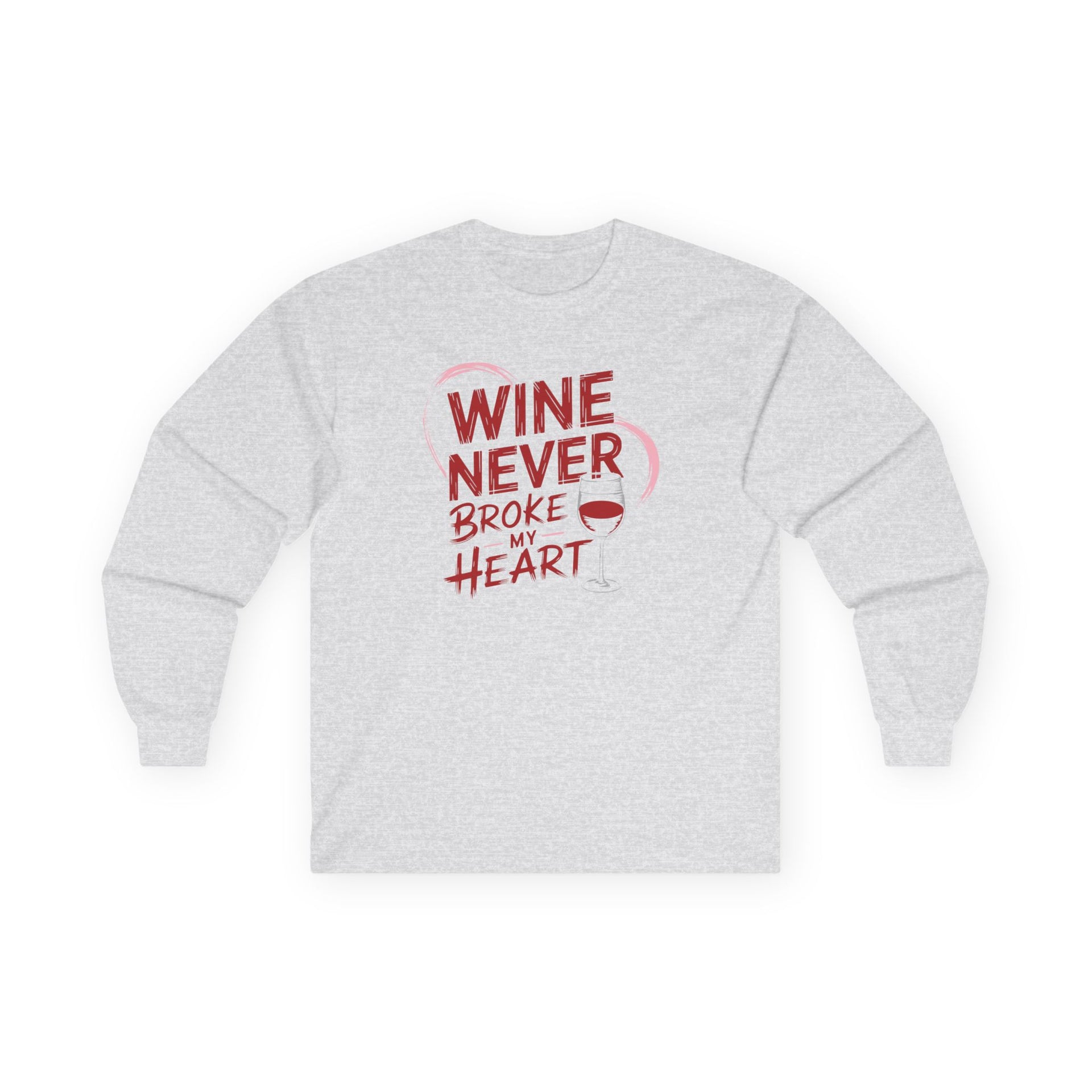 Wine Never Broke My Heart Funny Long-Sleeve Shirt - Wine Lover Valentine’s Day Tee, Perfect Gift for Her