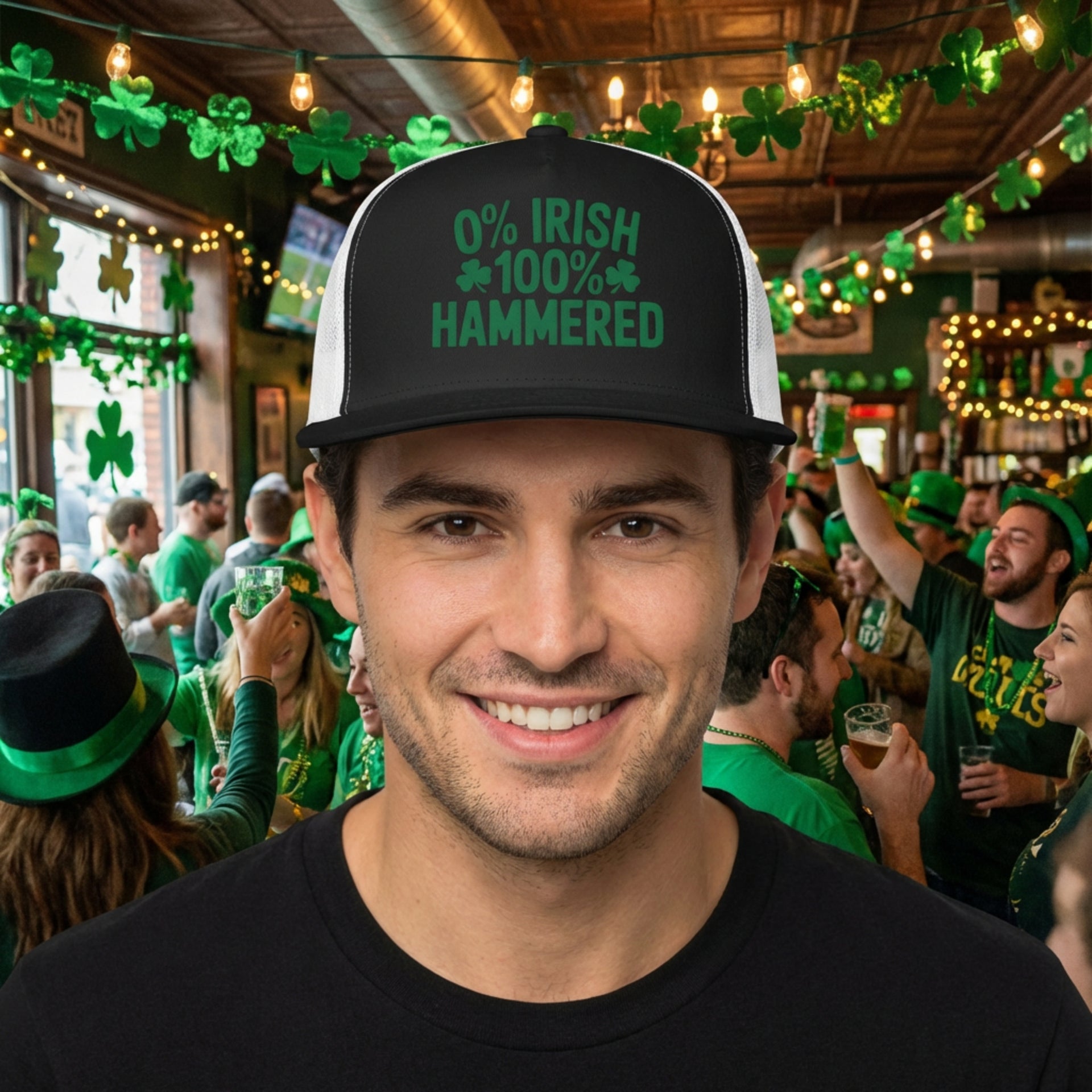 0% Irish 100% Hammered - Funny St. Patrick's Day Trucker Hat - Snapback Cap