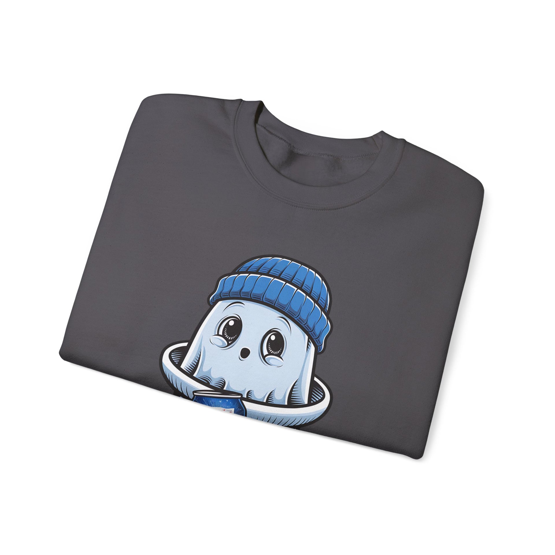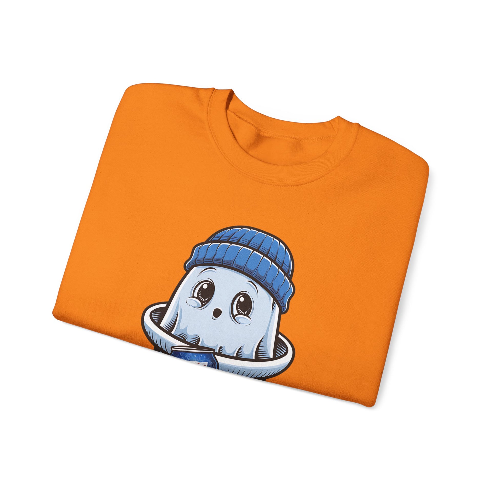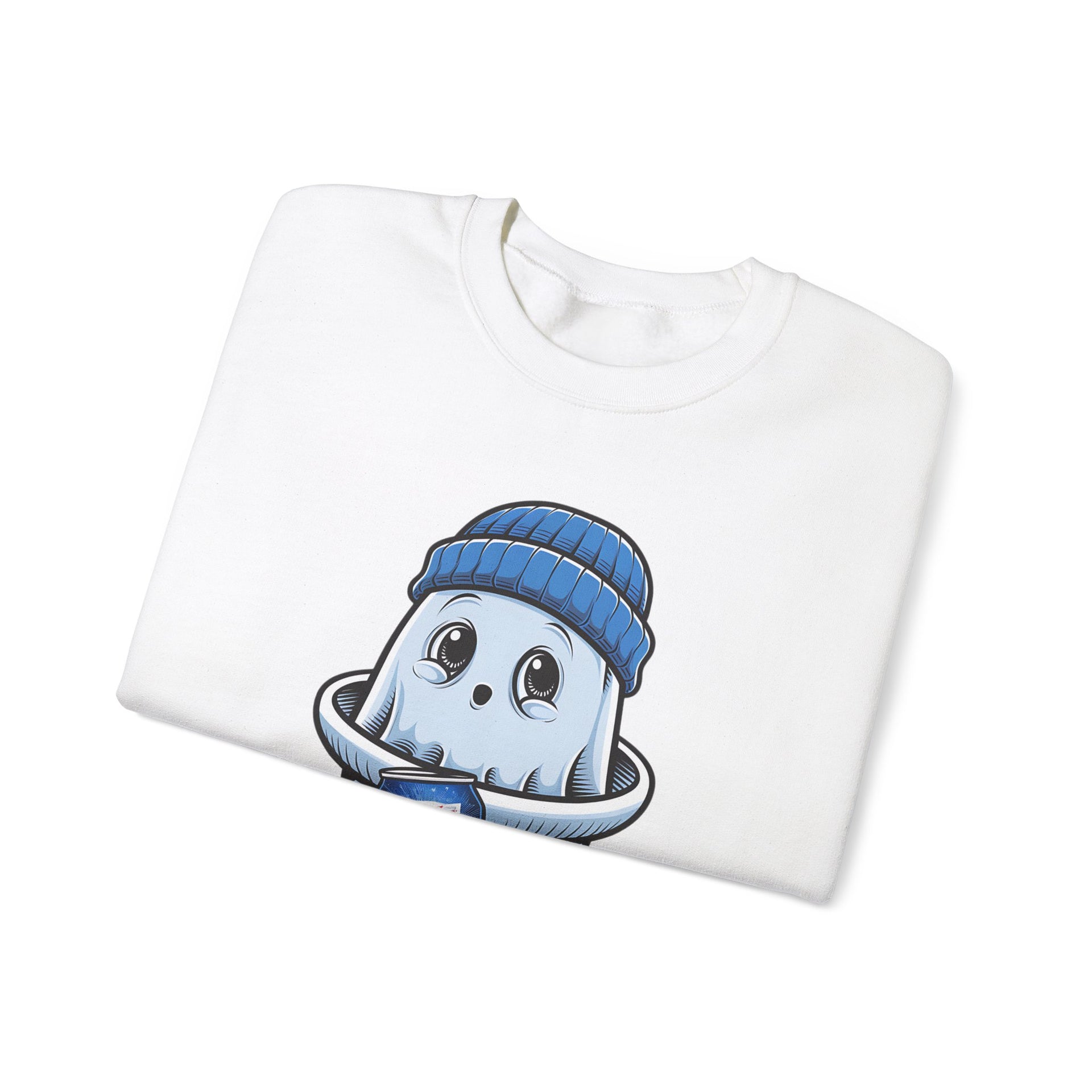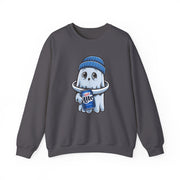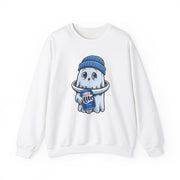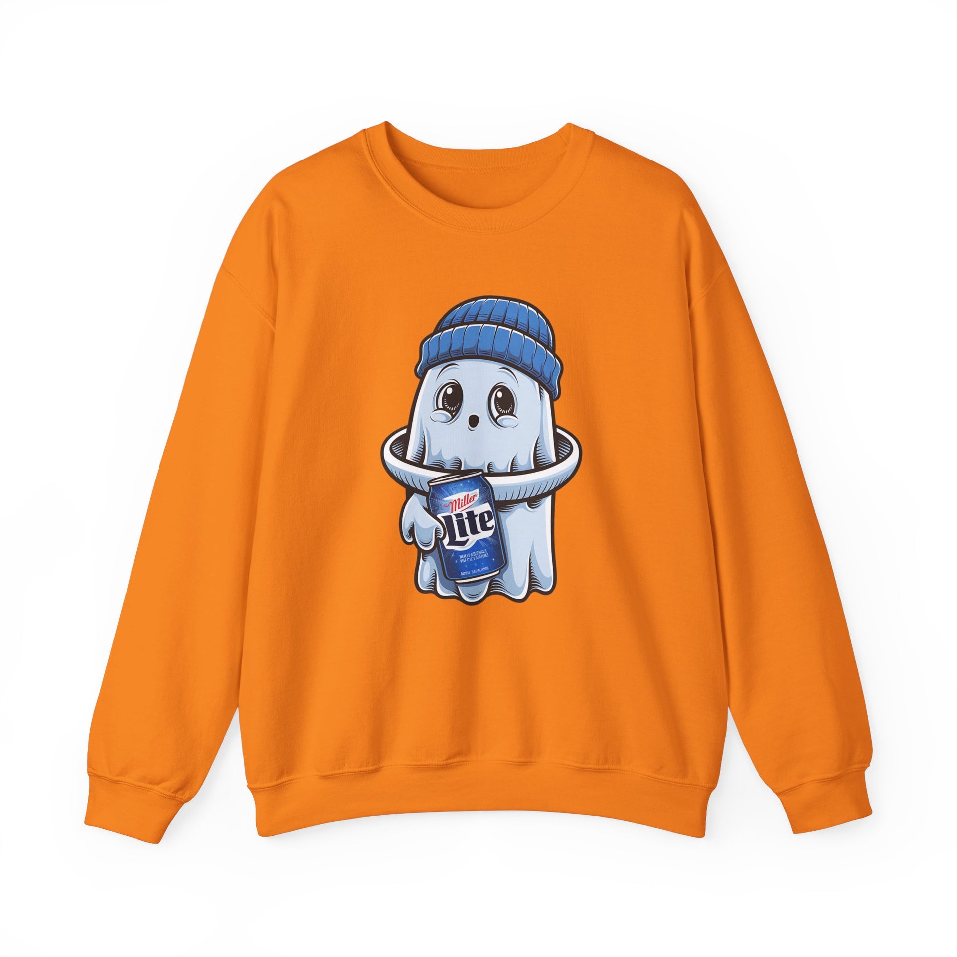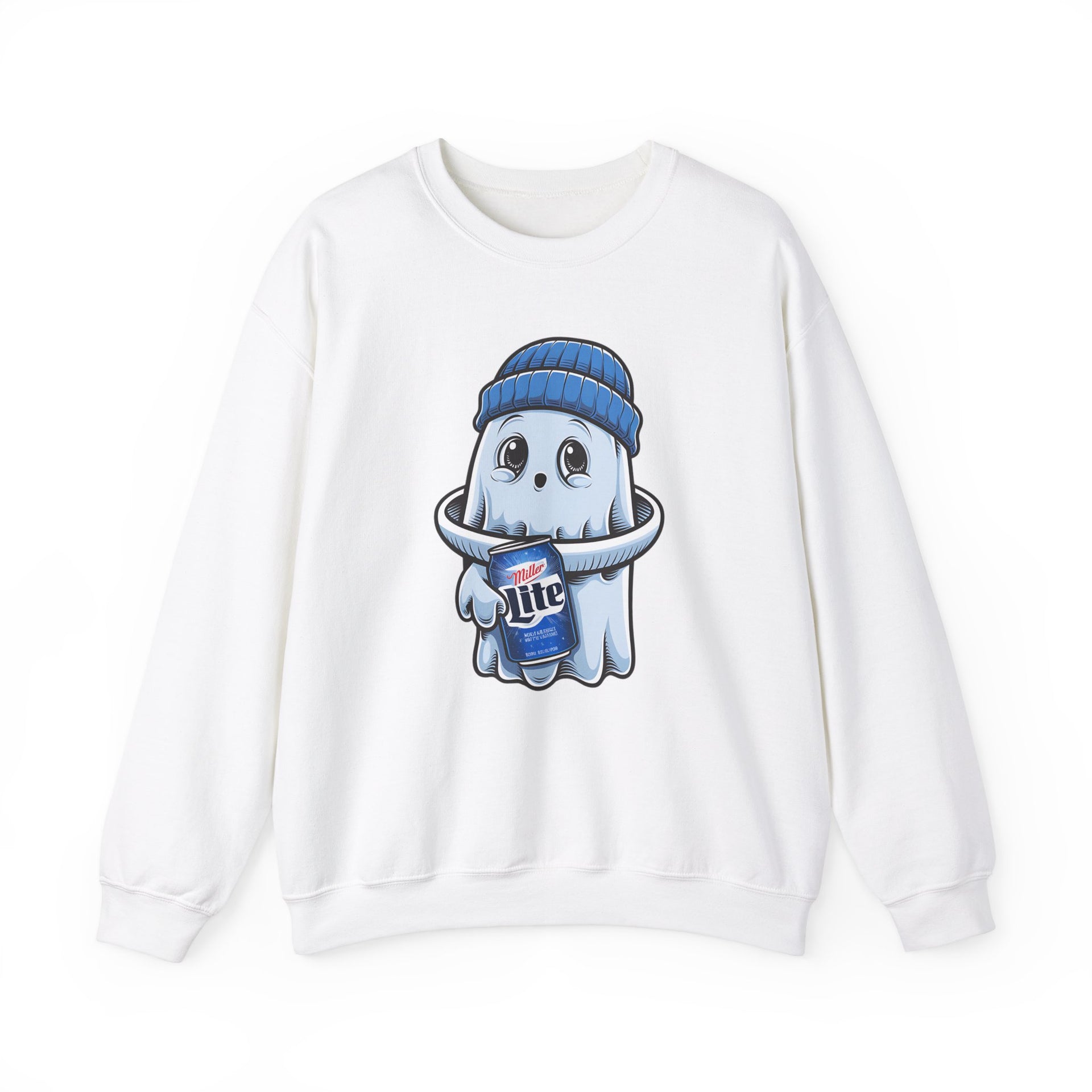 Cute Ghost in Beanie Holding Miller Lite Sweatshirt – Funny Halloween Beer Design