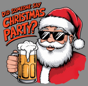 - Funny Christmas Design: Features the phrase "Did Someone Say Christmas Party?" with a festive Santa holding a beer, perfect for holiday gatherings and Christmas parties.