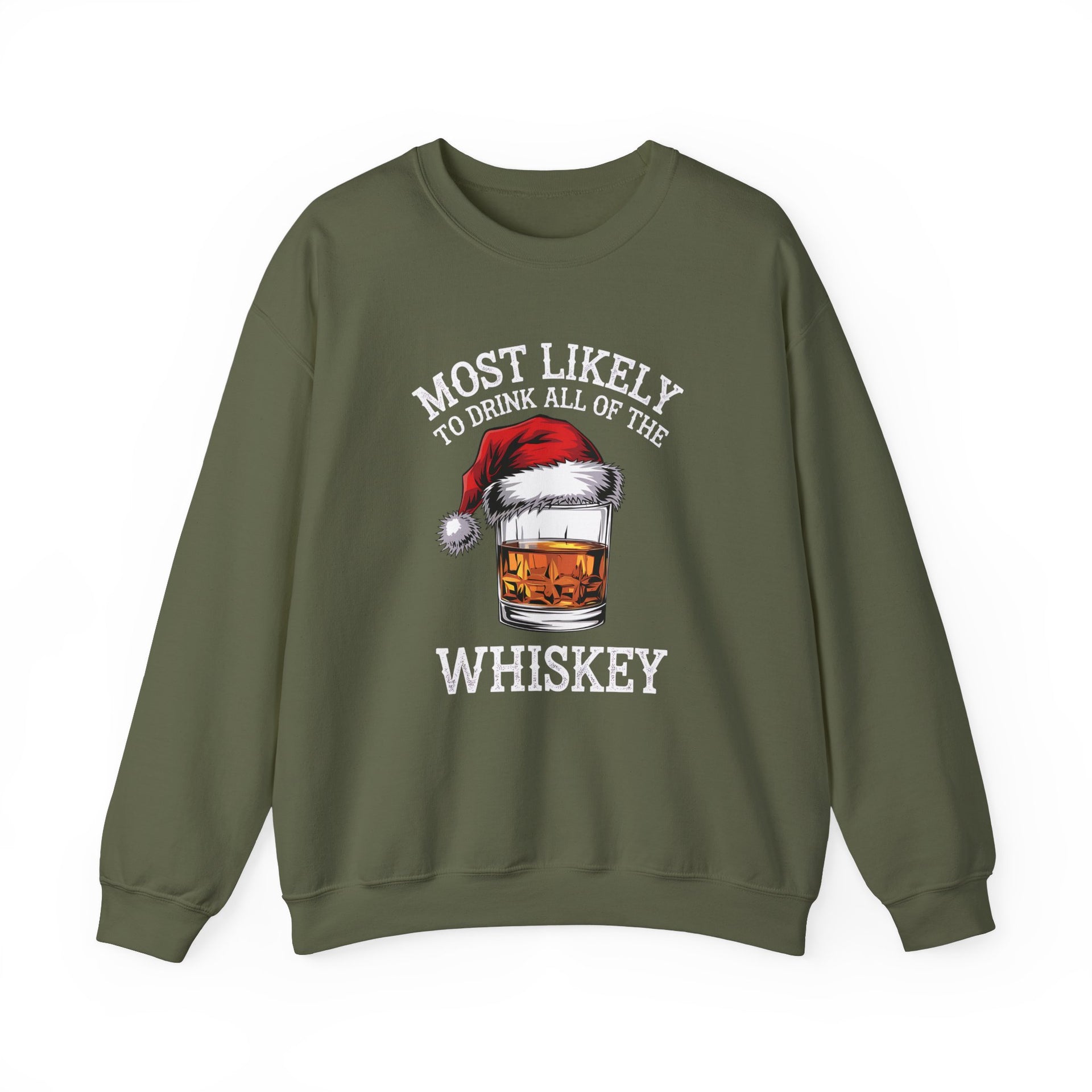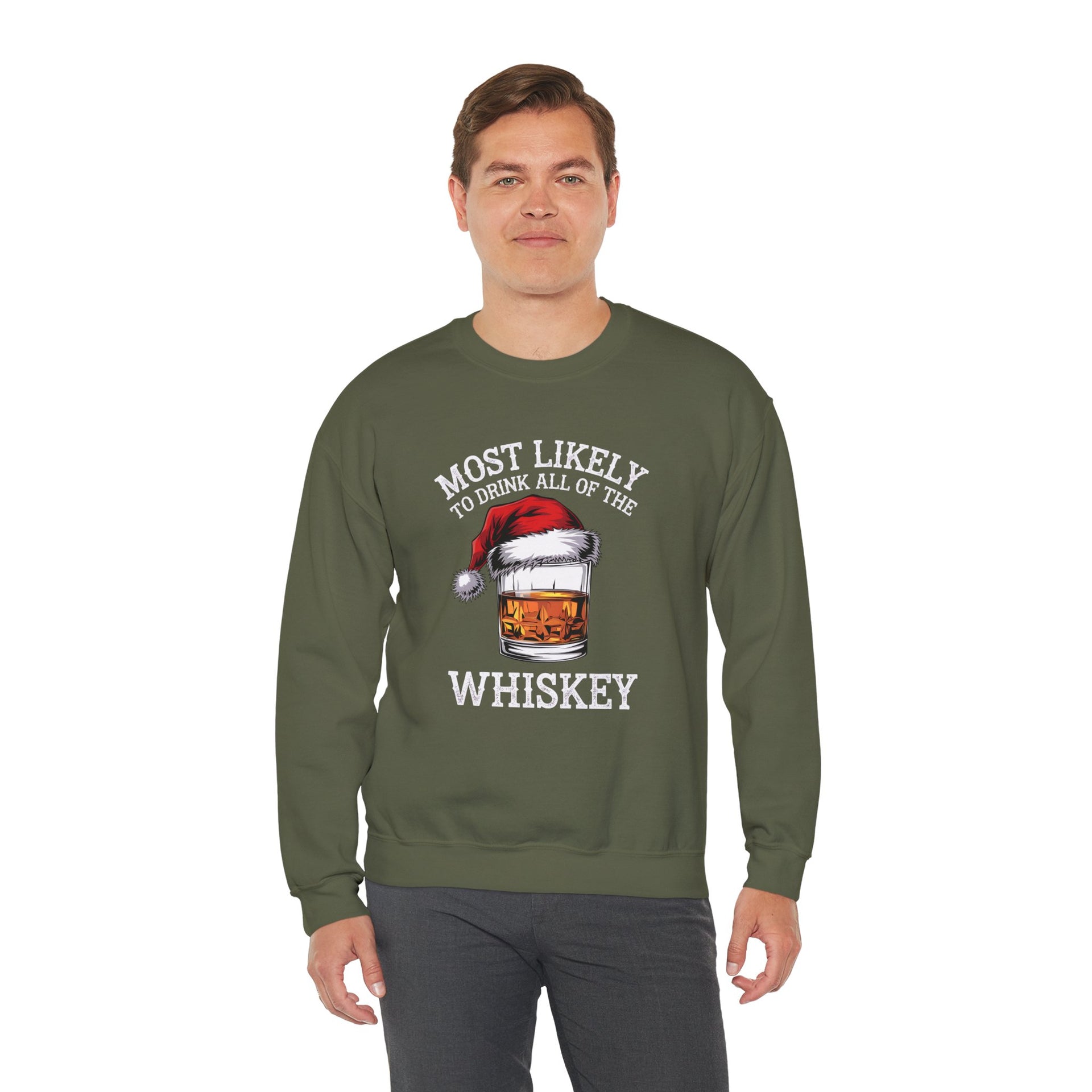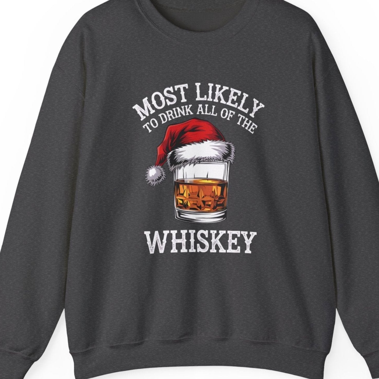 Most Likely to Drink All the Whiskey Christmas Sweatshirt – Funny Holiday Drinking Apparel