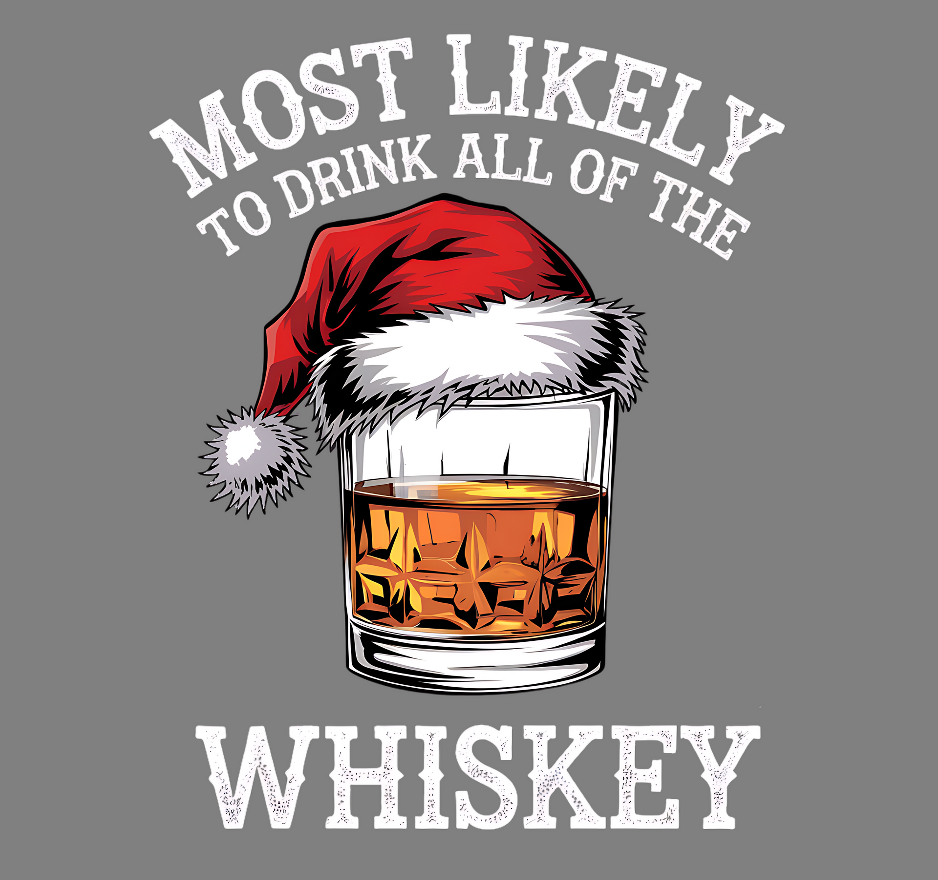 - Funny Holiday Slogan: Features the phrase "Most Likely to Drink All the Whiskey," perfect for adding a humorous twist to your holiday festivities.