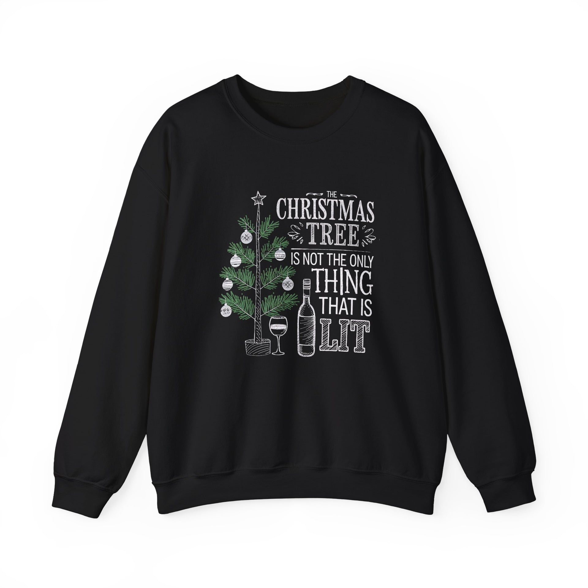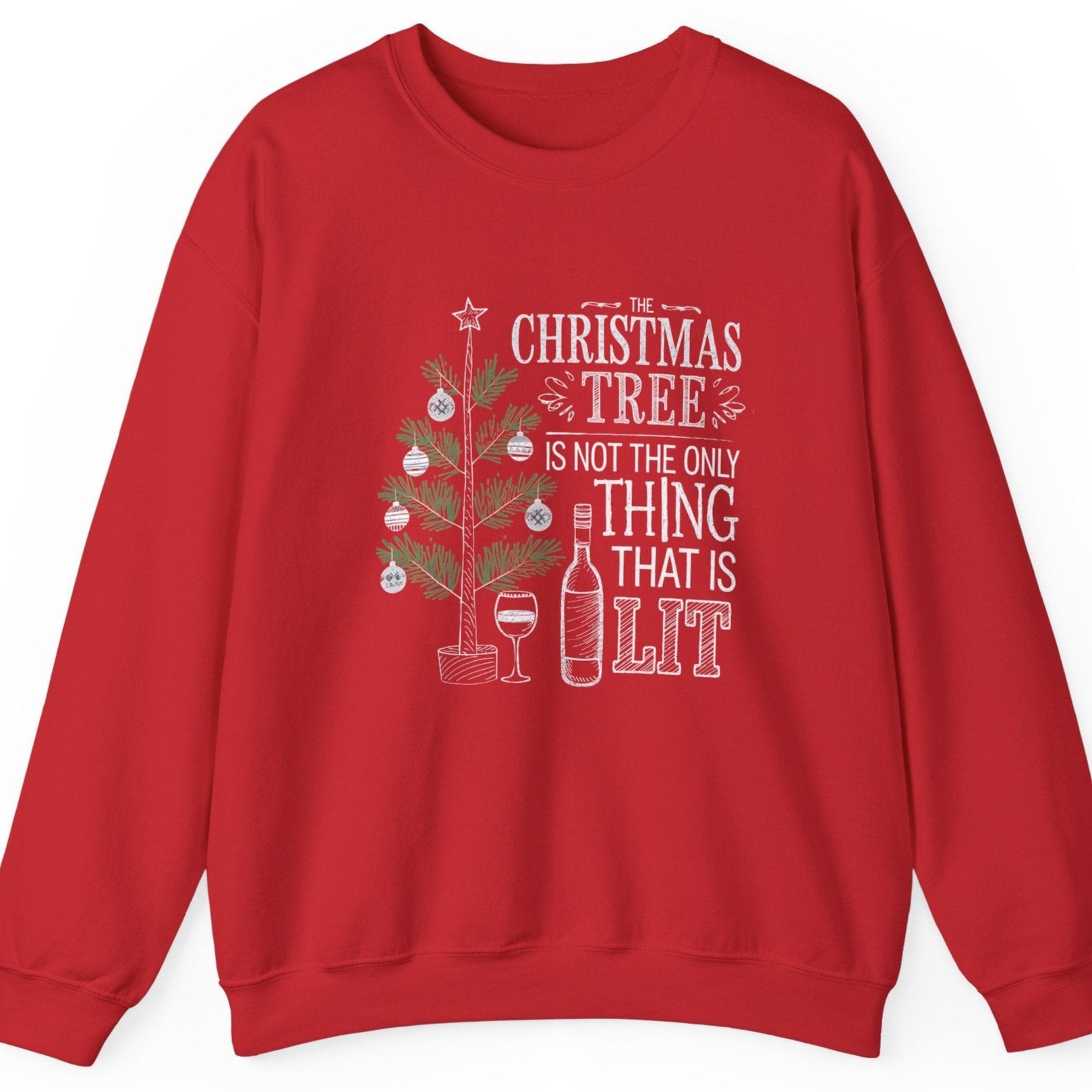 - Funny Holiday Slogan: Features the playful phrase "The Christmas Tree Isn’t the Only Thing That’s Lit," perfect for bringing a humorous twist to your holiday wardrobe.
