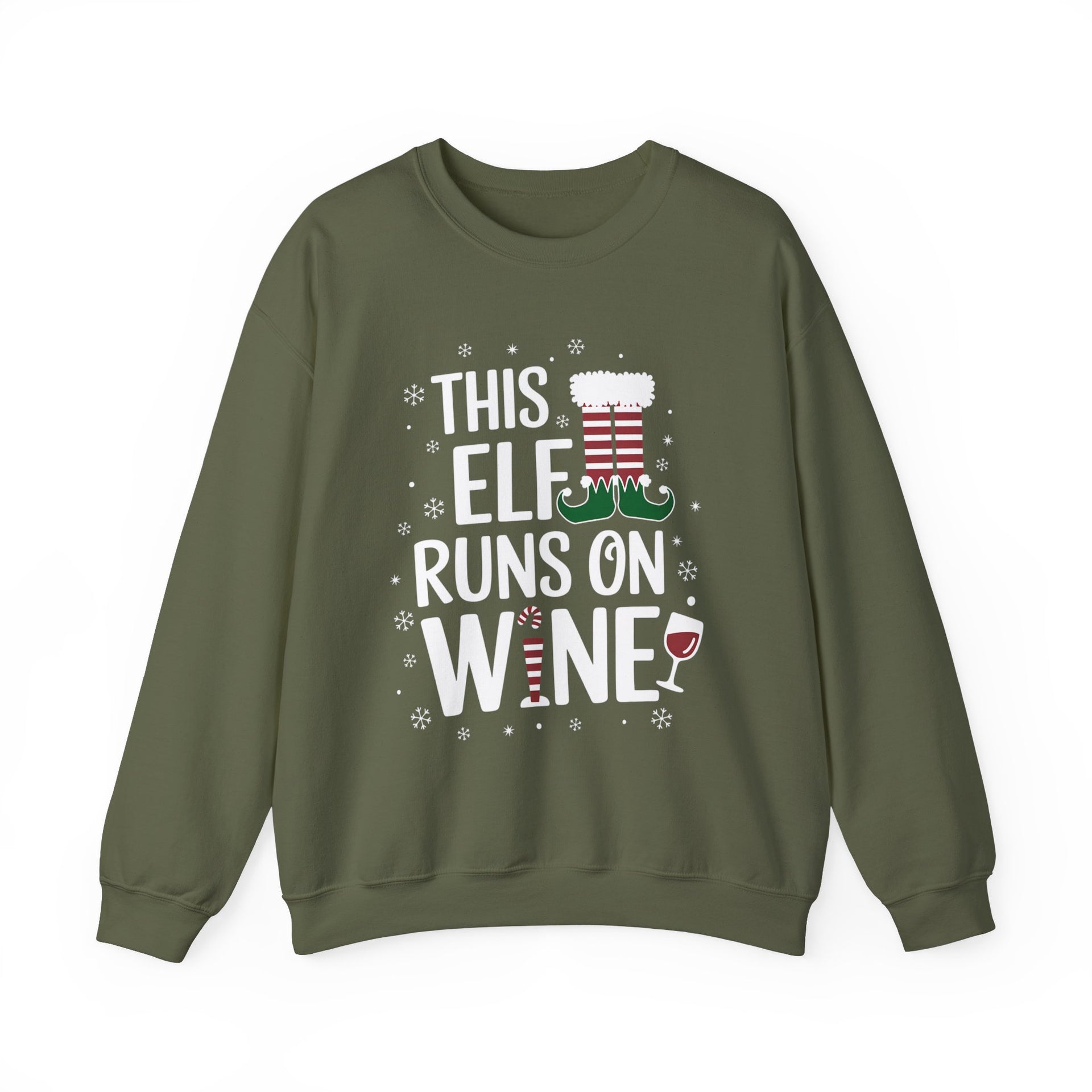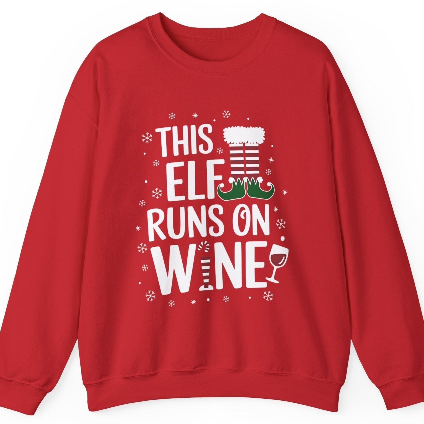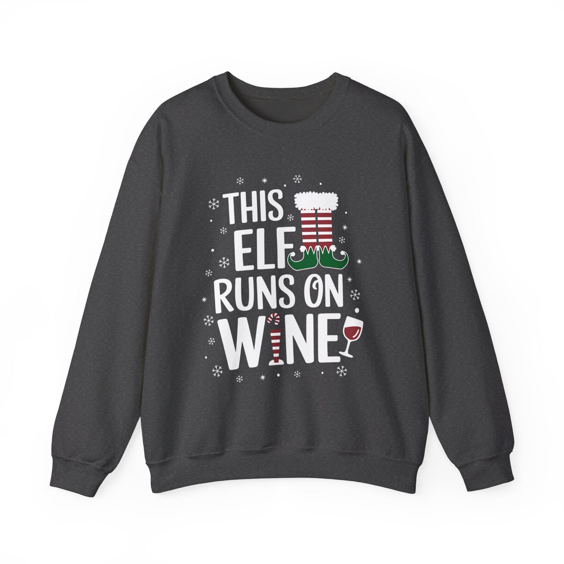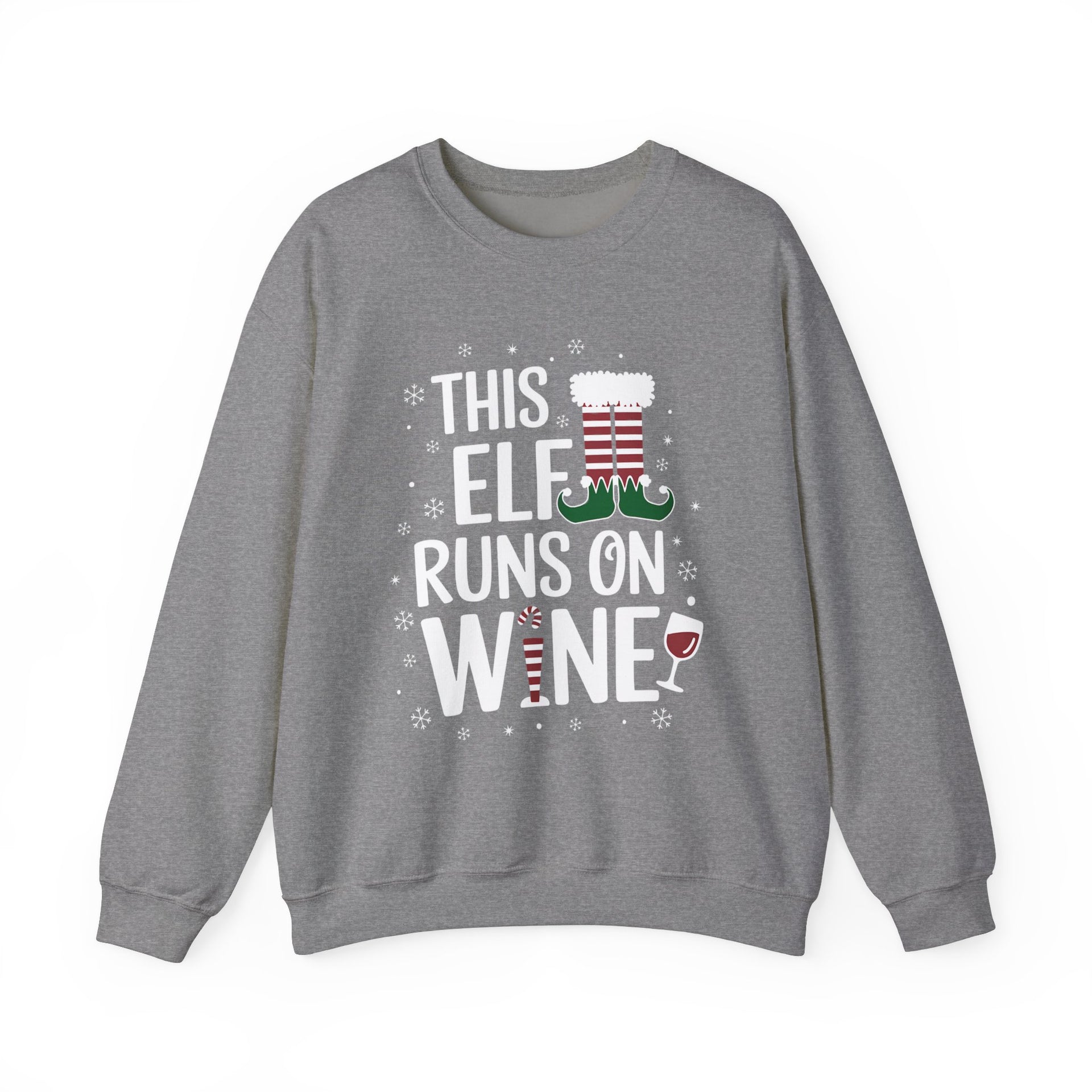 This Elf Runs on Wine Christmas Sweatshirt – Funny Holiday Drinking Apparel