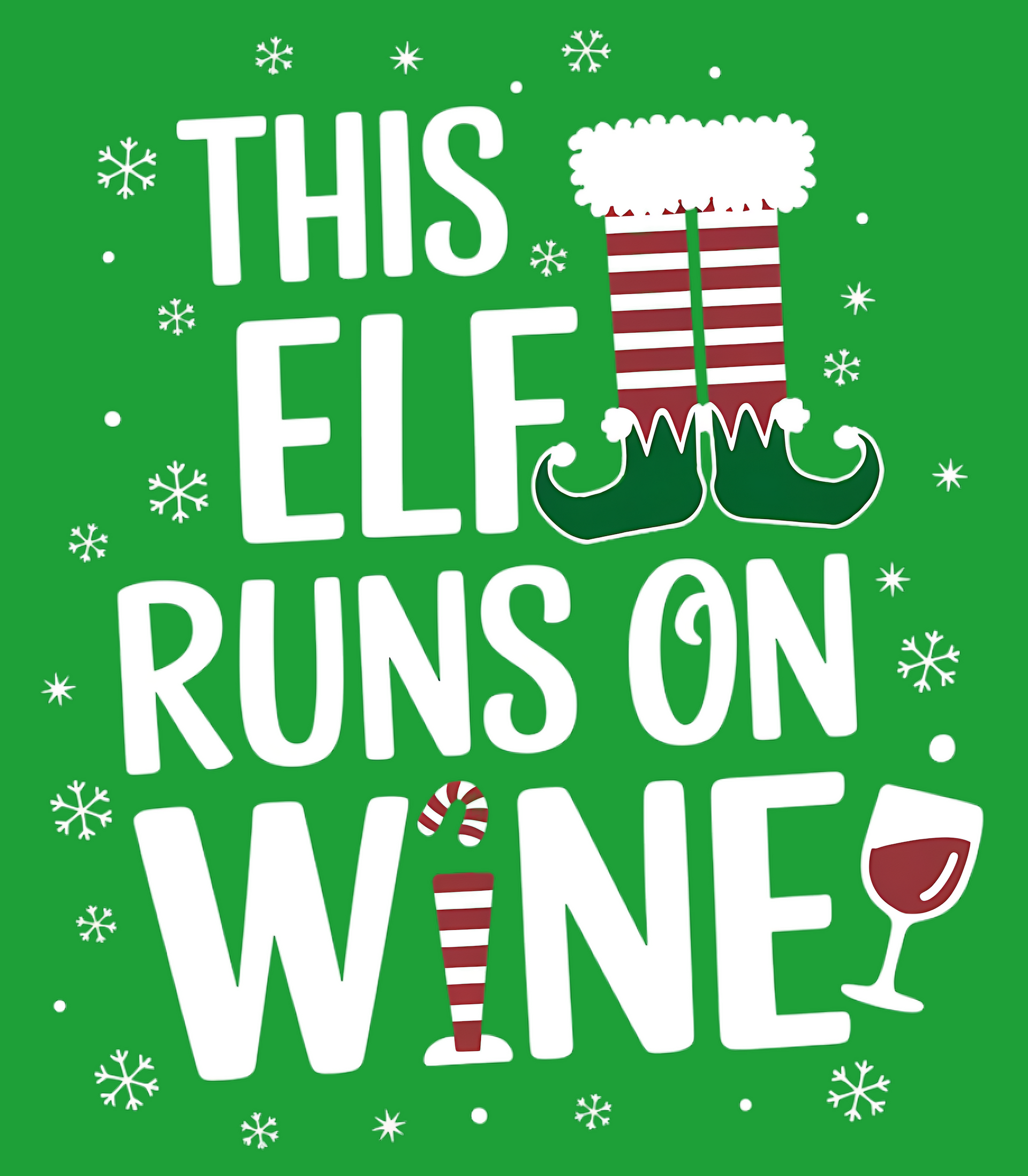 • Funny Holiday Design: Features the phrase "This Elf Runs on Wine," adding a lighthearted touch to your holiday celebrations.
