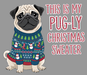 - Cute & Festive Design: Features the playful phrase "This is My Pug-ly Christmas Sweater" with an adorable pug in an ugly Christmas sweater, perfect for dog lovers and holiday enthusiasts.