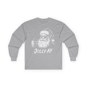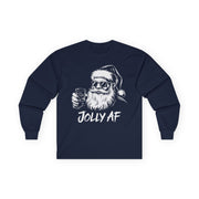 Make your festive mood loud and clear with this bold “Jolly AF” Christmas long sleeve tee. Whether you're heading to a holiday party, running errands, or just trying to survive seasonal chaos, this design delivers the perfect mix of humor and holiday flair.